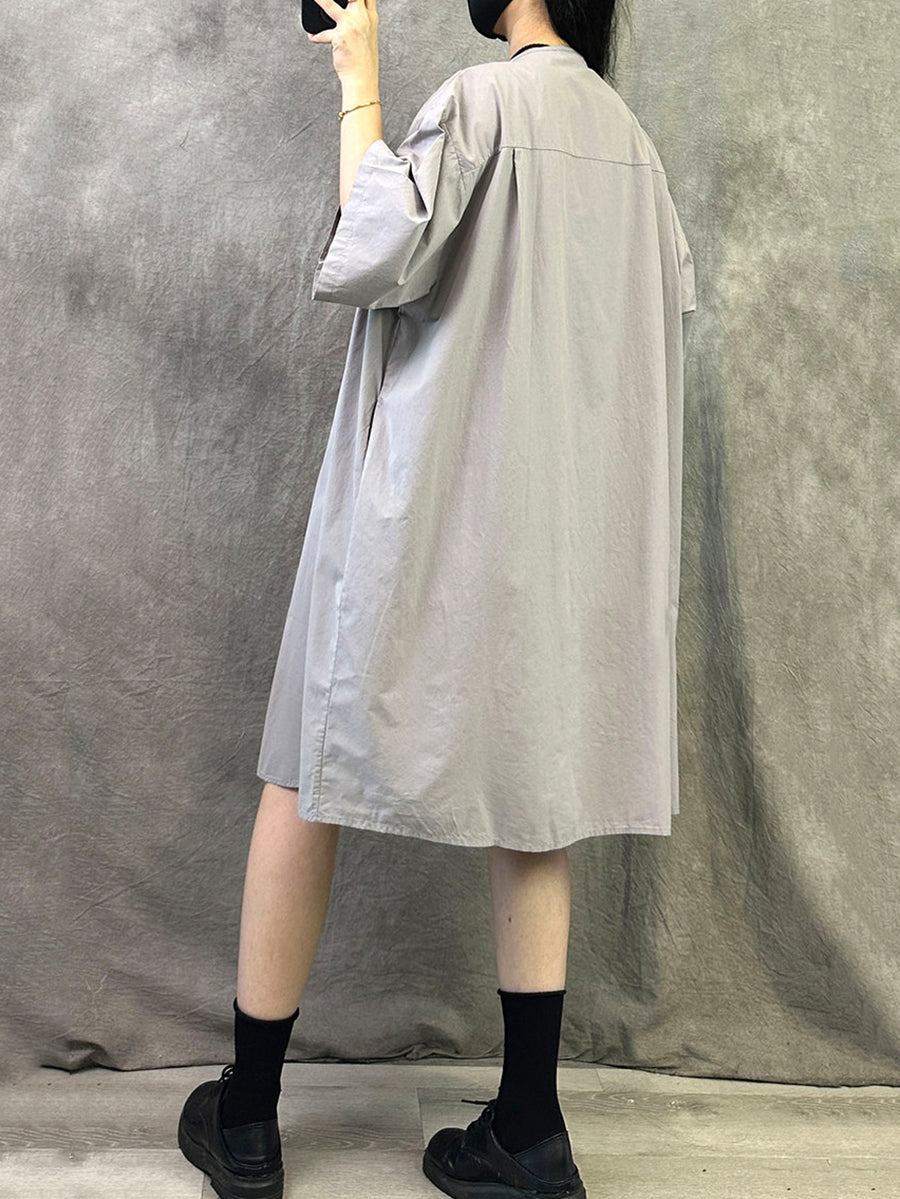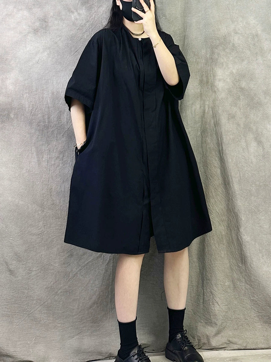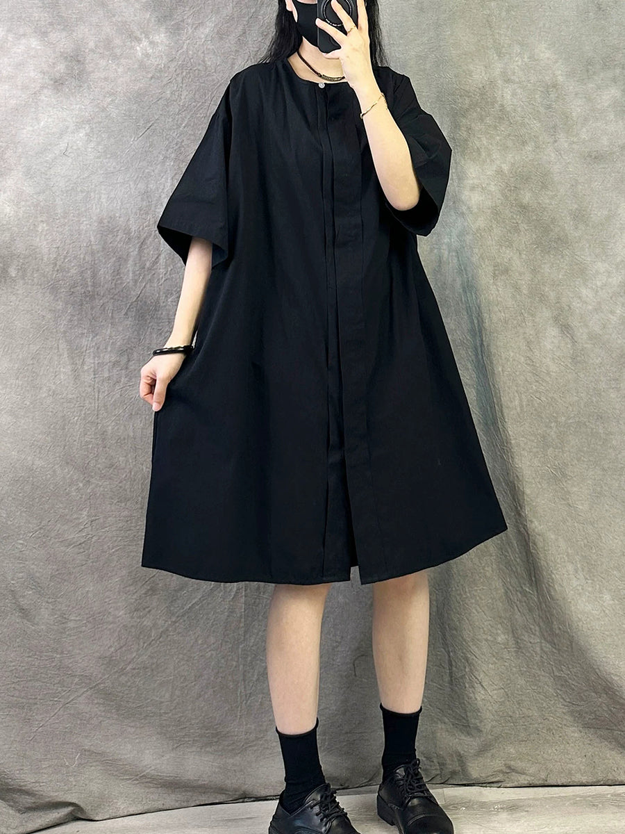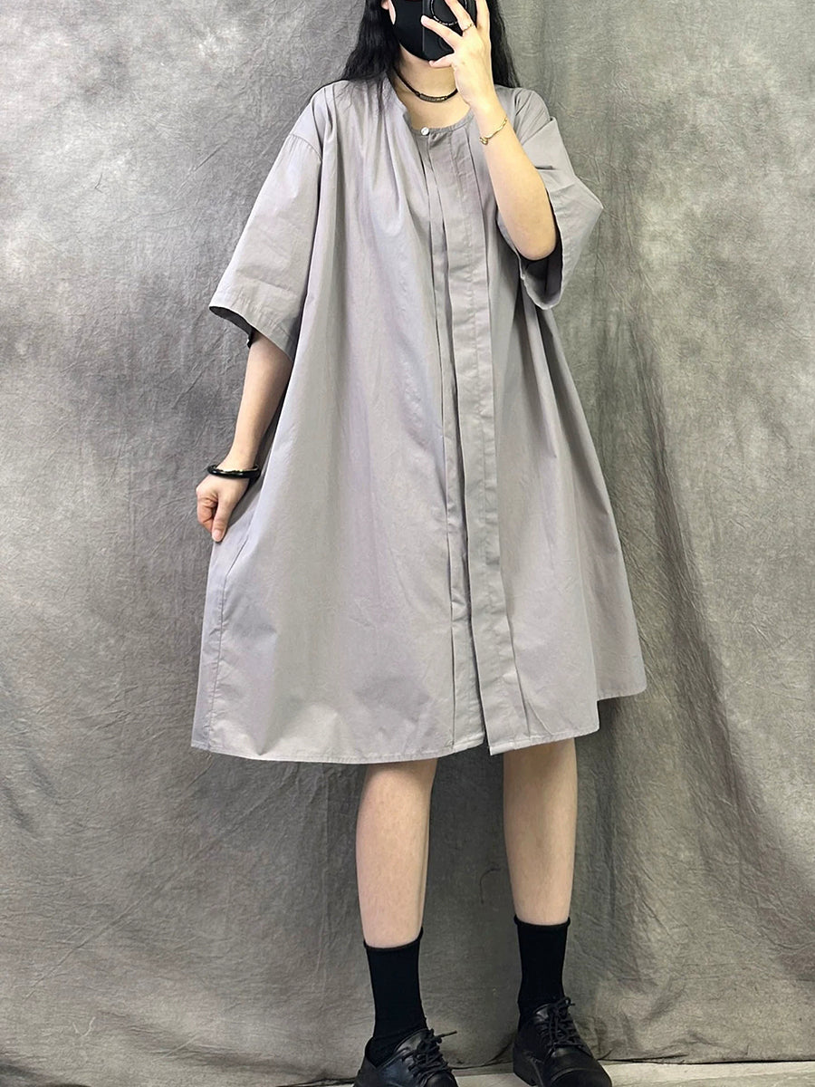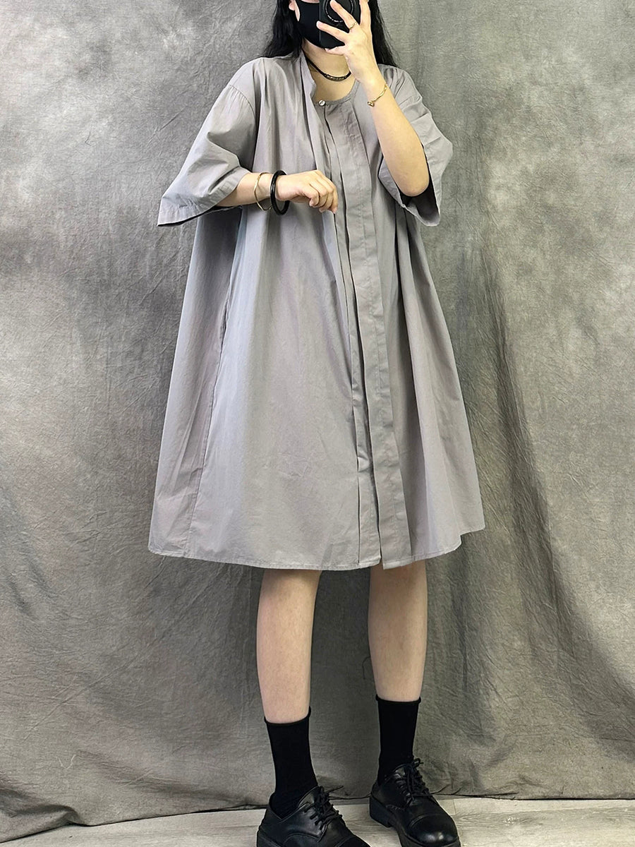 Vestido casual de verano para mujer, color liso, cuello redondo.