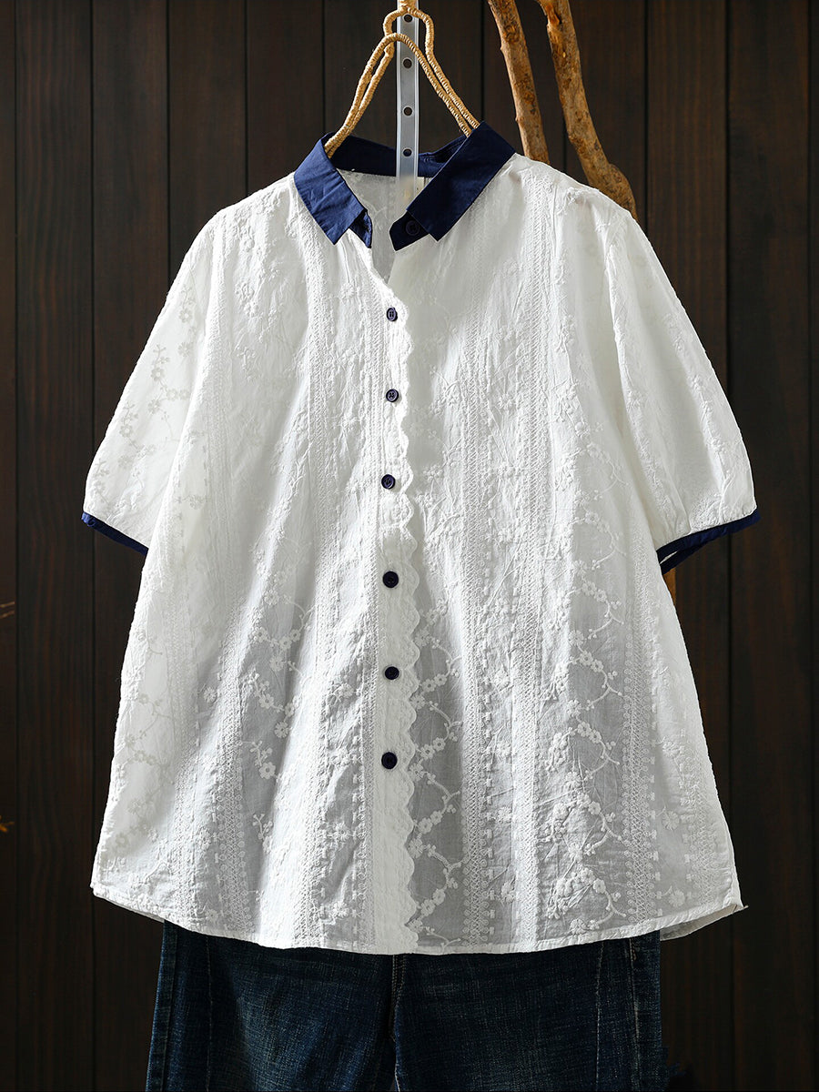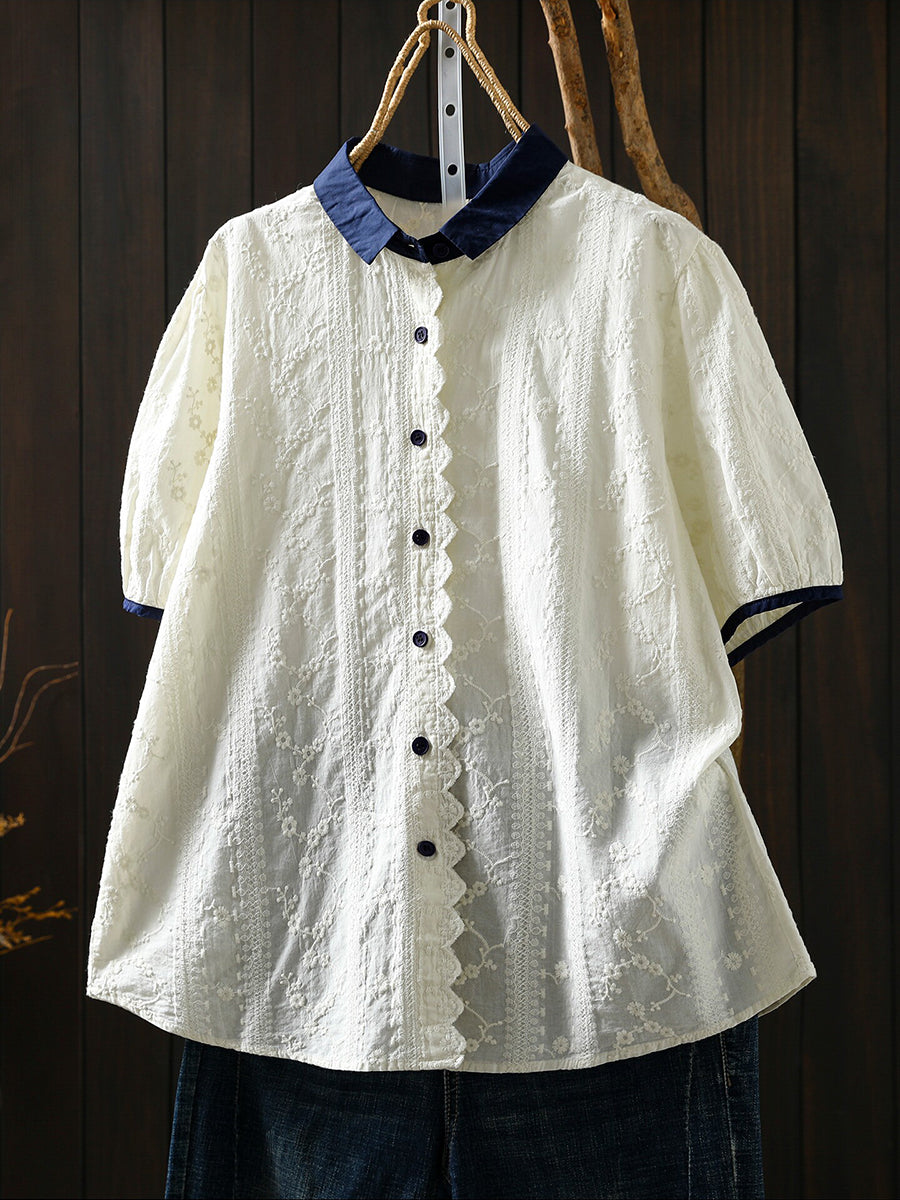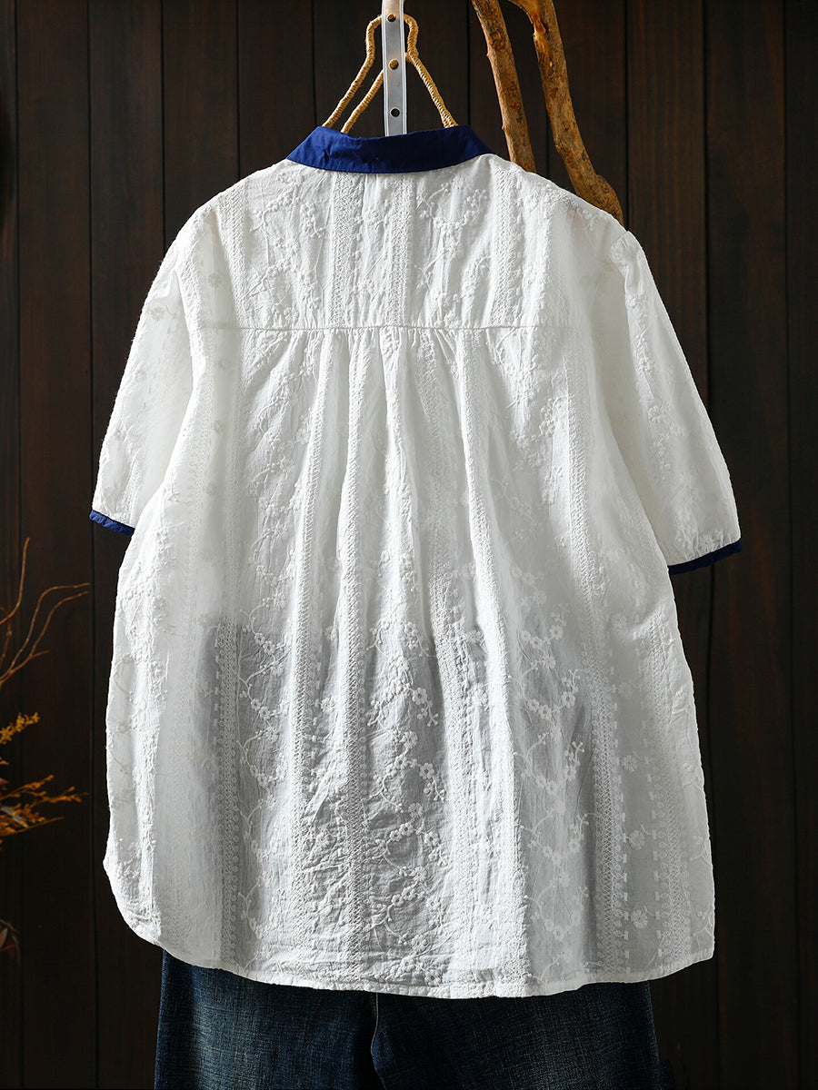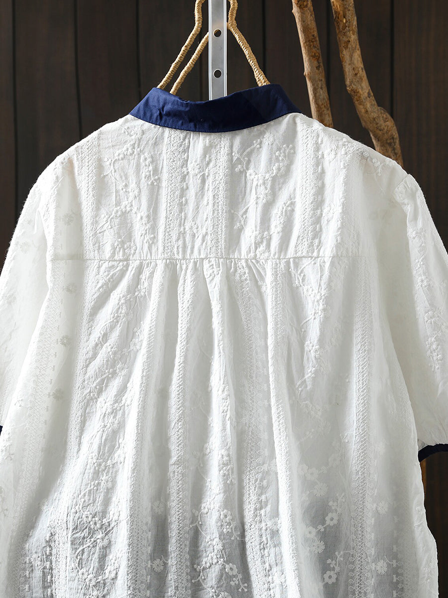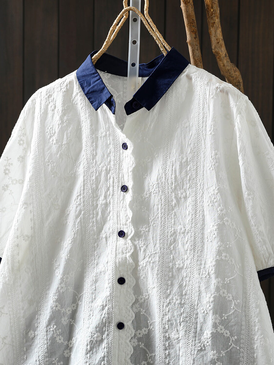 Camisa de verano para mujer con bordado artístico 100% algodón