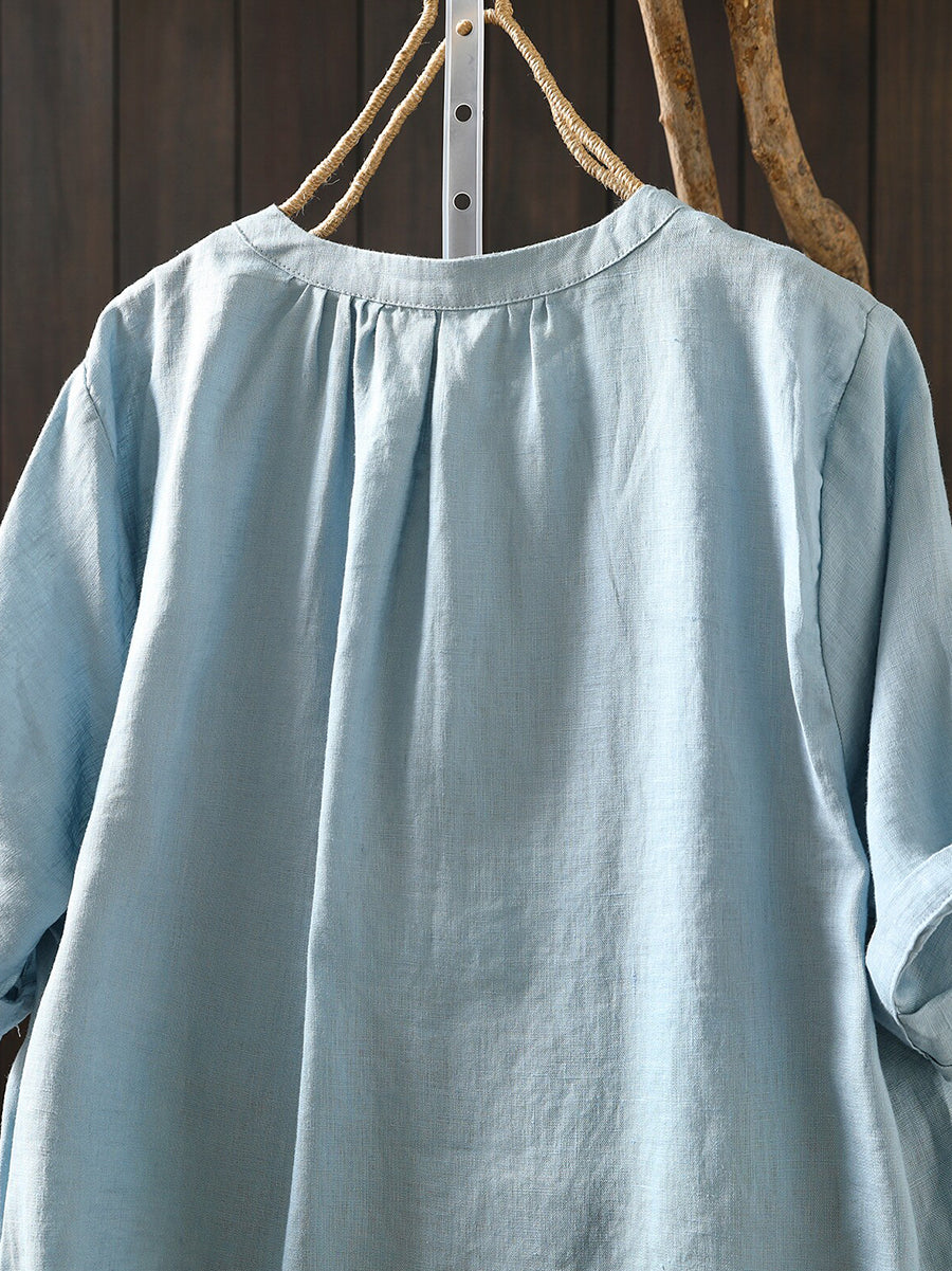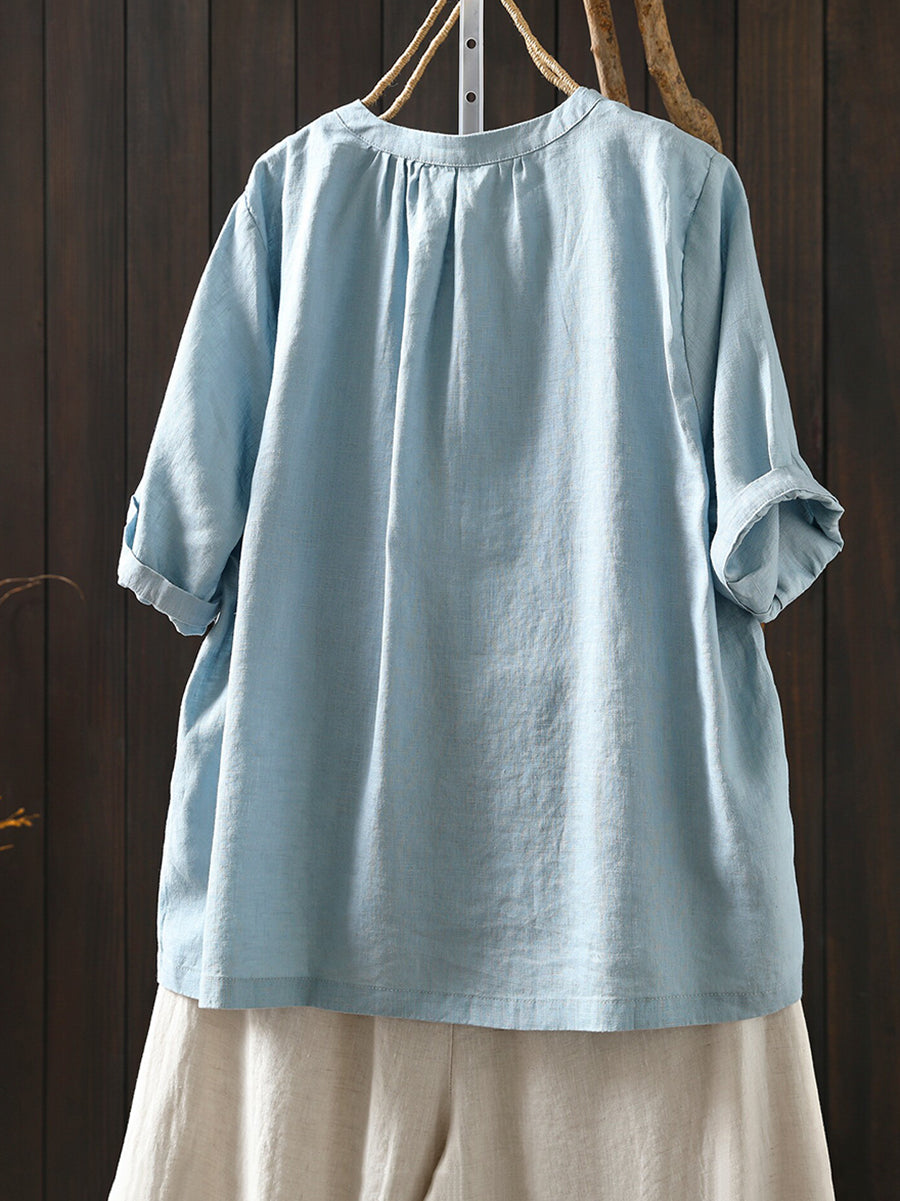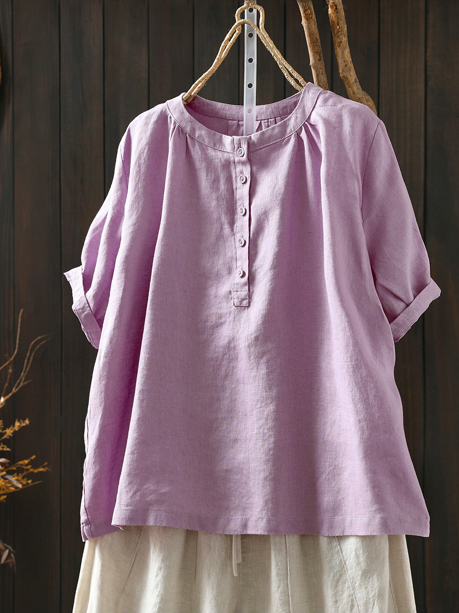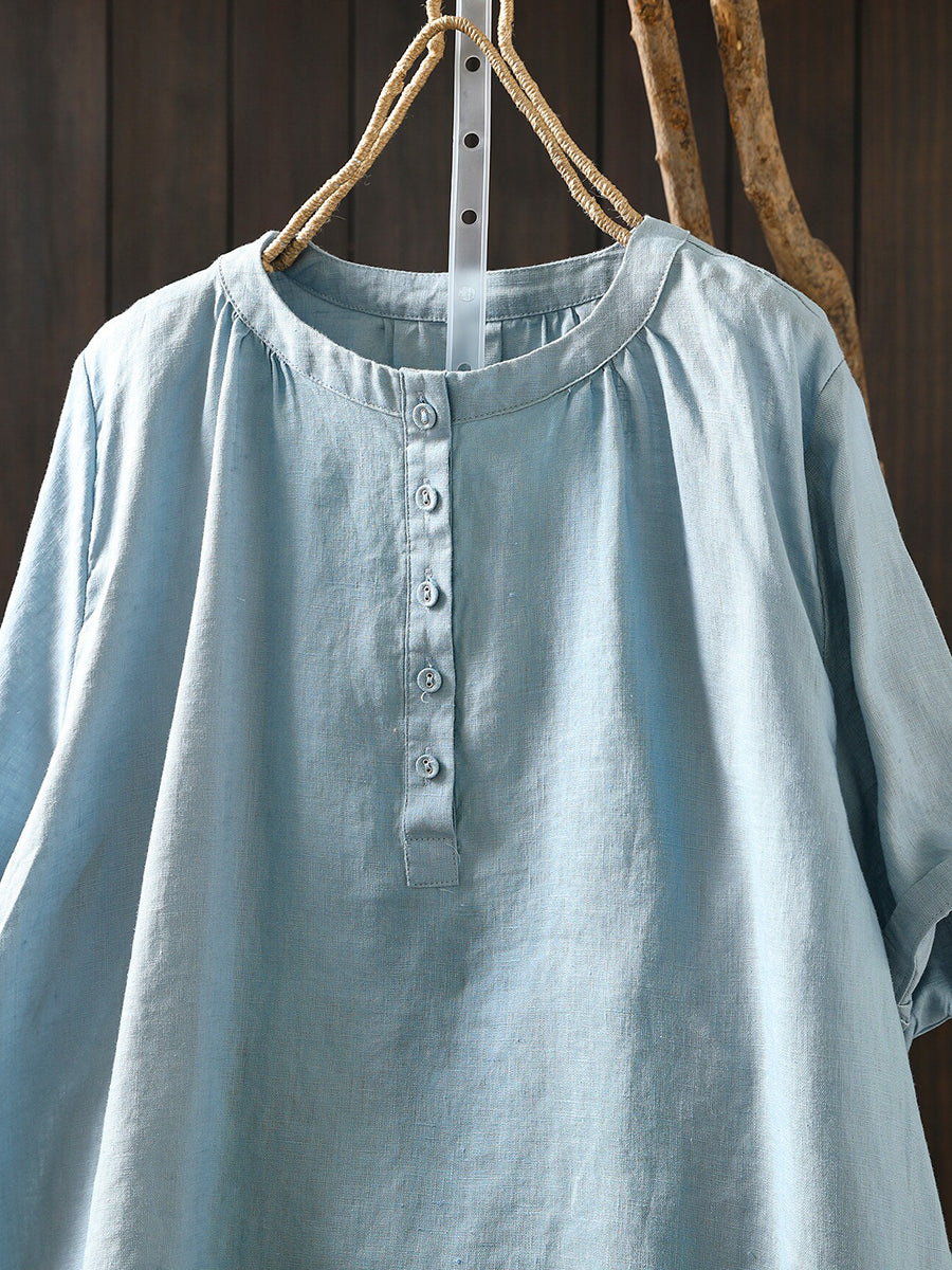 Camiseta de mujer de verano con cuello redondo y estilo artístico, 100% lino.
