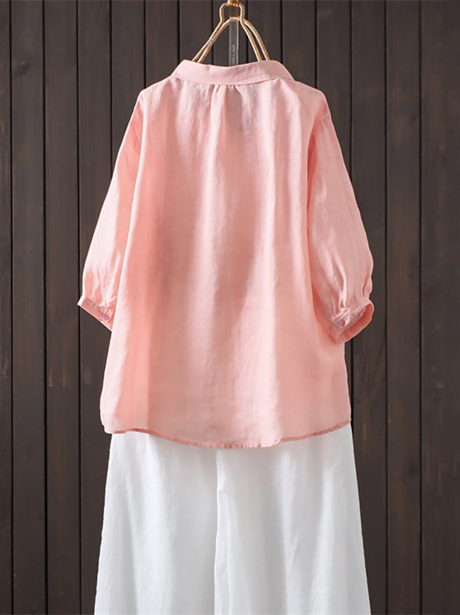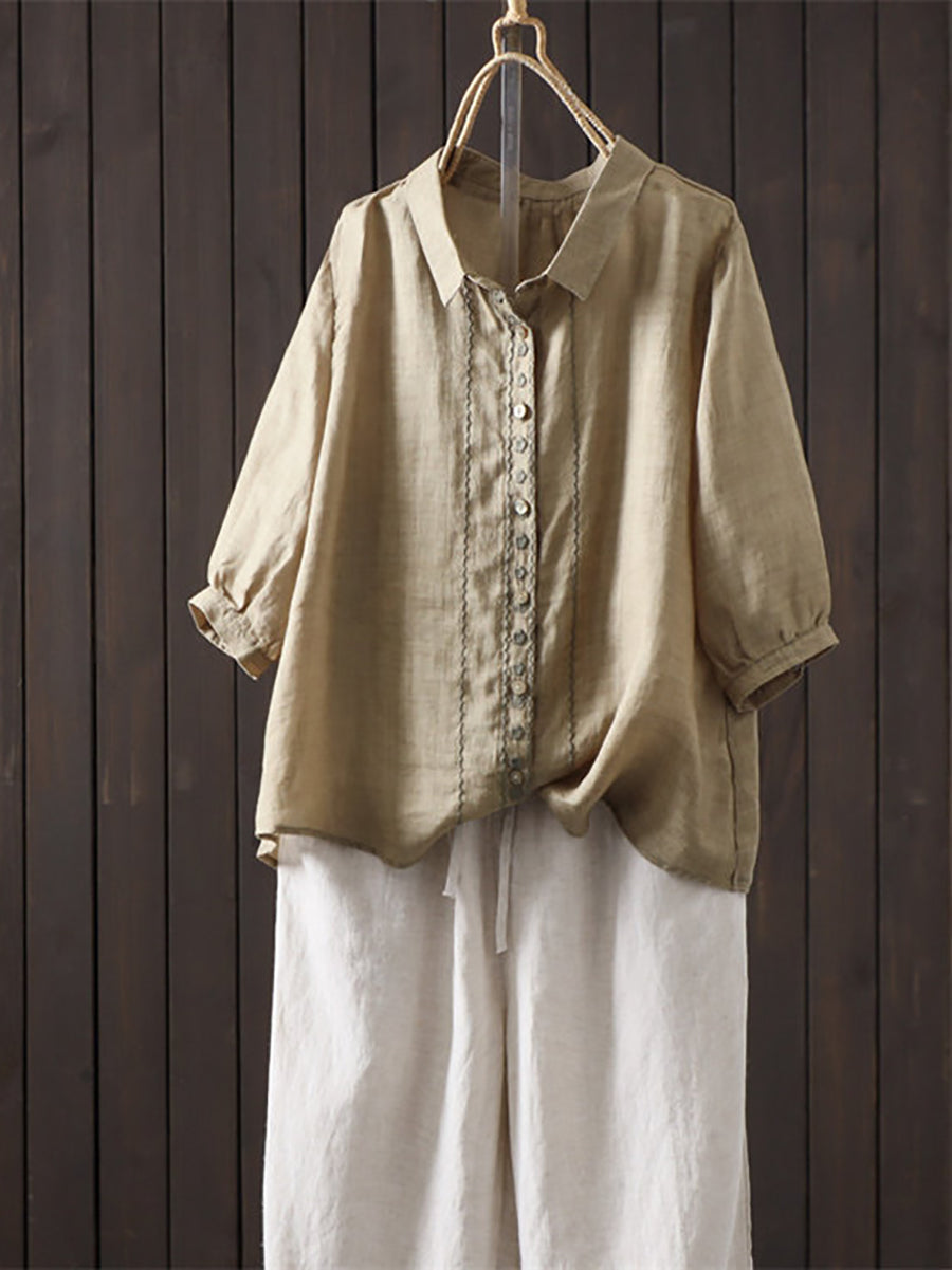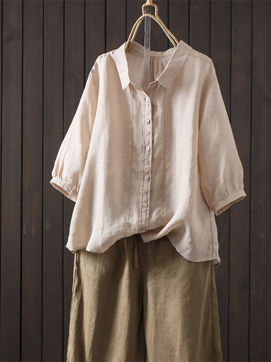 Camisa de verano para mujer, estilo artístico, color liso, 100% ramio.