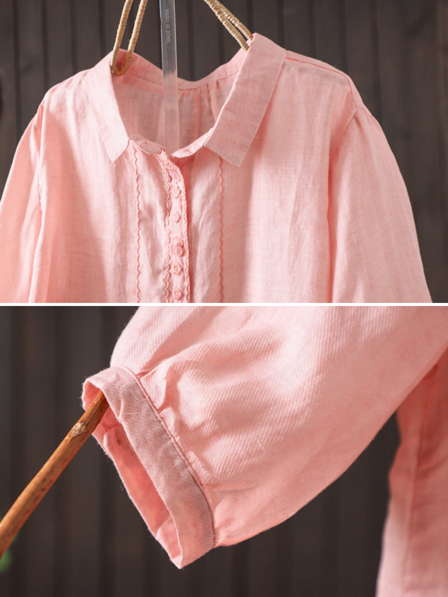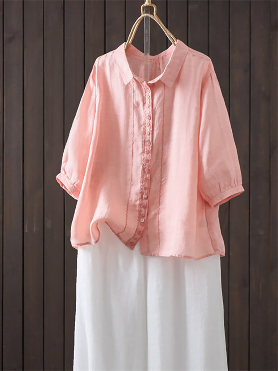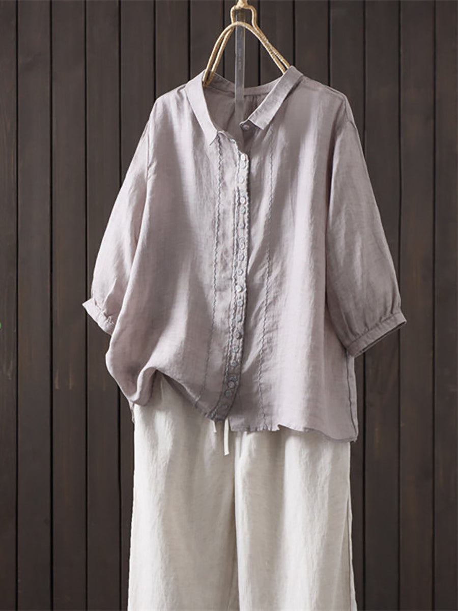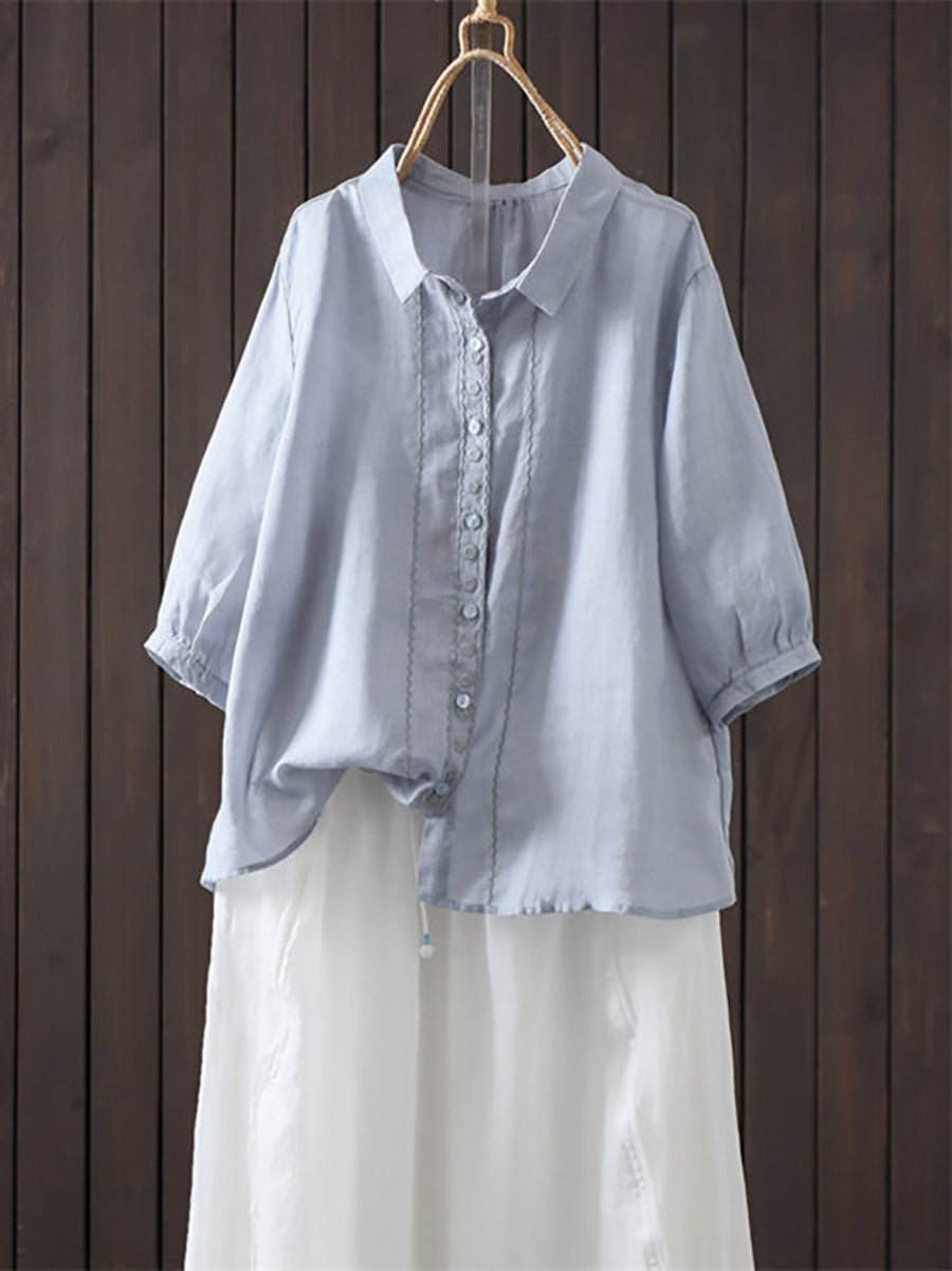 Camisa de verano para mujer, estilo artístico, color liso, 100% ramio.