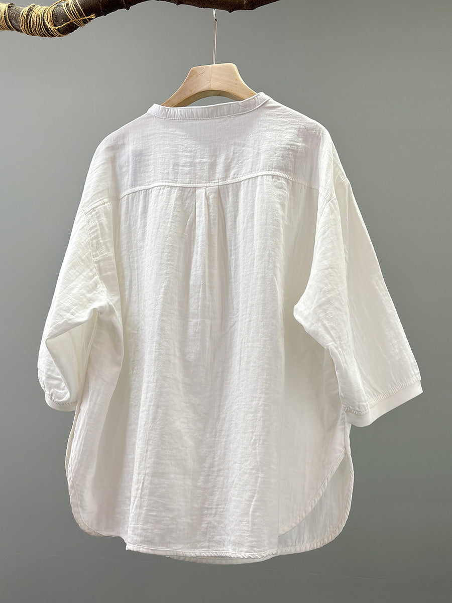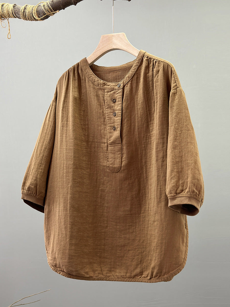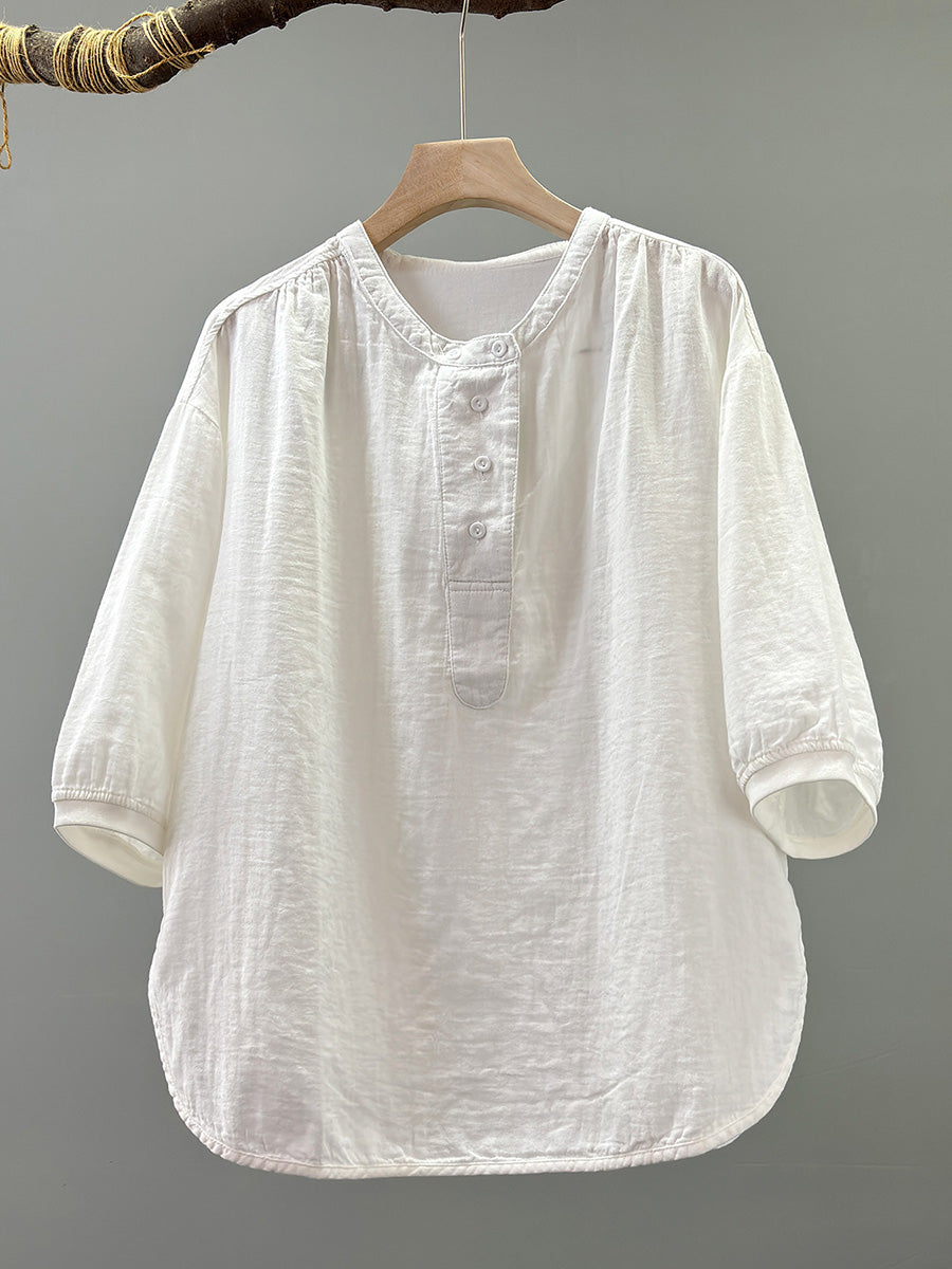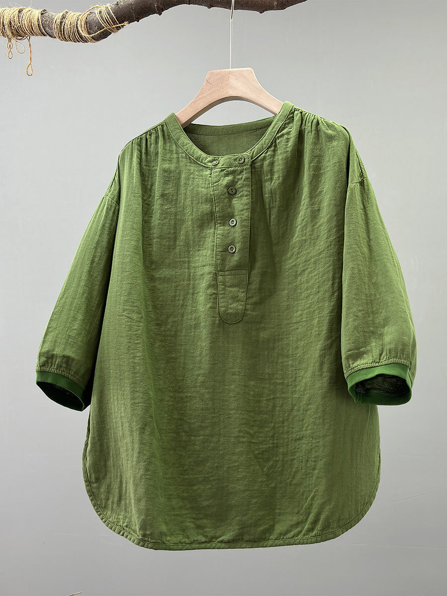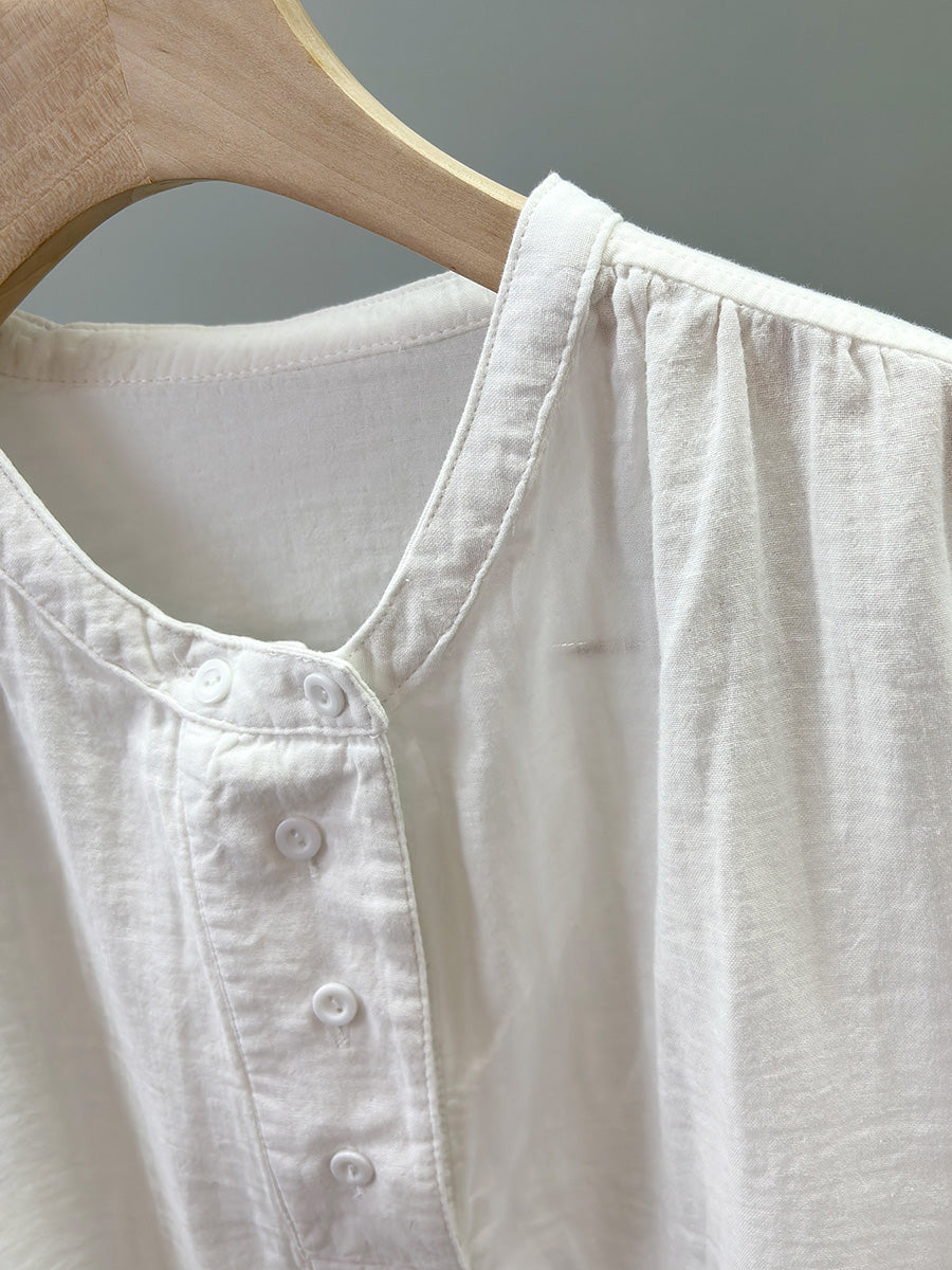 Blusa de verano para mujer, estilo artístico, color liso, cuello redondo, 100% algodón.