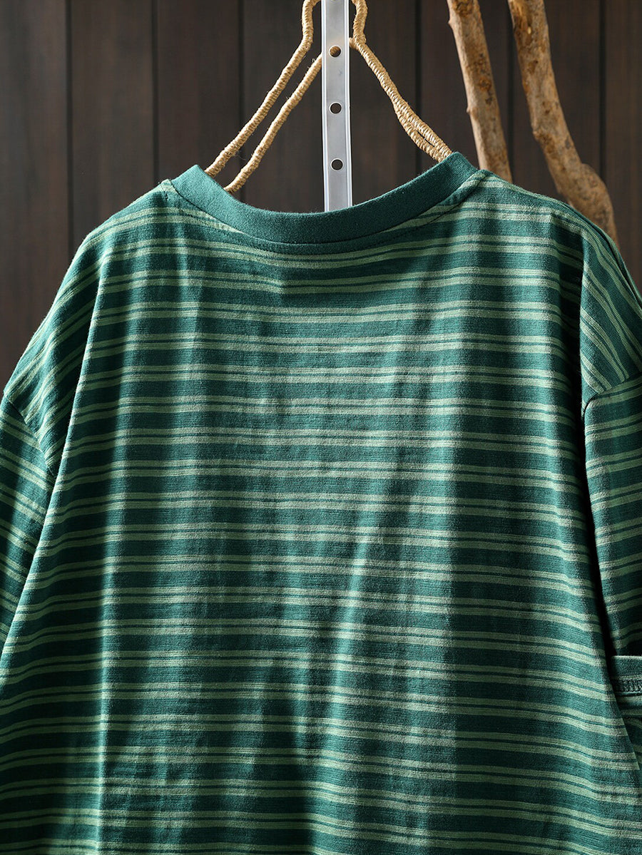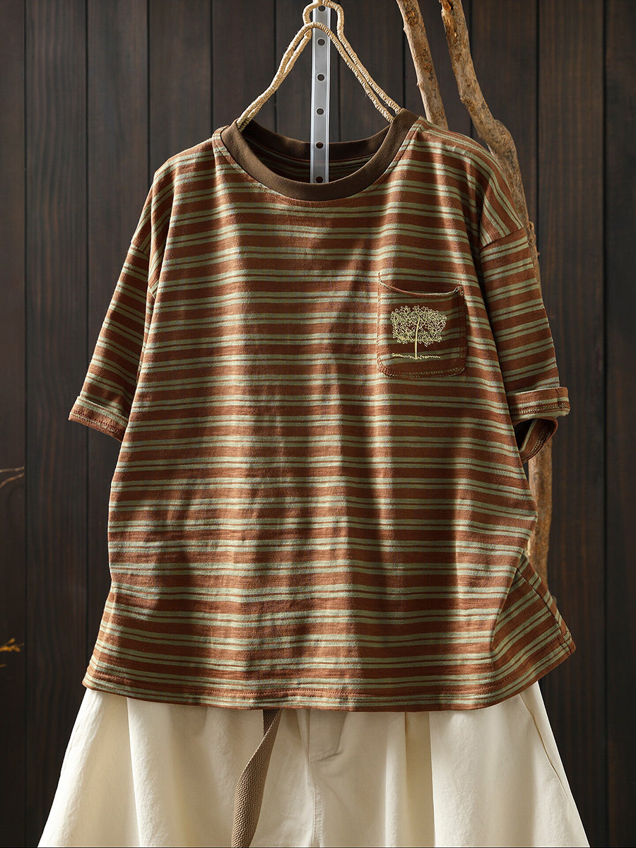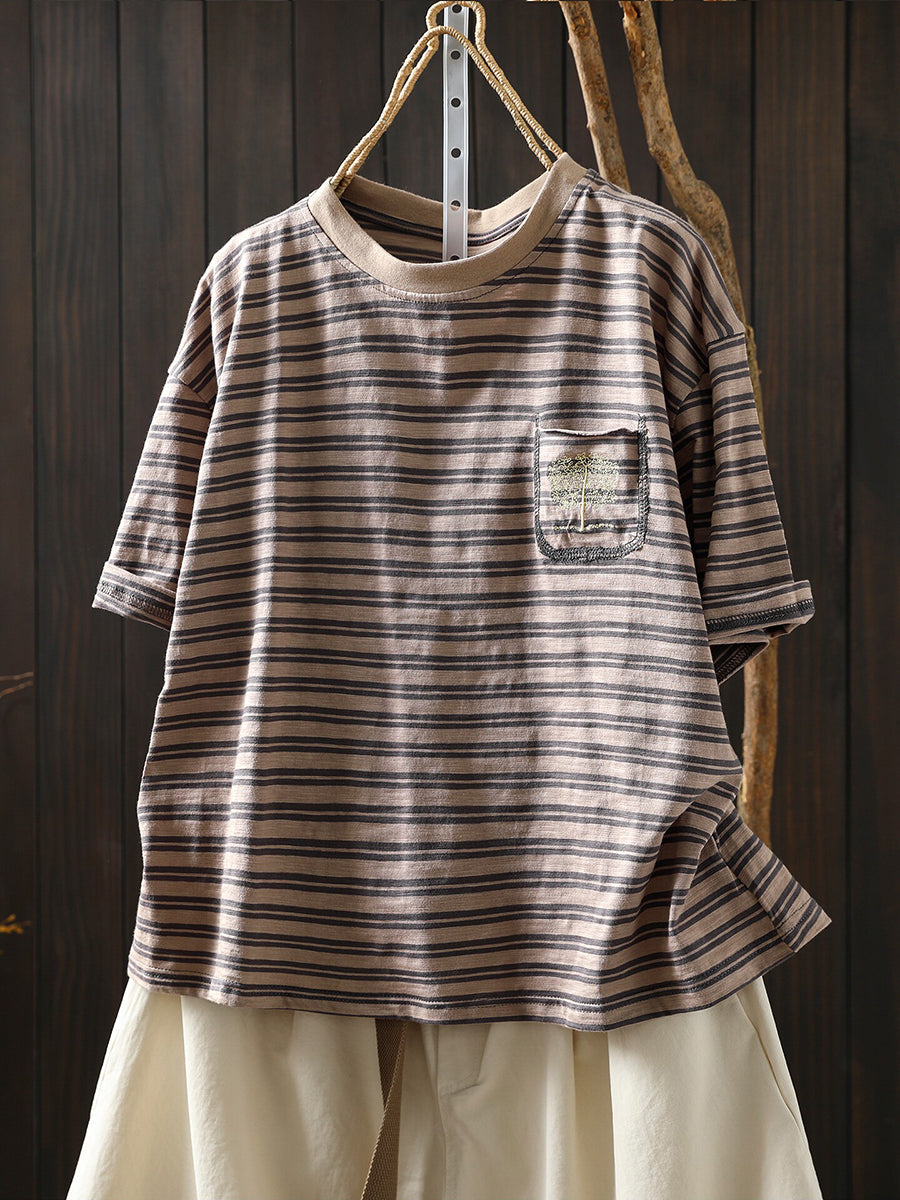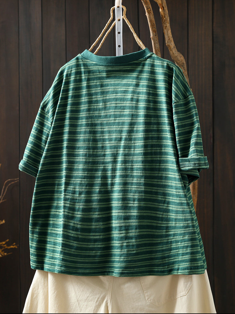 Camiseta de mujer informal de verano a rayas 100% algodón