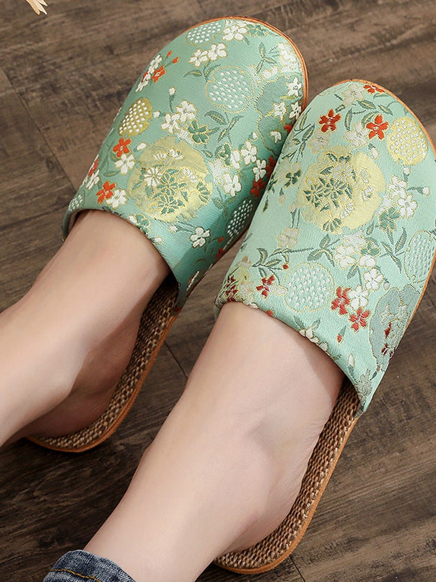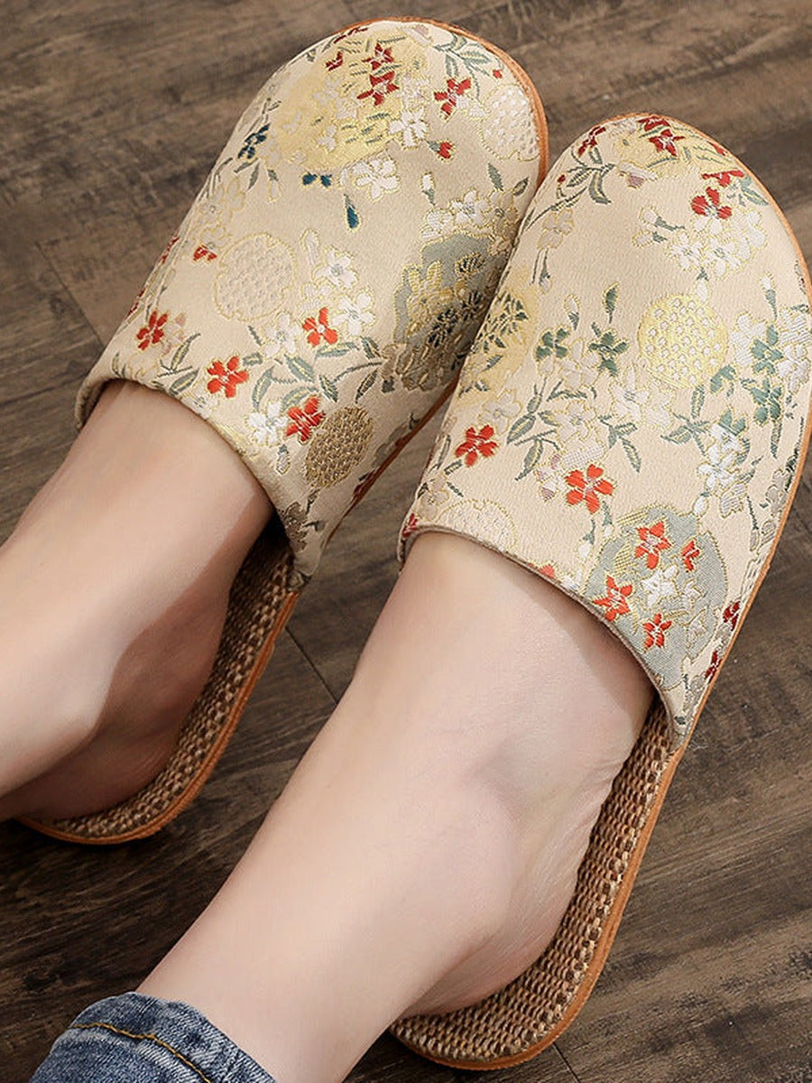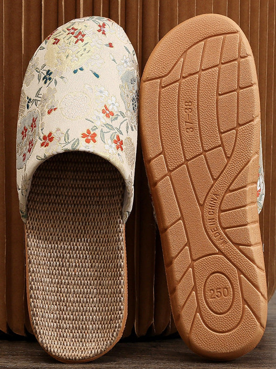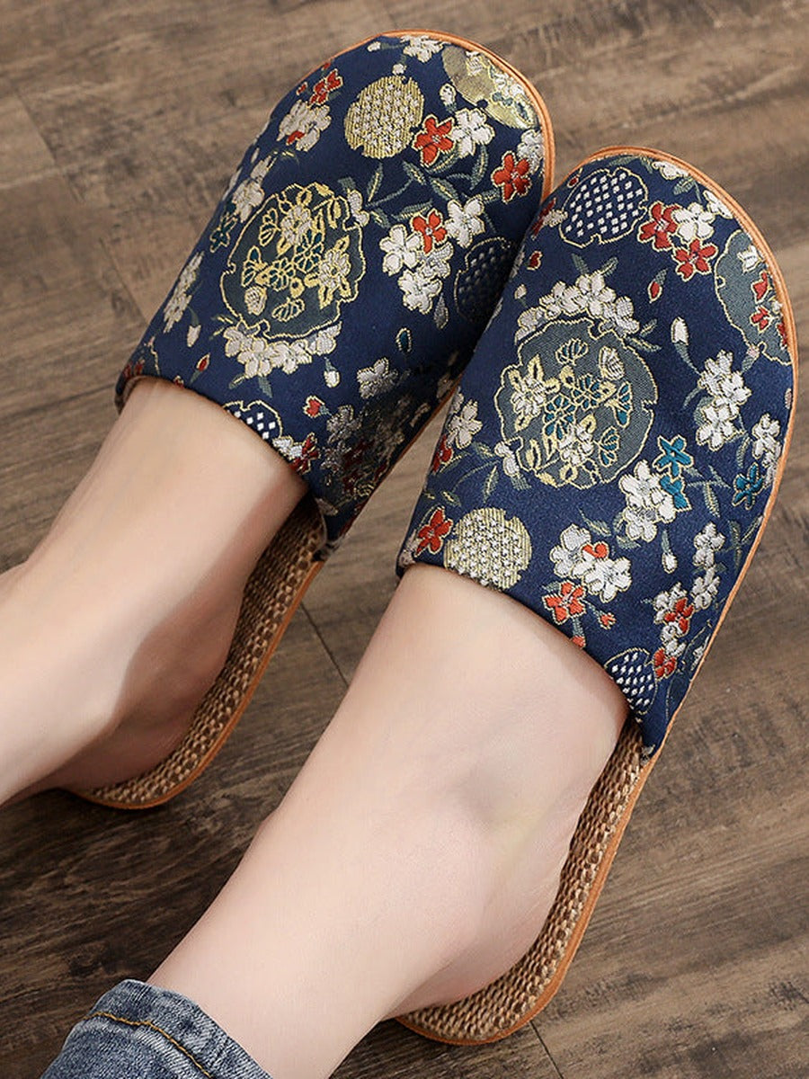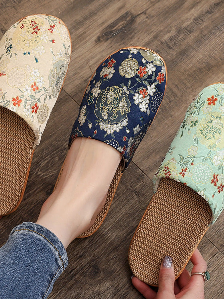 Pantuflas de lino bordadas de estilo chino vintage para mujer