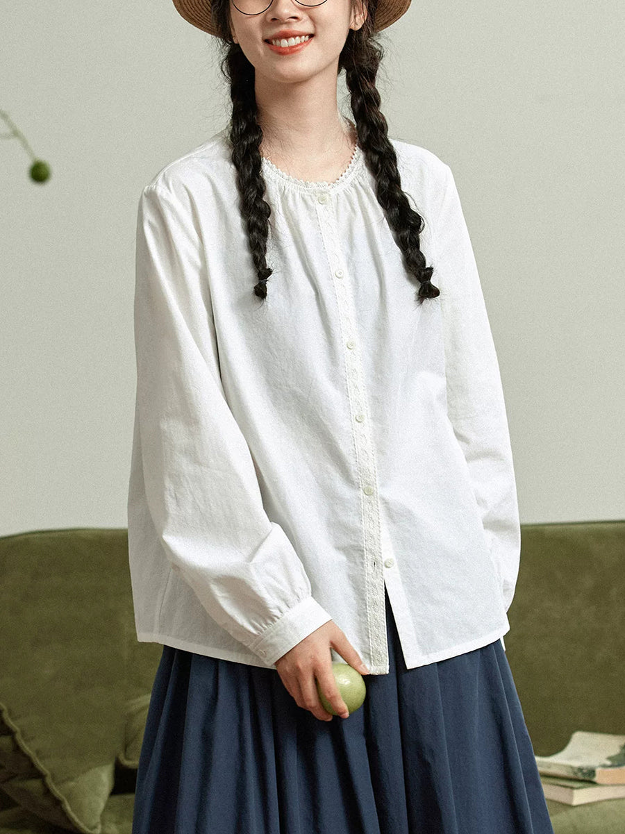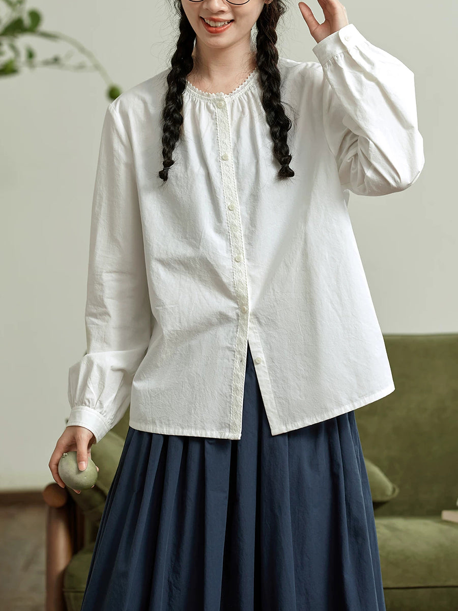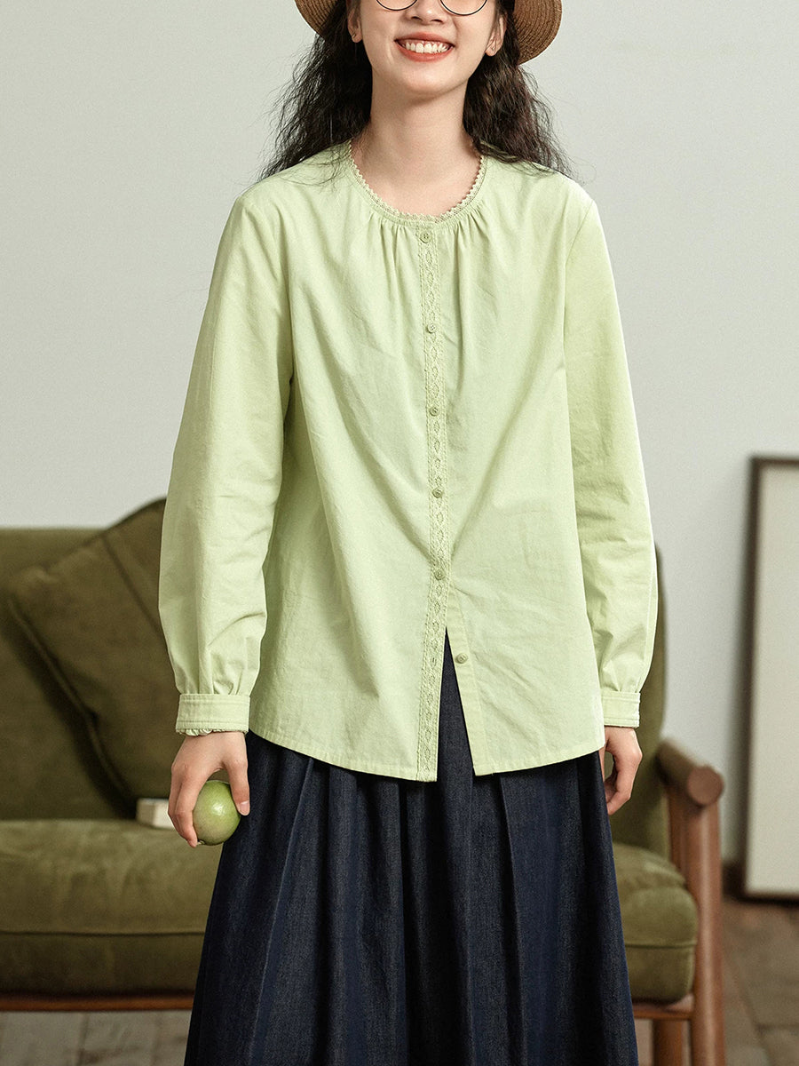 Camisa Artsy de primavera para mujer, 100 % algodón, cuello redondo