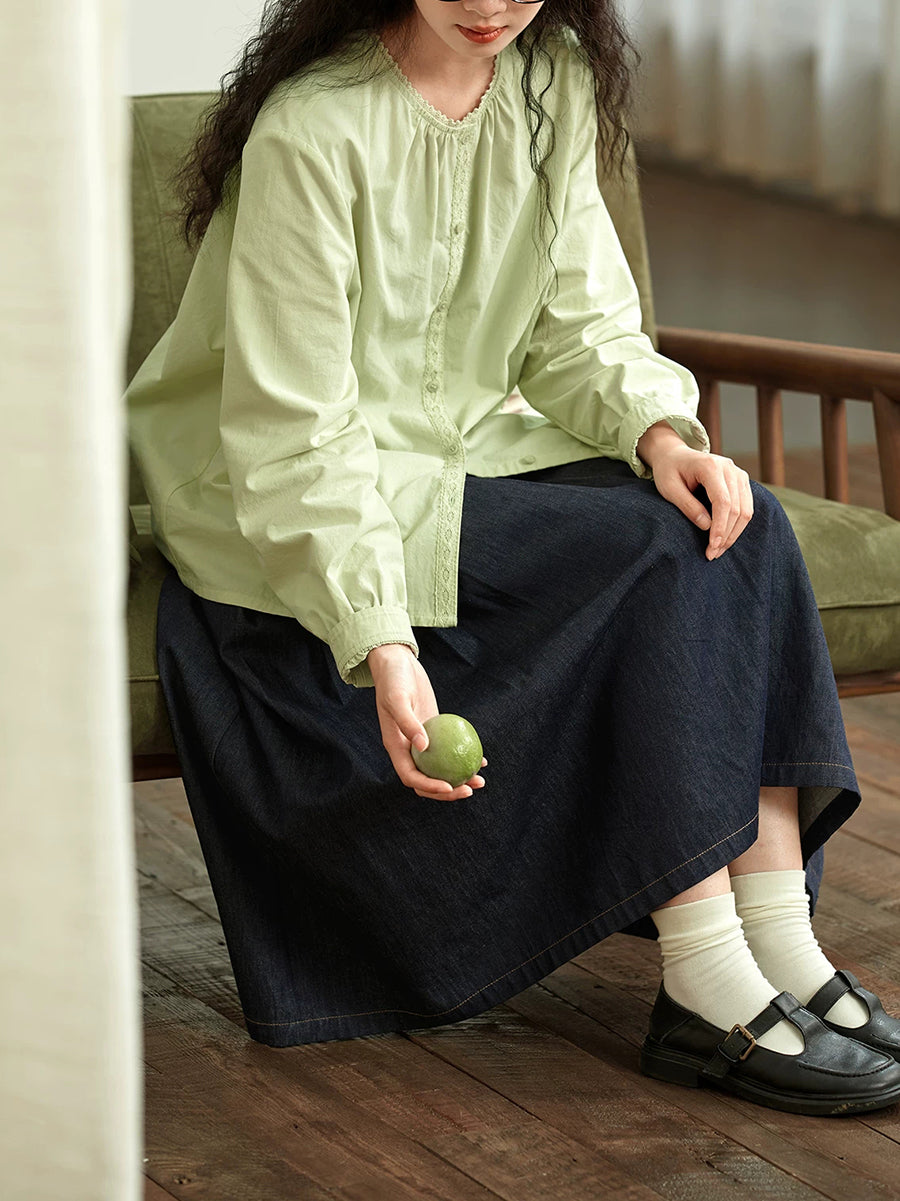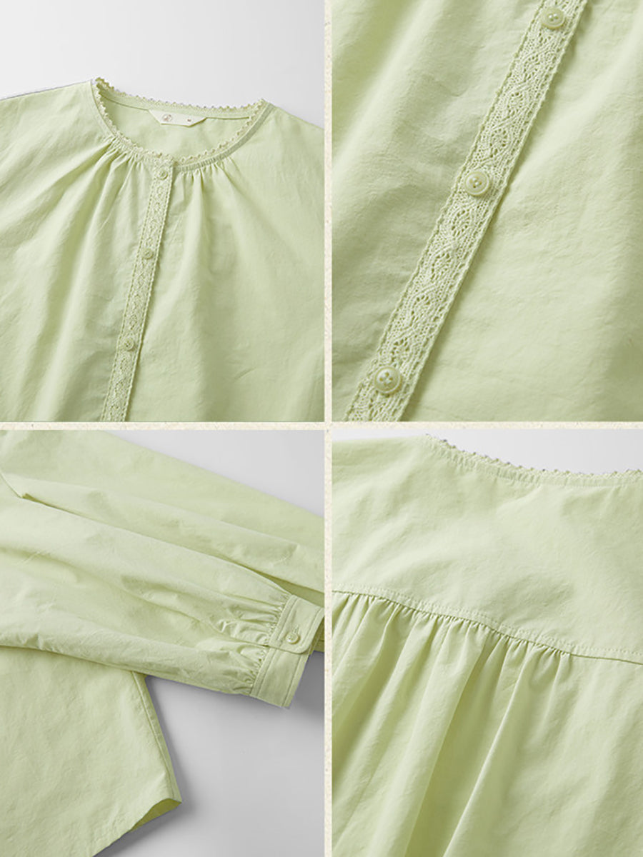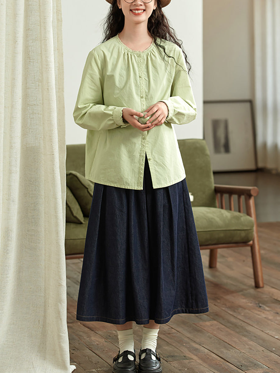Camisa Artsy de primavera para mujer, 100 % algodón, cuello redondo