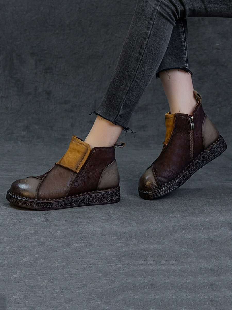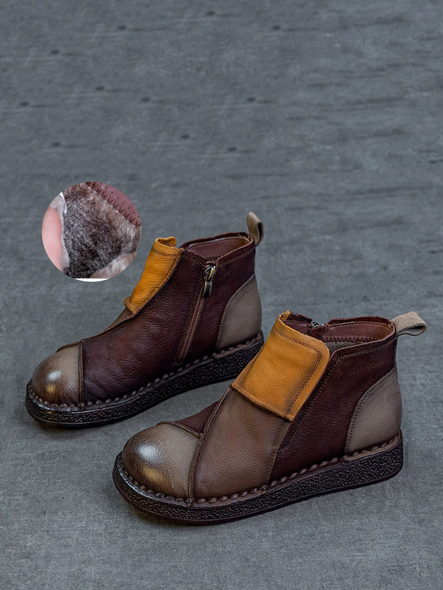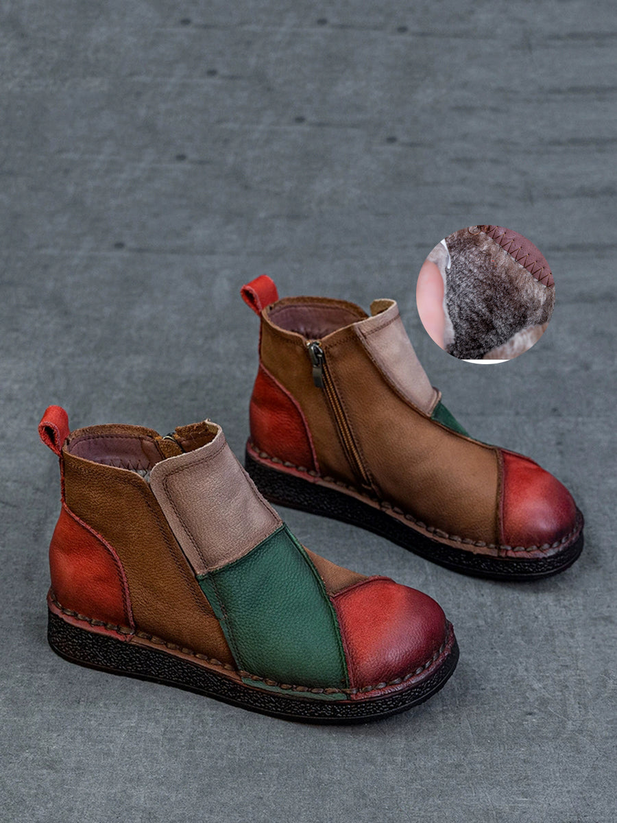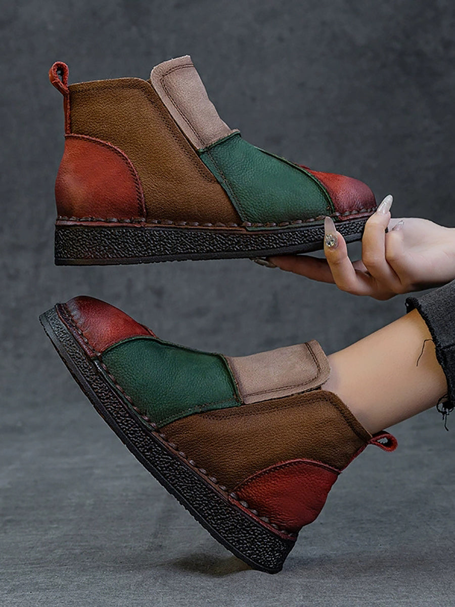 Botines de piel auténtica con bloques de color para mujer, de invierno