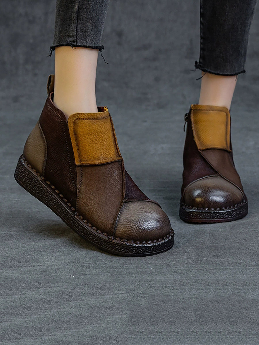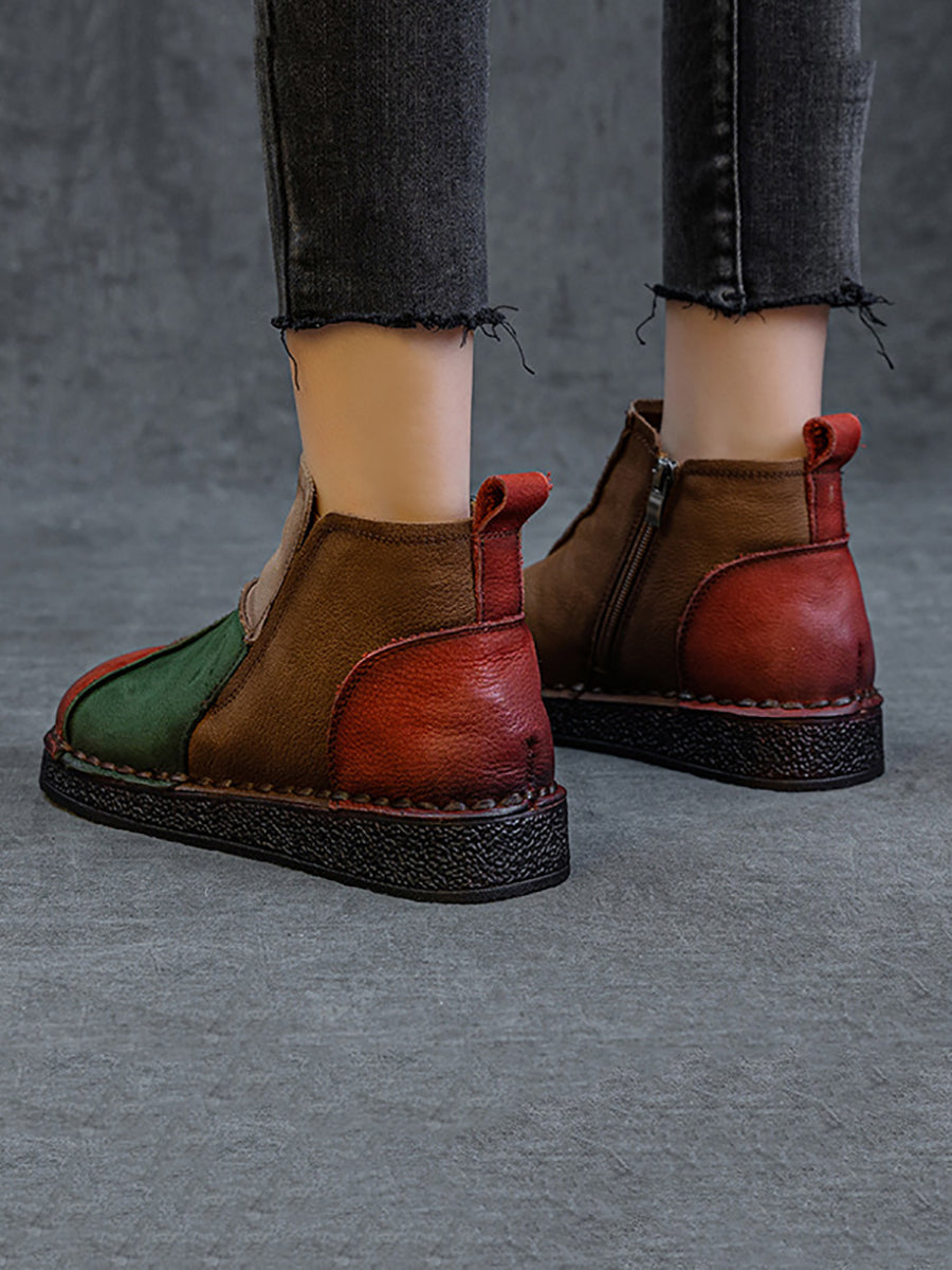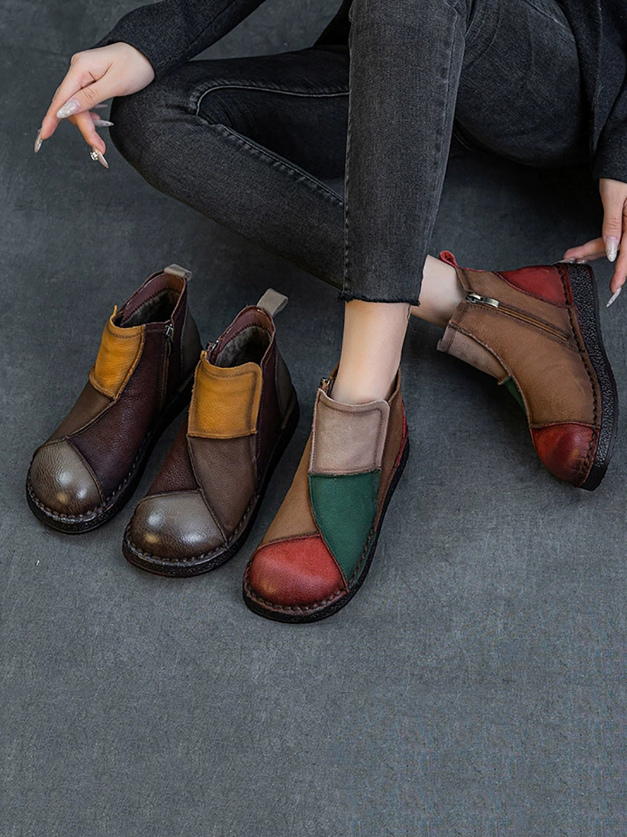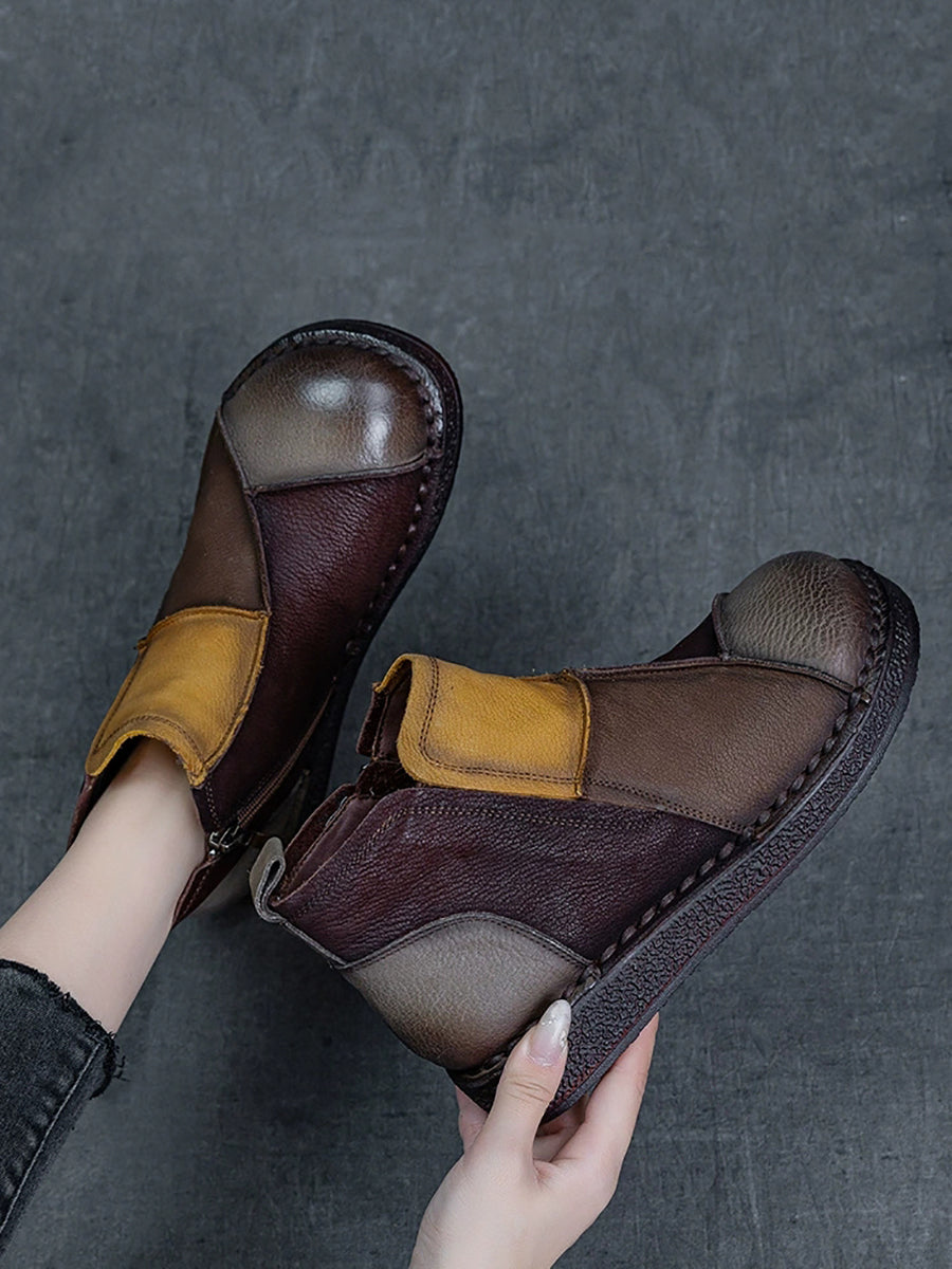 Botines de piel auténtica con bloques de color para mujer, de invierno