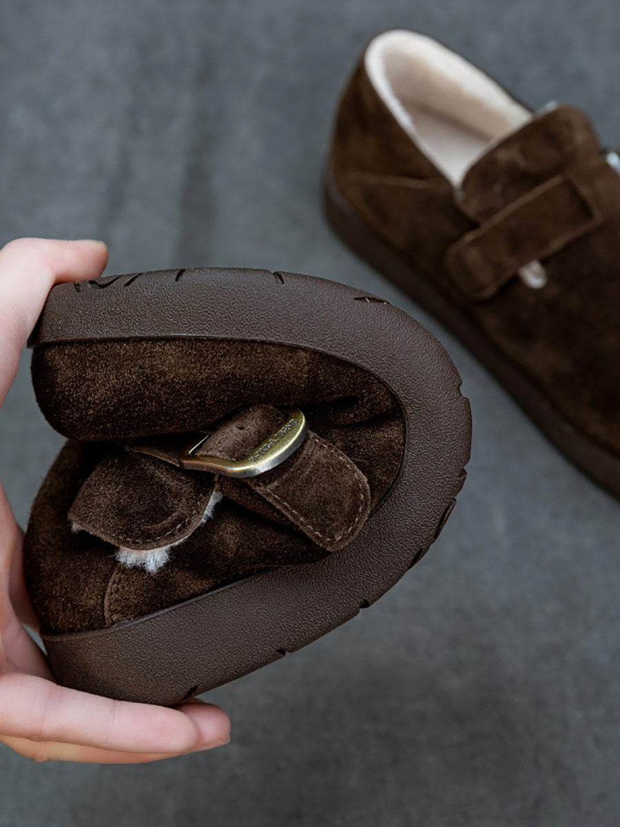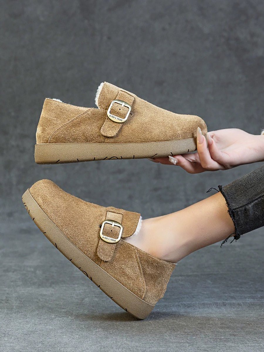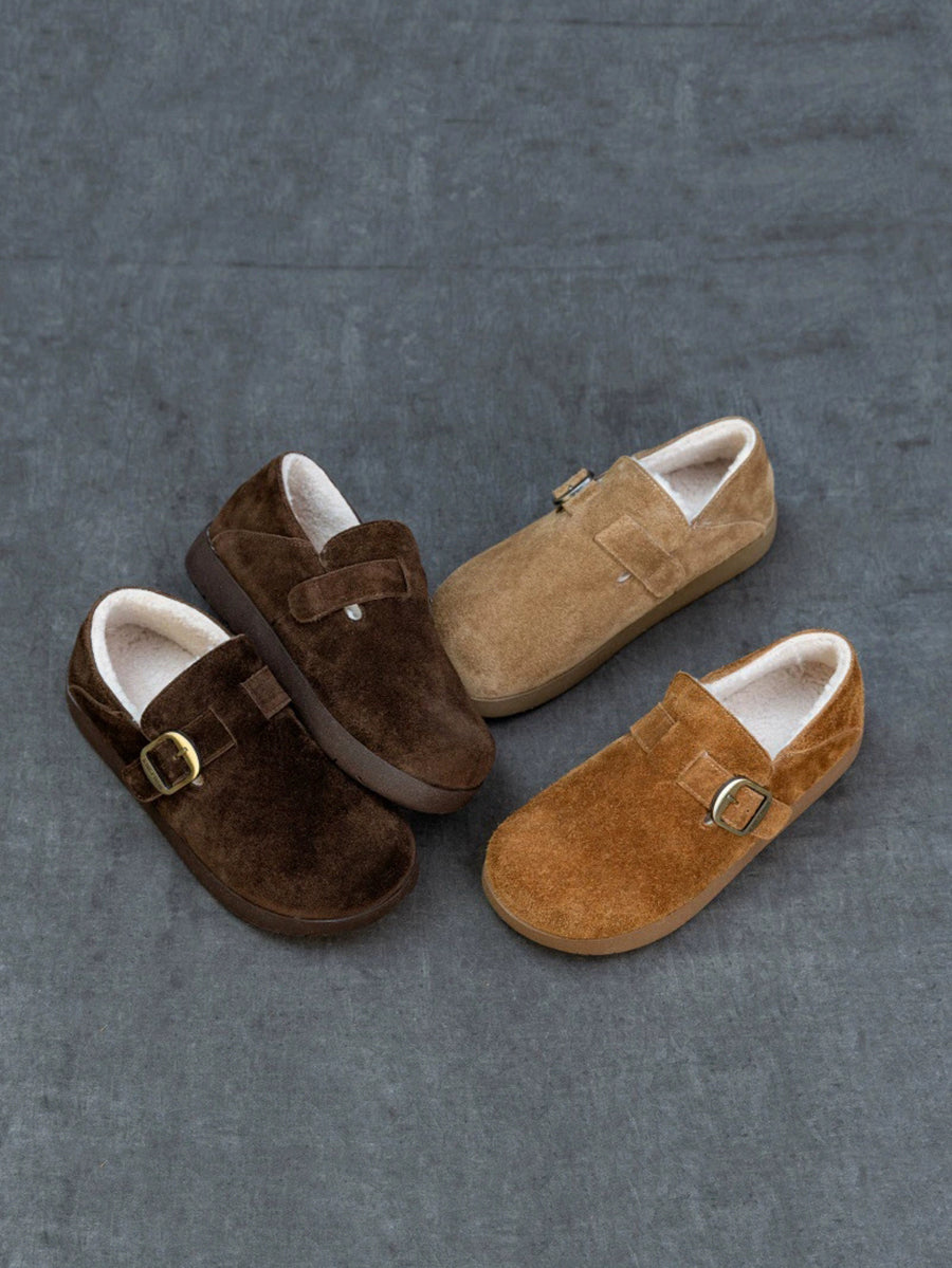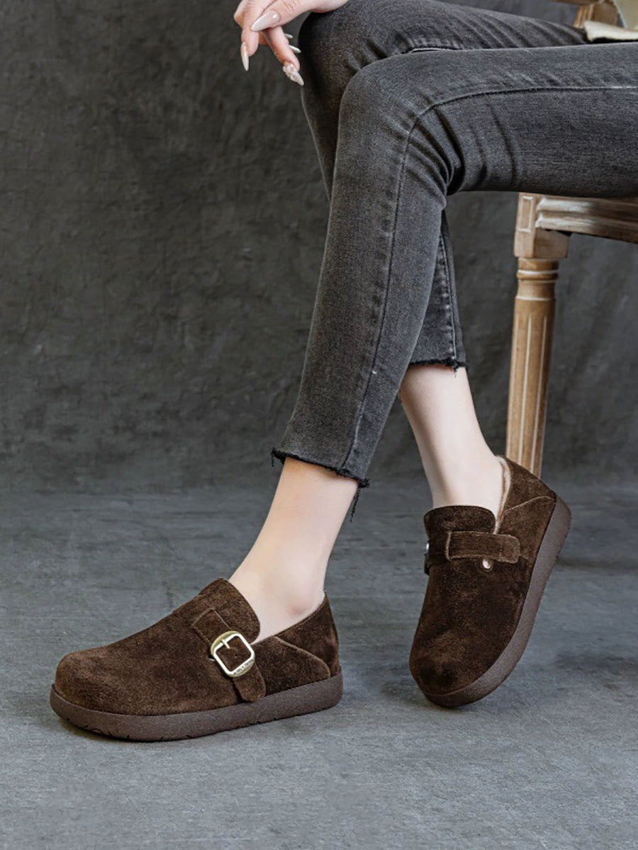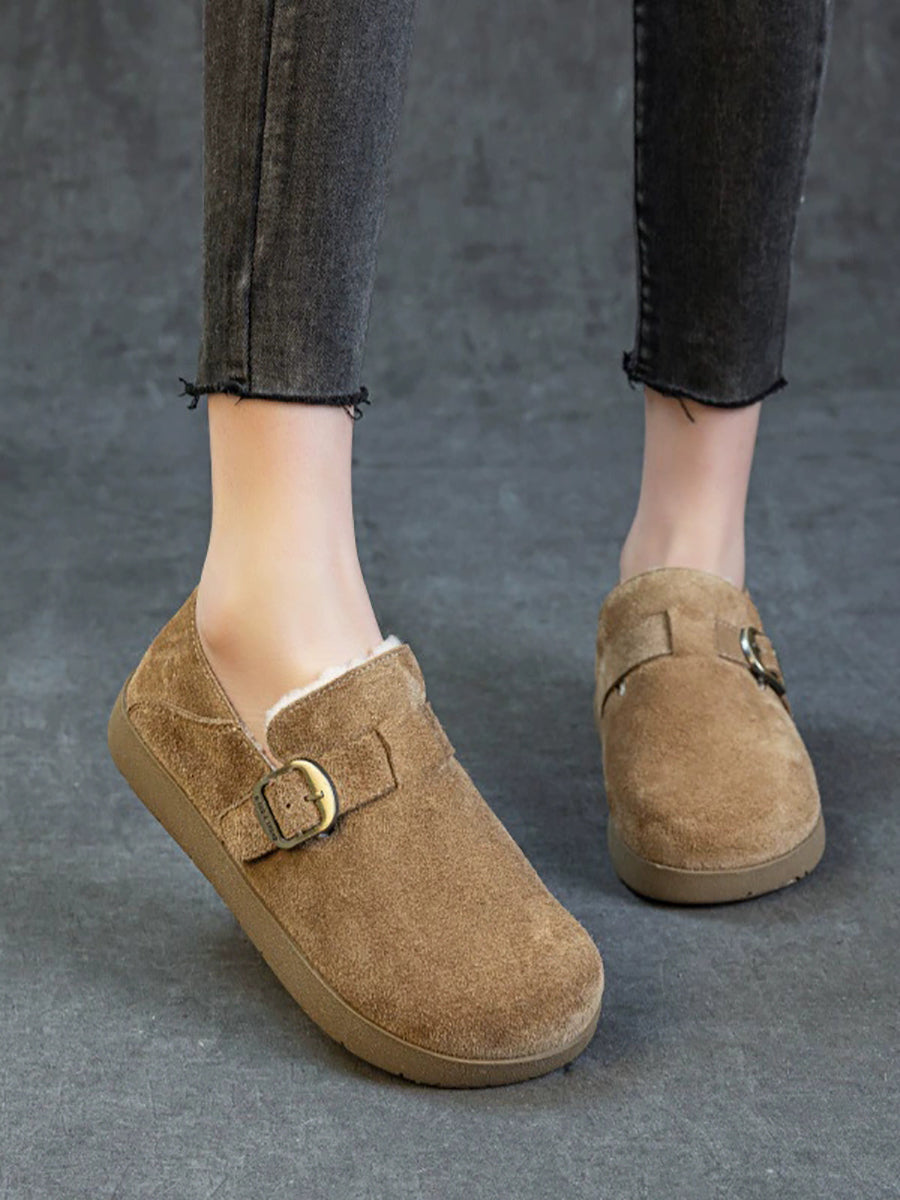 Zapatos planos de invierno para mujer con forro polar y piel de ante
