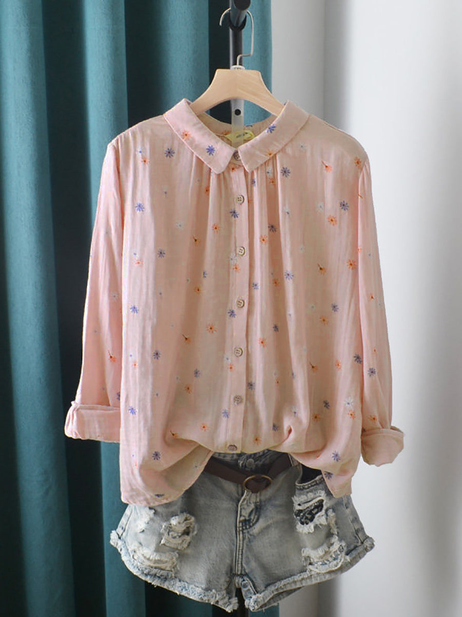 Camisa de algodón para mujer con estampado floral artístico de primavera