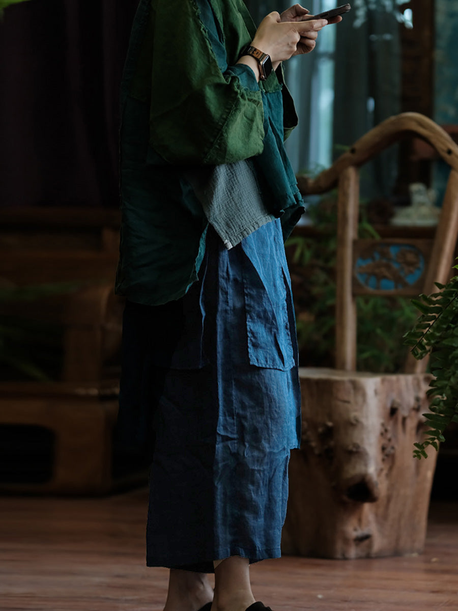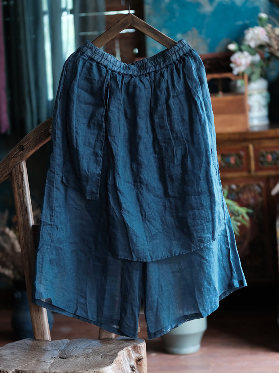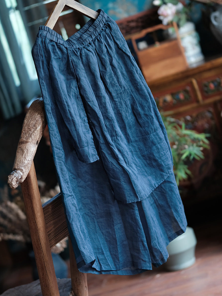 Pantalones anchos de pierna de ramio con empalmes sólidos vintage de verano para mujer