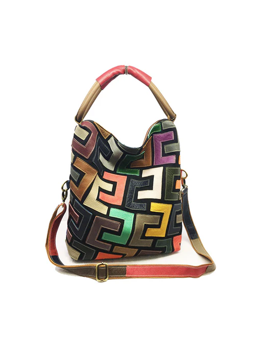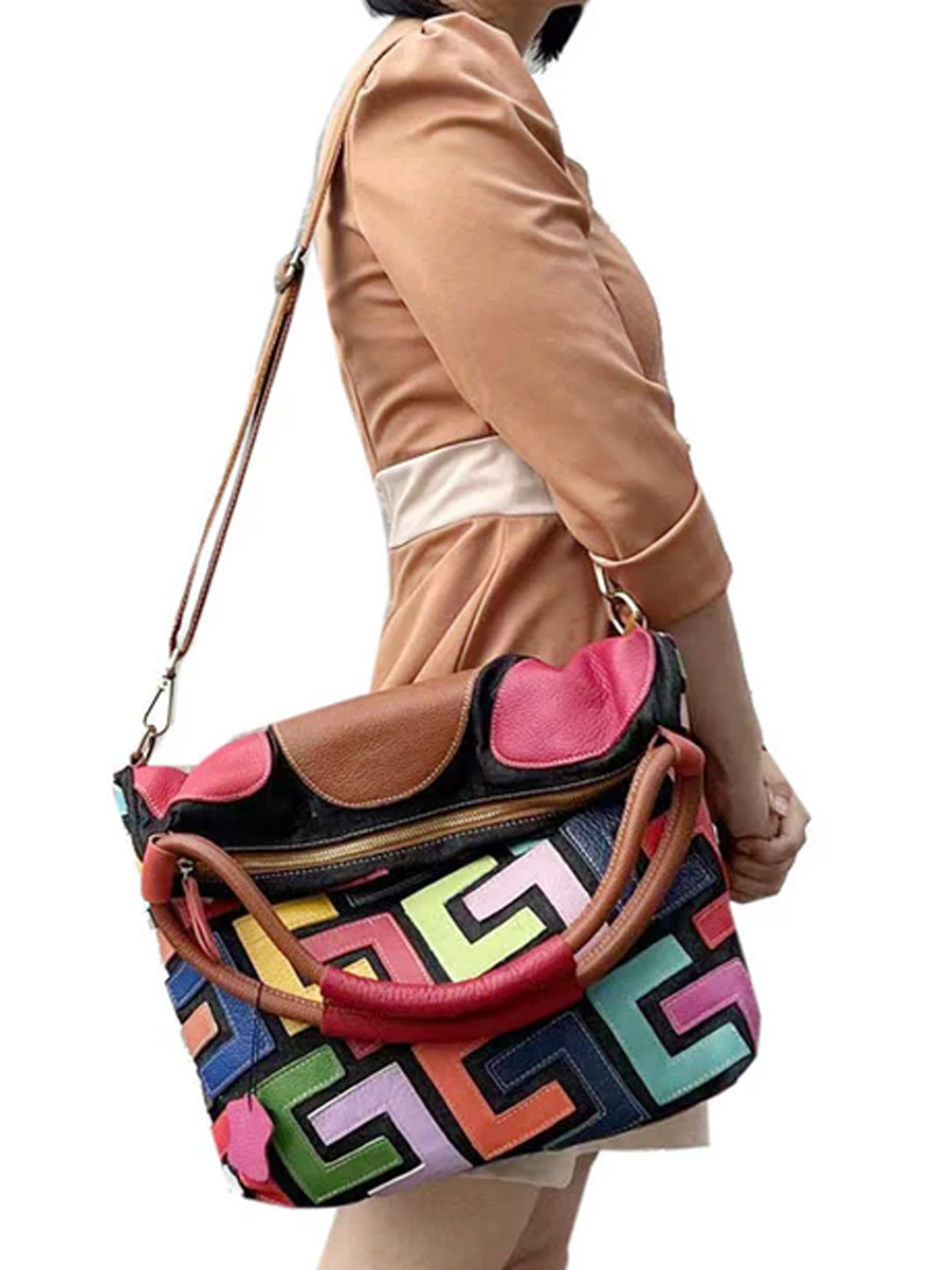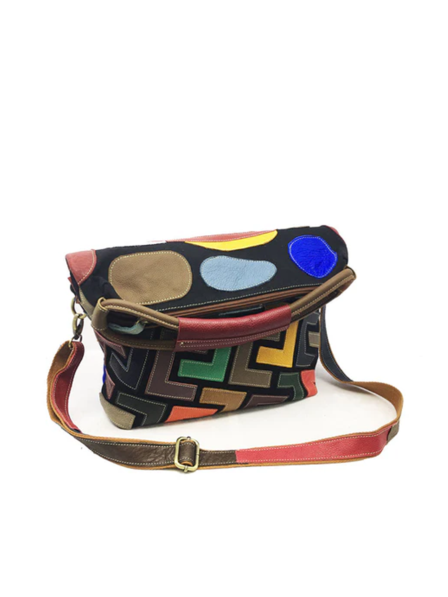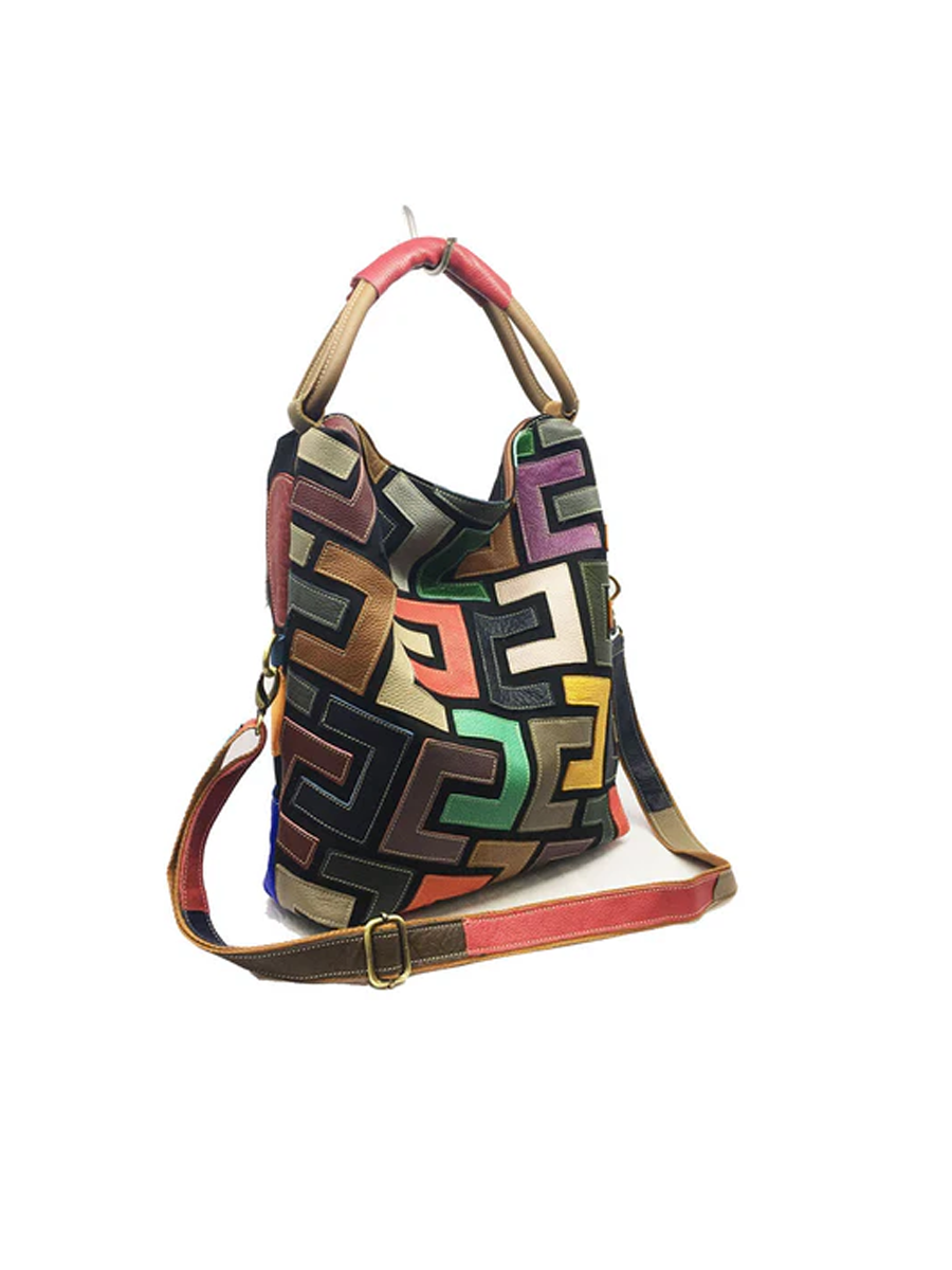 Bolso de mano de mujer en piel con bloques de color