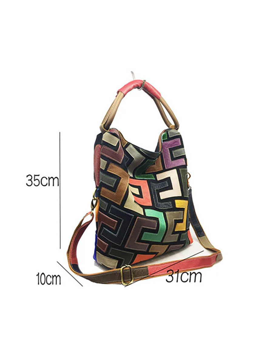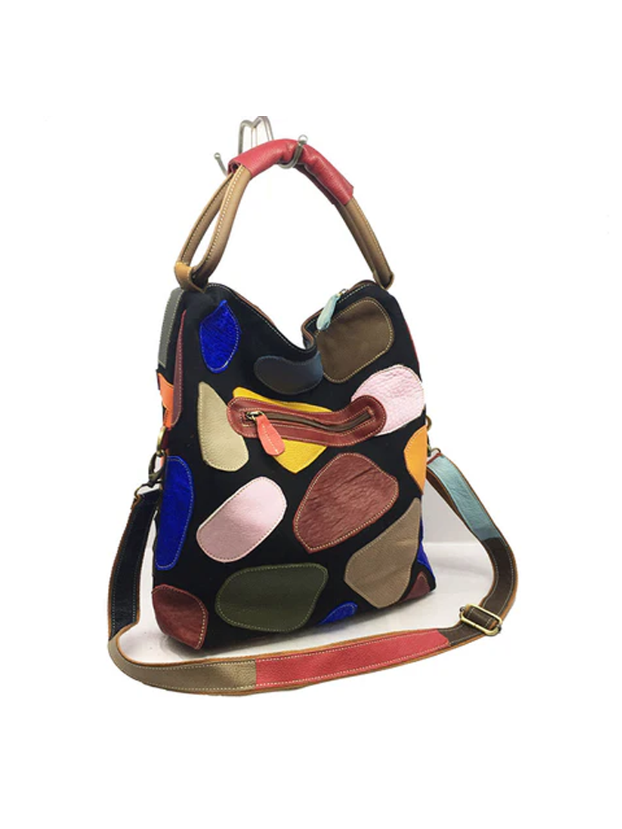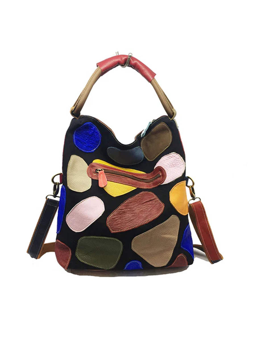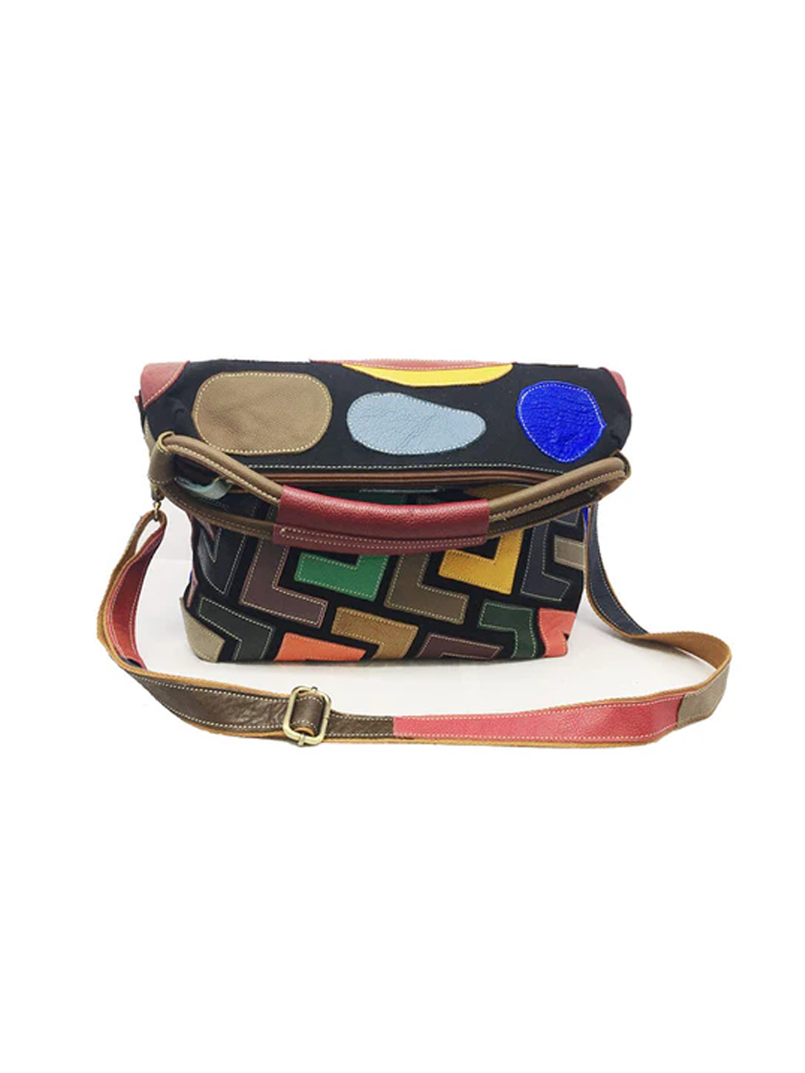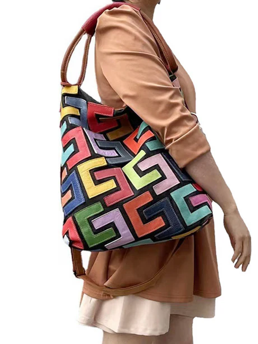 Bolso de mano de mujer en piel con bloques de color