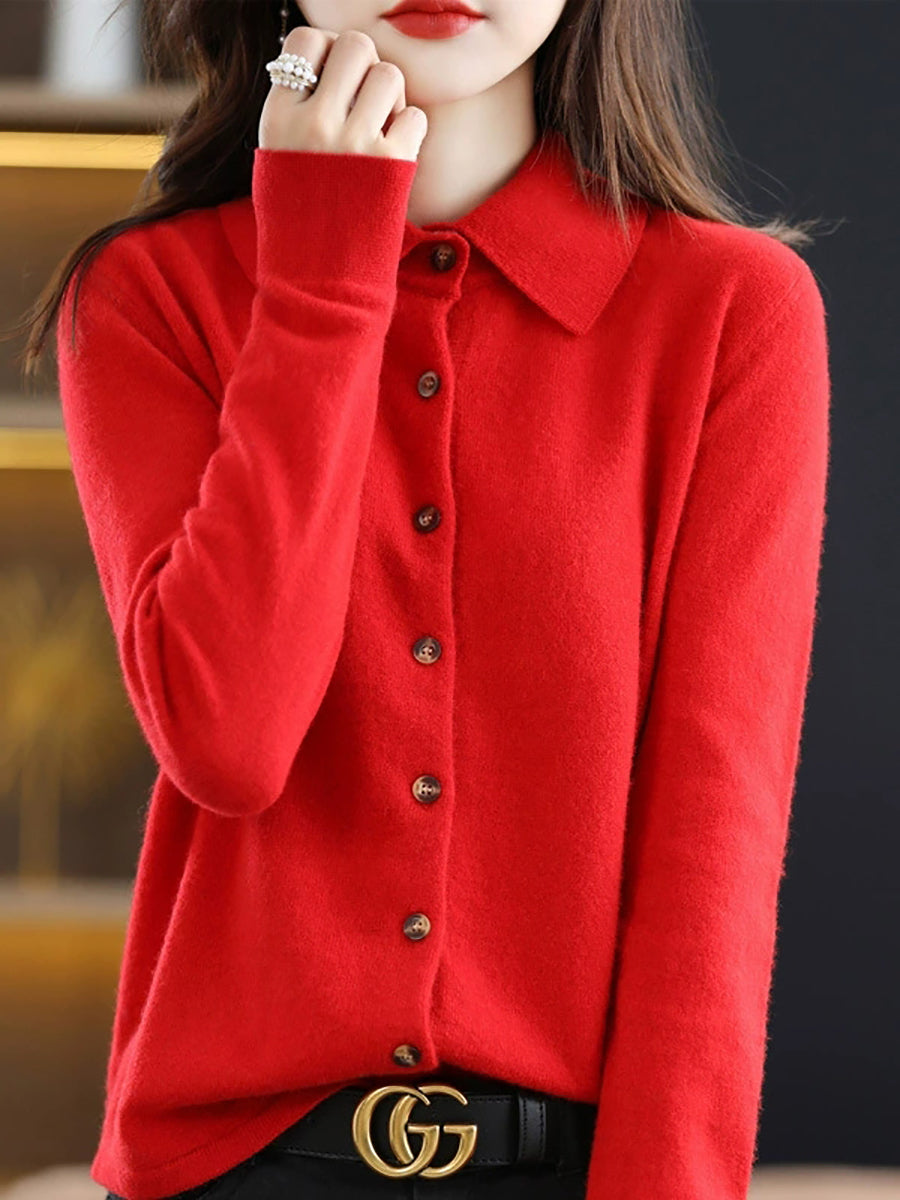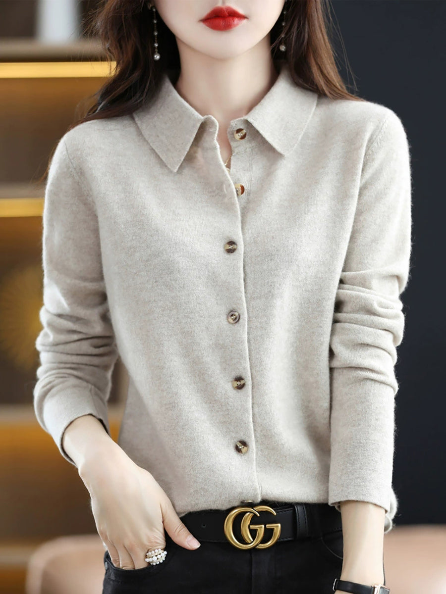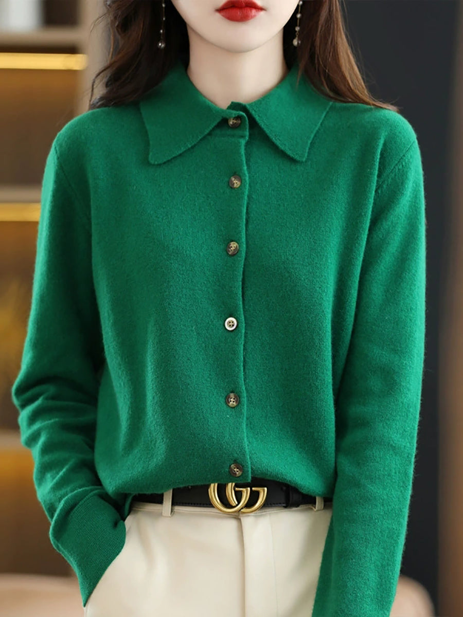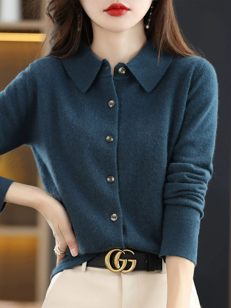 Suéter tipo cárdigan informal con cuello vuelto para mujer, primavera