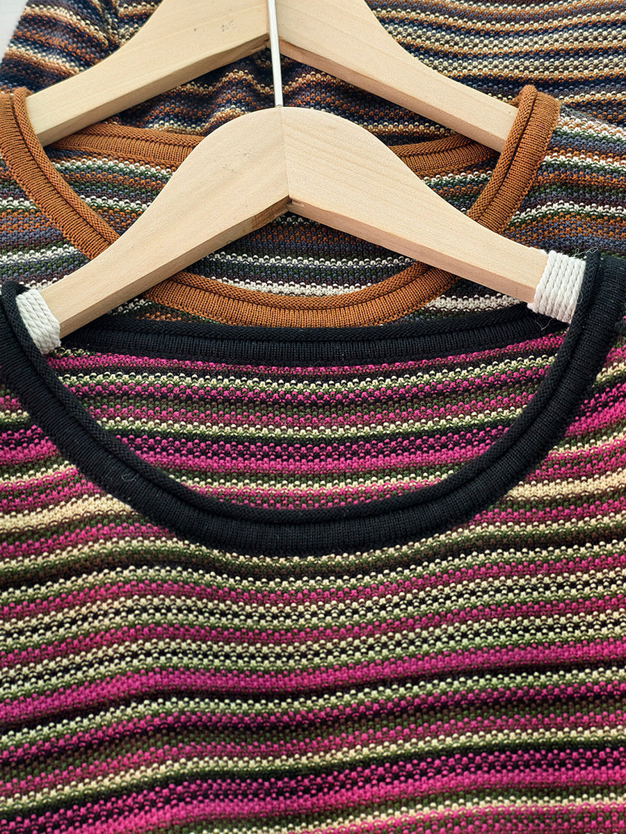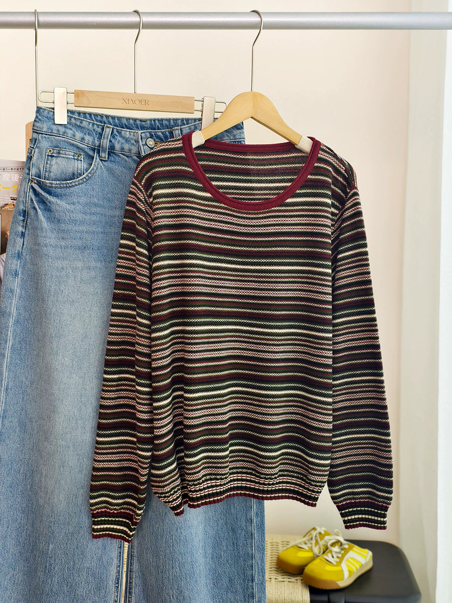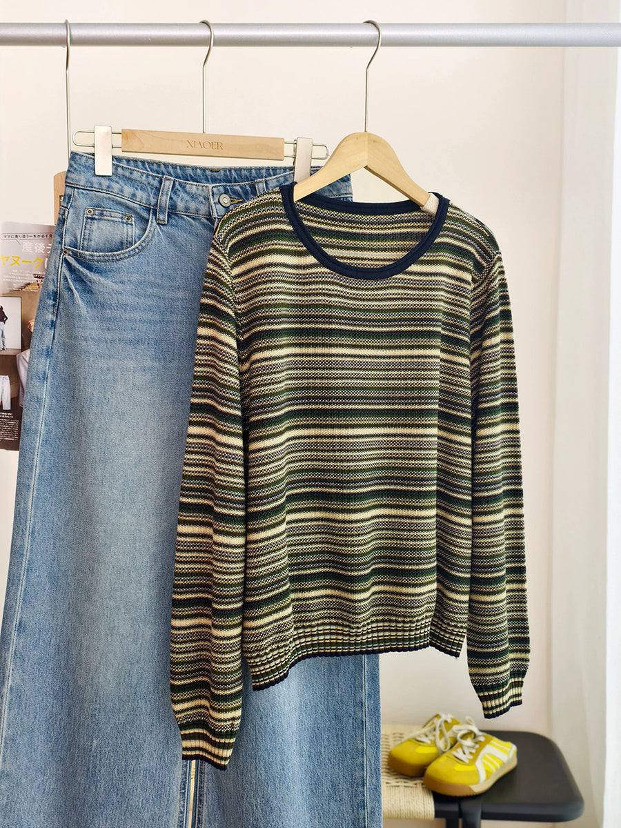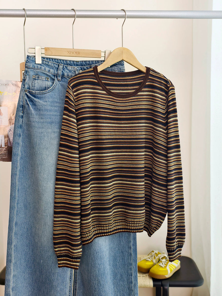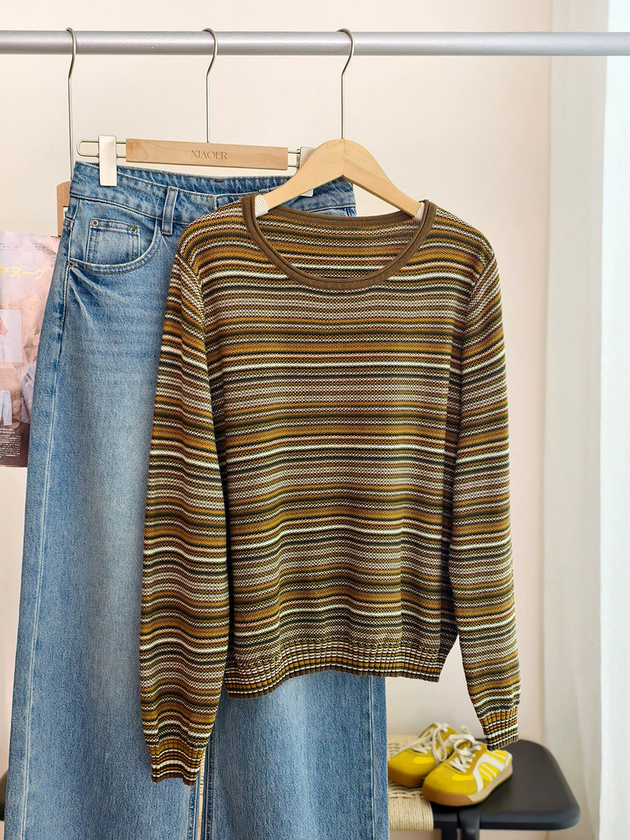 Blusa informal de algodón con cuello redondo y rayas para mujer, primavera