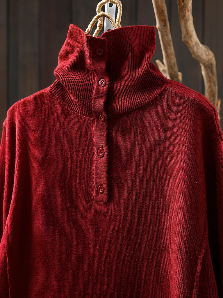Blusa de cuello alto de punto de color puro de otoño para mujer