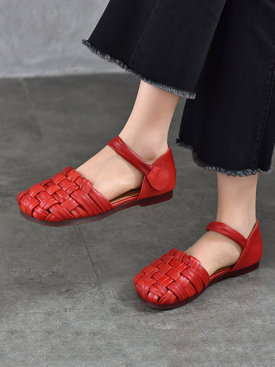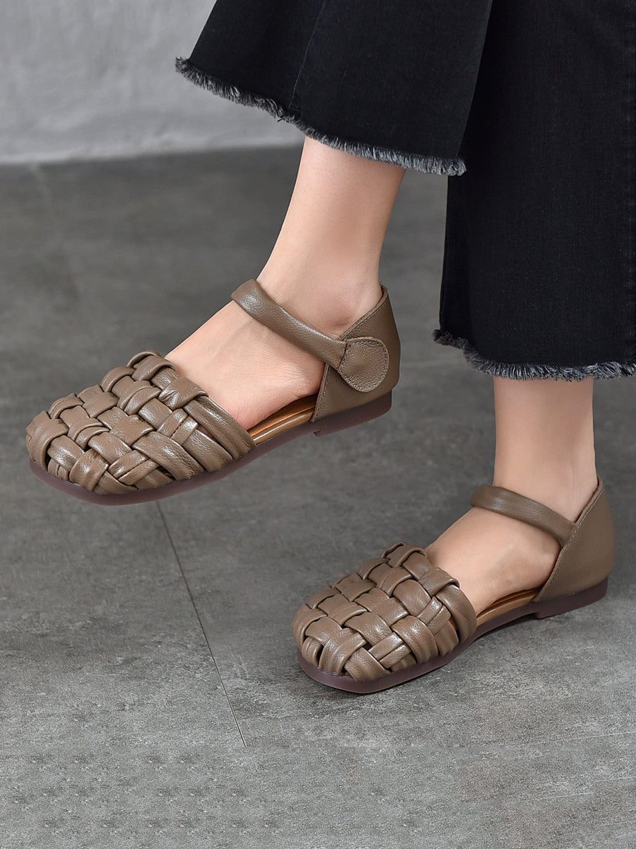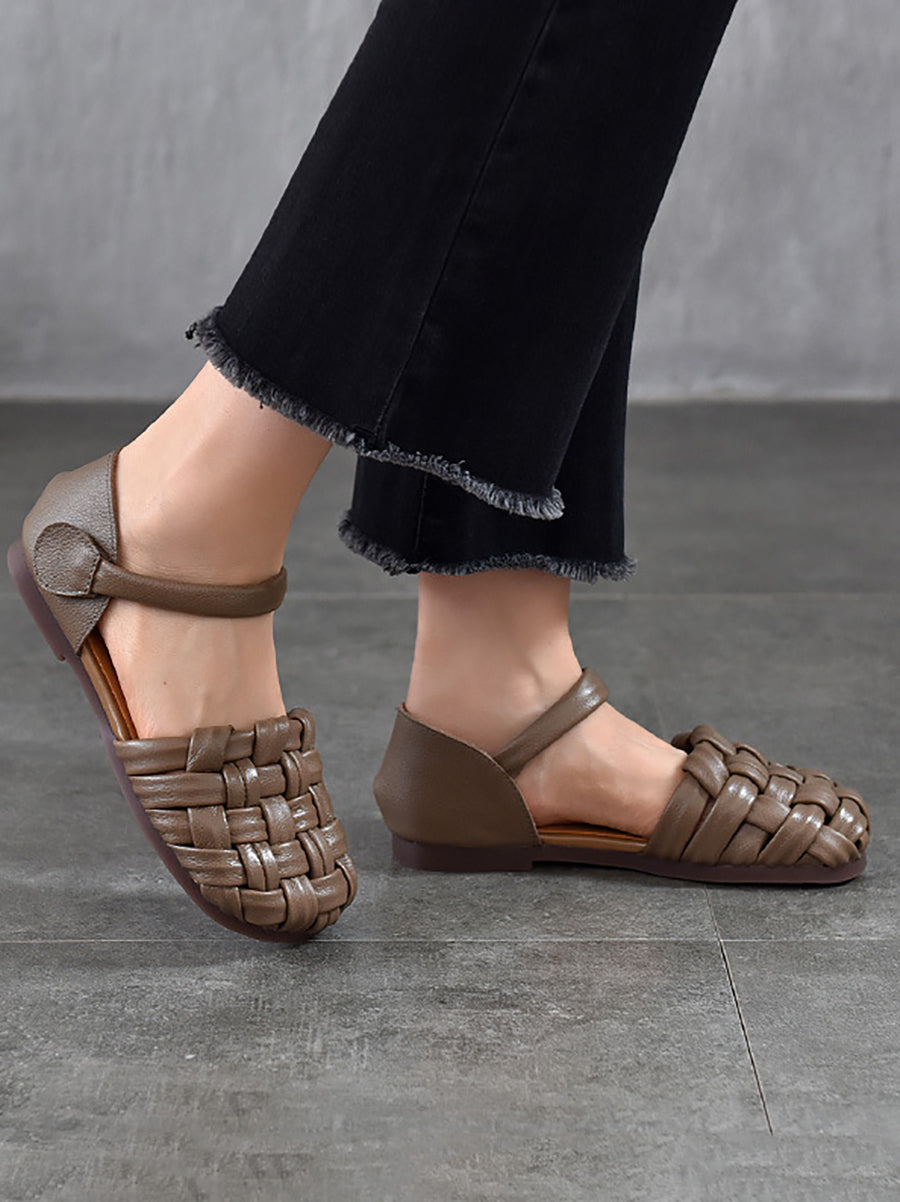 Sandalias planas de cuero informales de verano para mujer