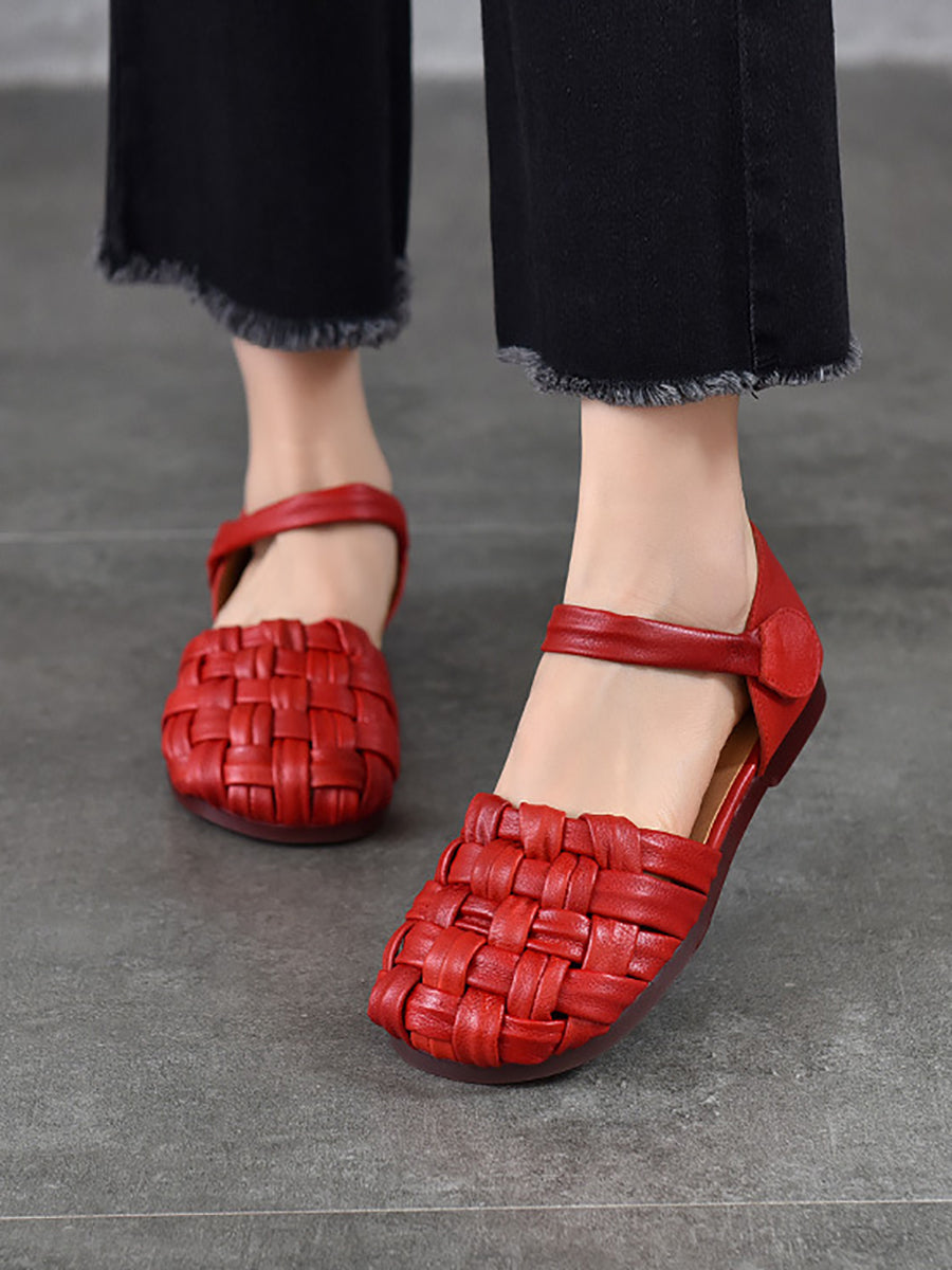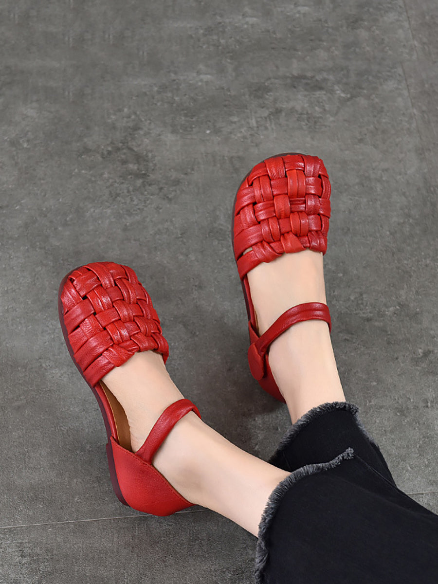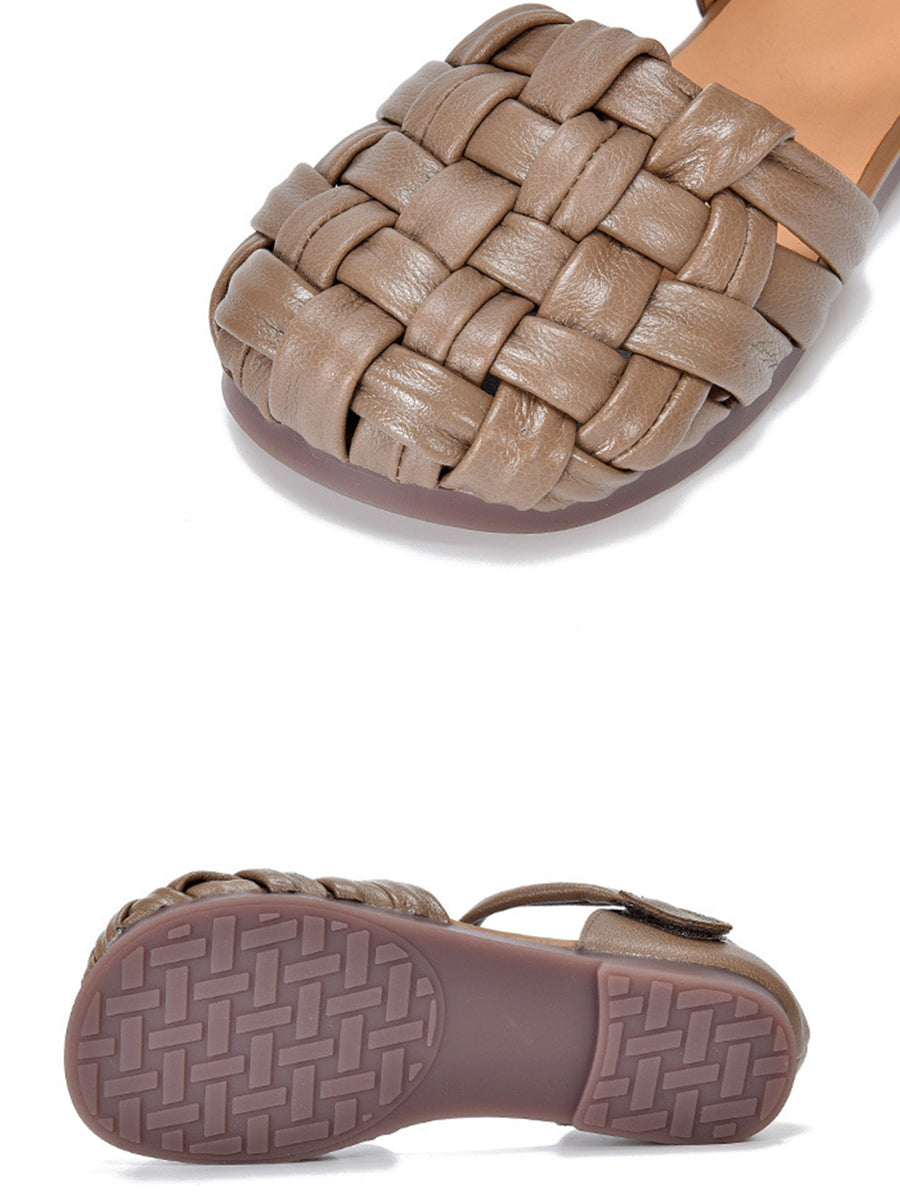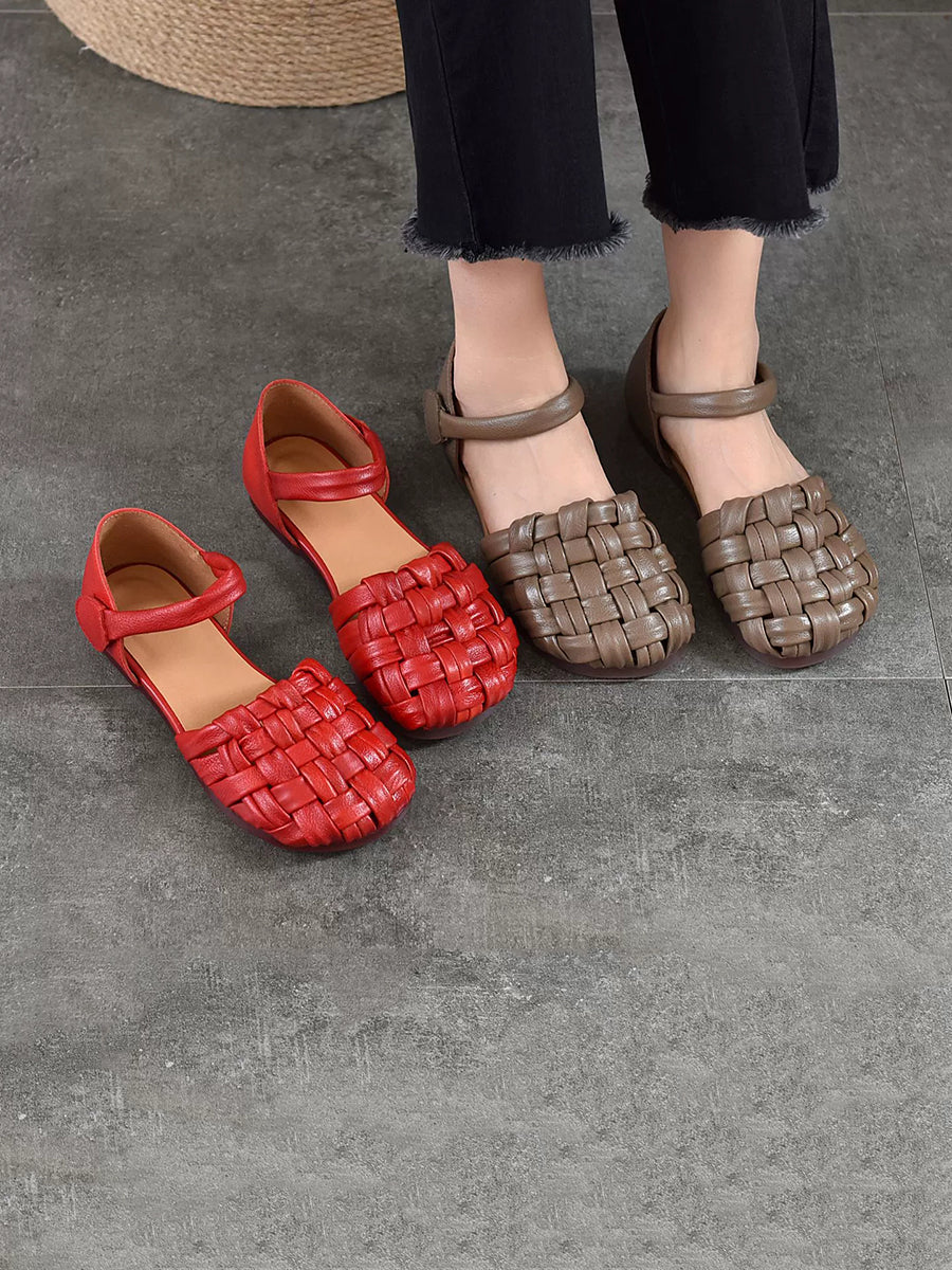 Sandalias planas de cuero informales de verano para mujer