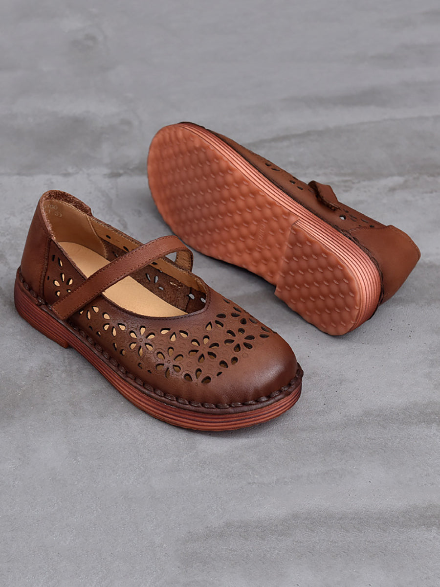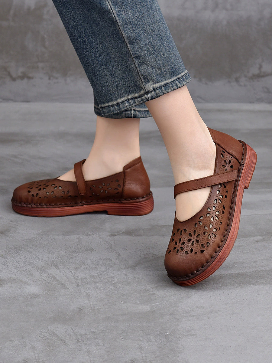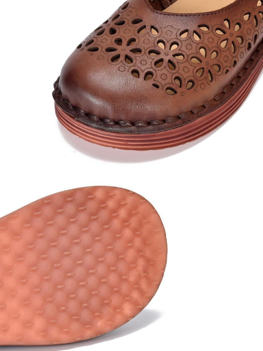Zapatos de verano de piel auténtica con agujeros para mujer