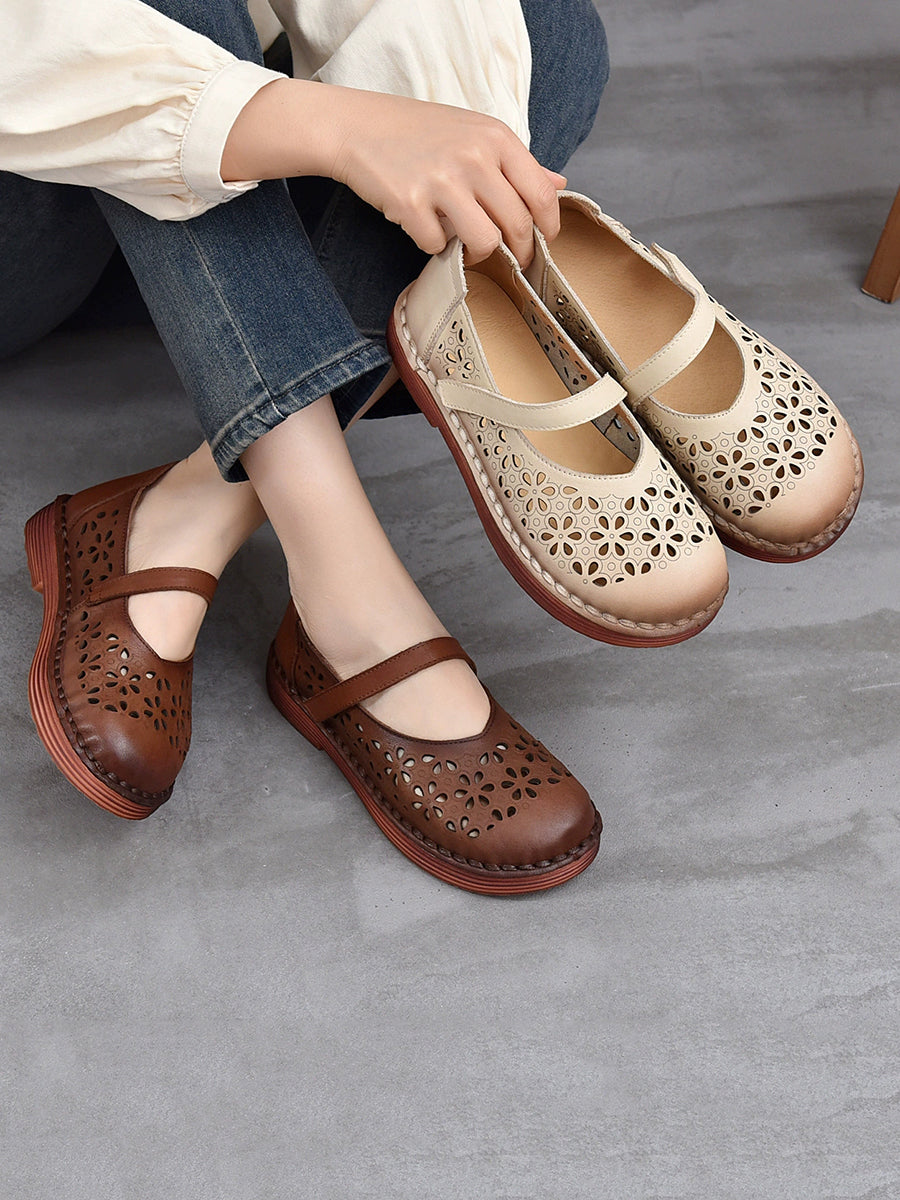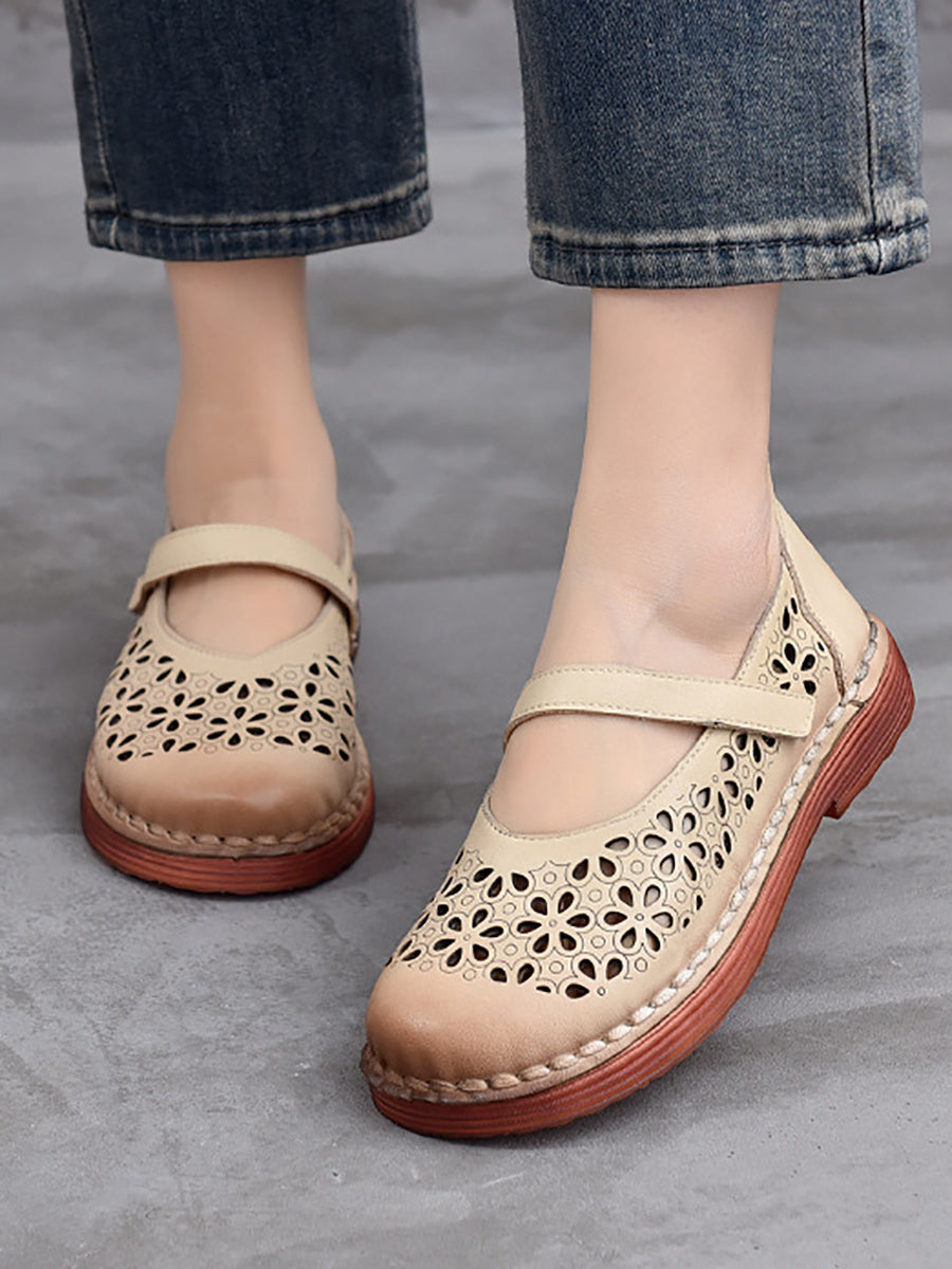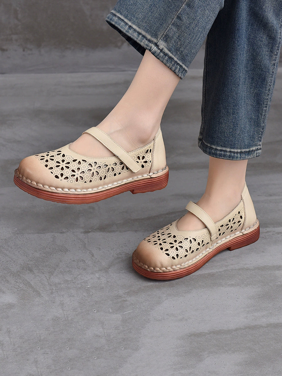 Zapatos de verano de piel auténtica con agujeros para mujer