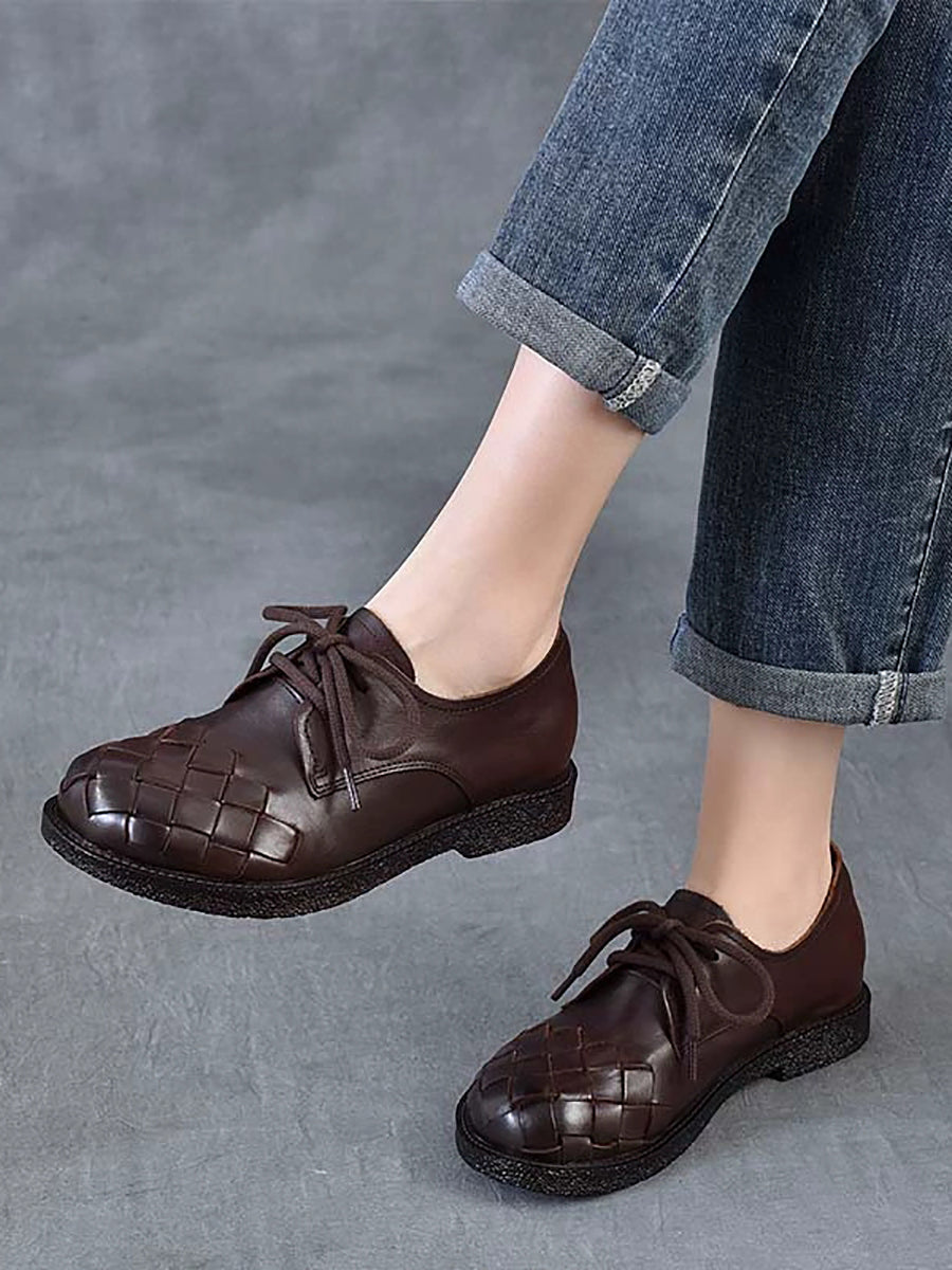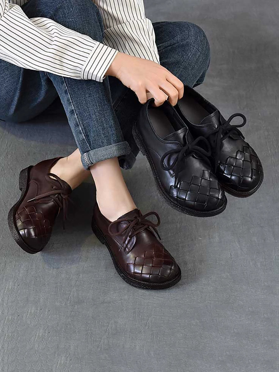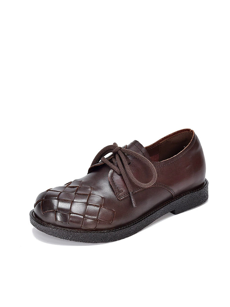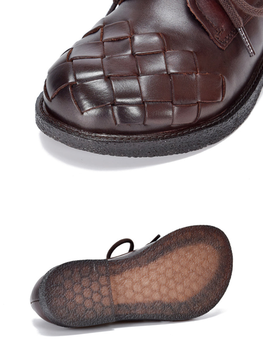 Zapatos de tacón bajo vintage de piel auténtica para mujer