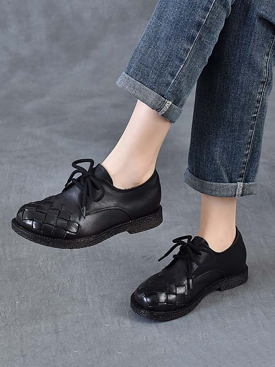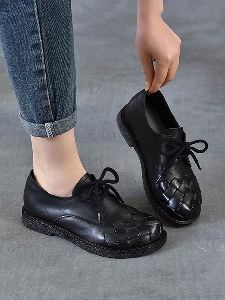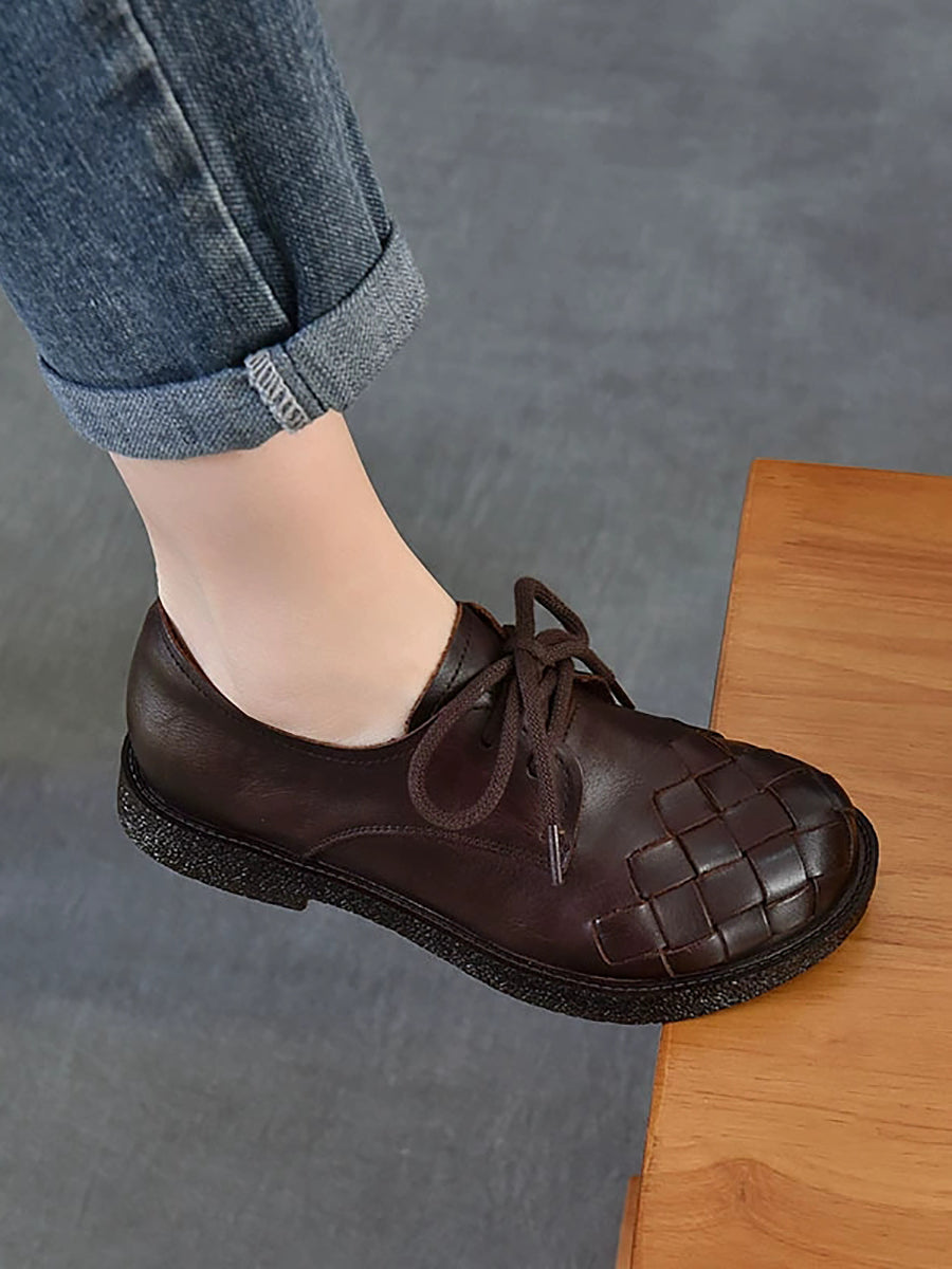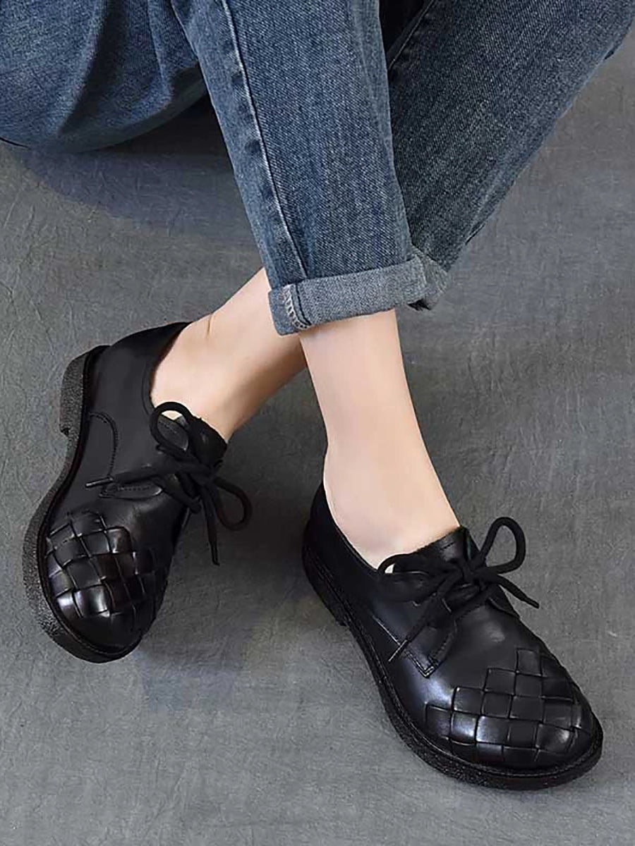 Zapatos de tacón bajo vintage de piel auténtica para mujer