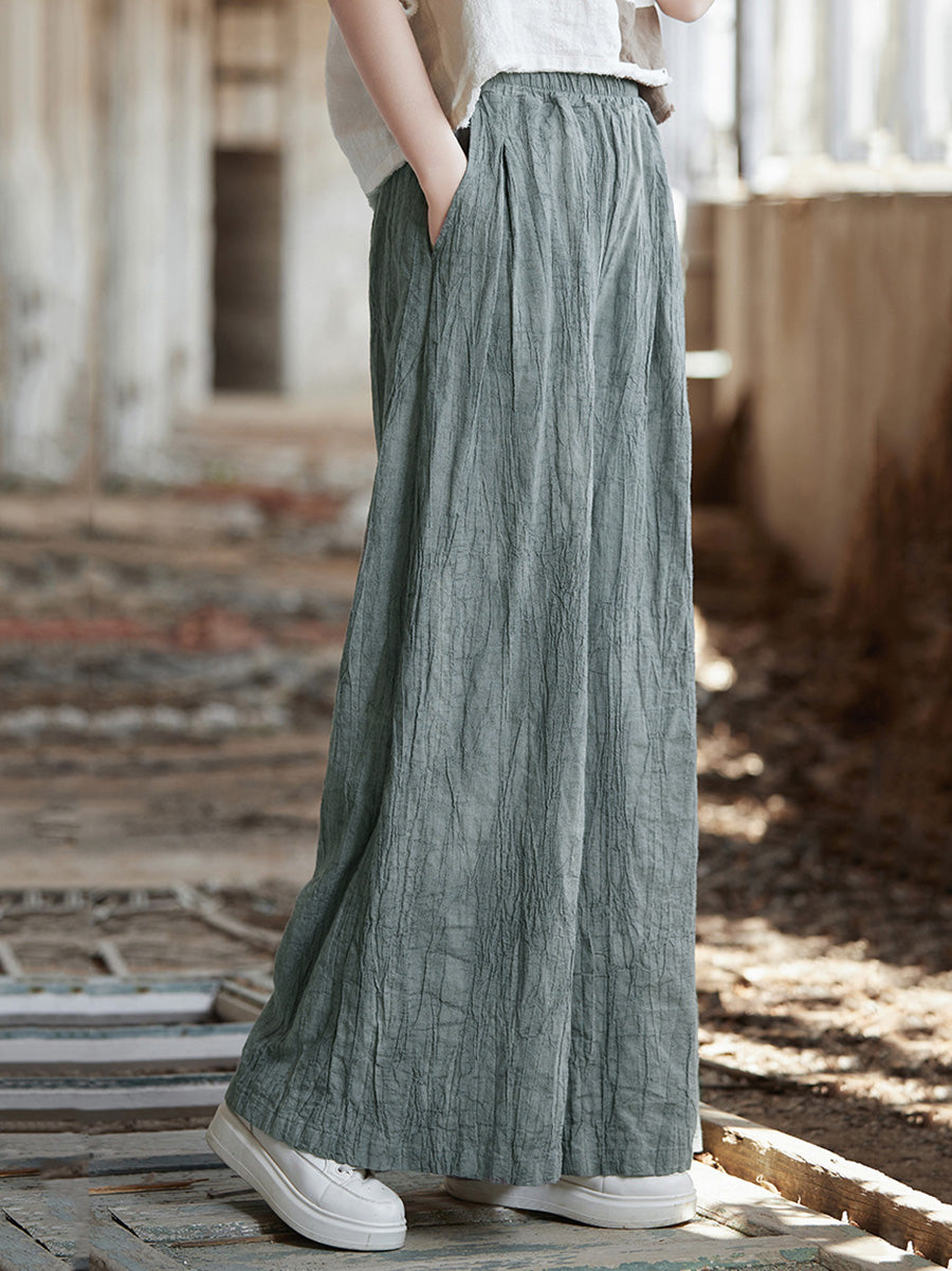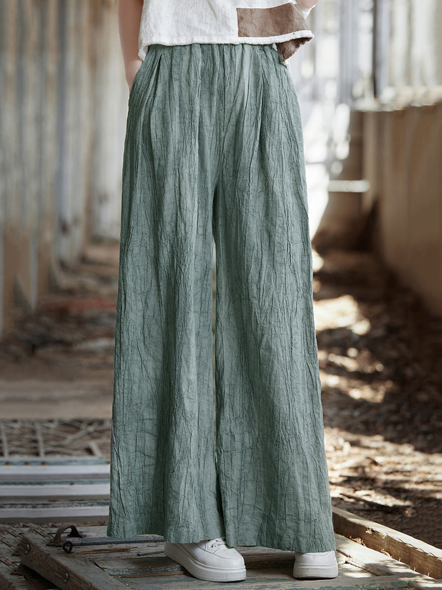Pantalones anchos de ramio con efecto tie-dye vintage para mujer de primavera