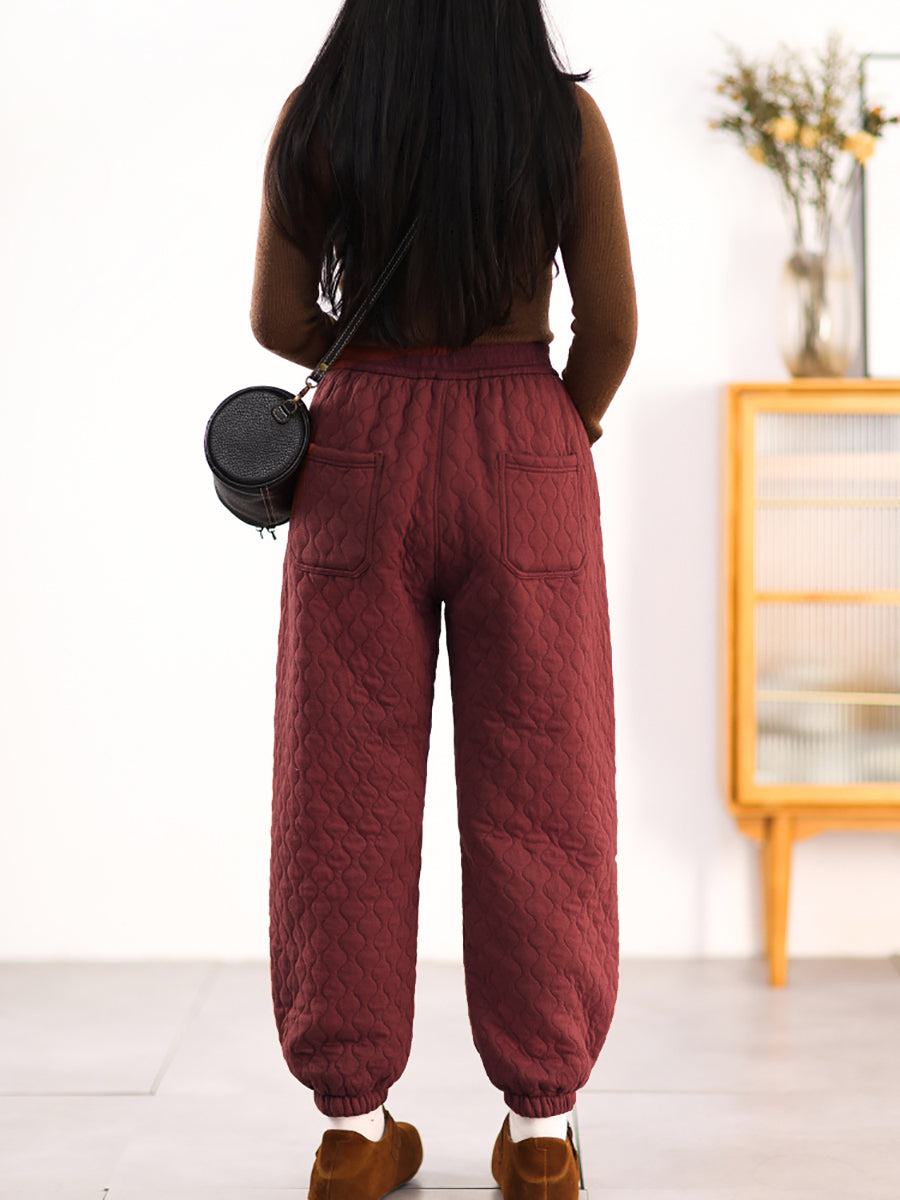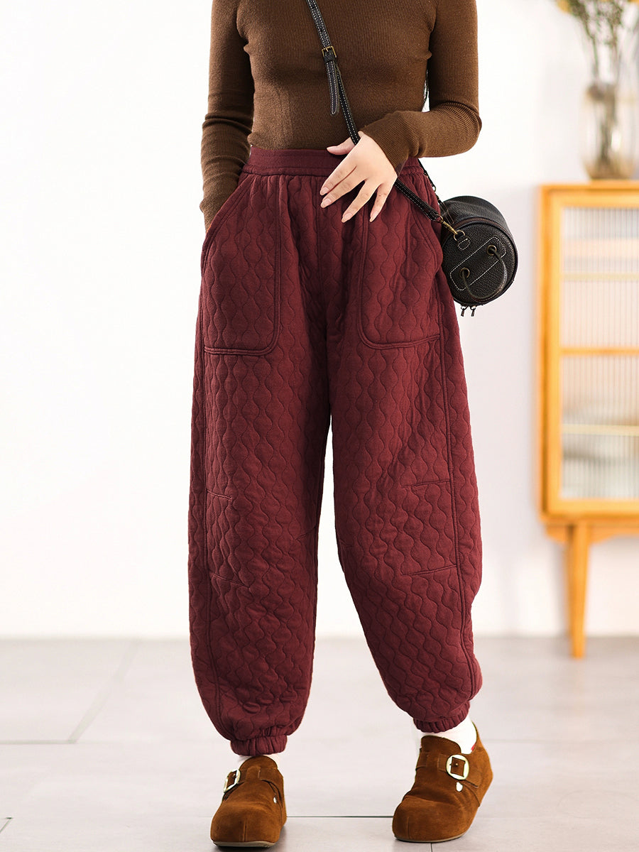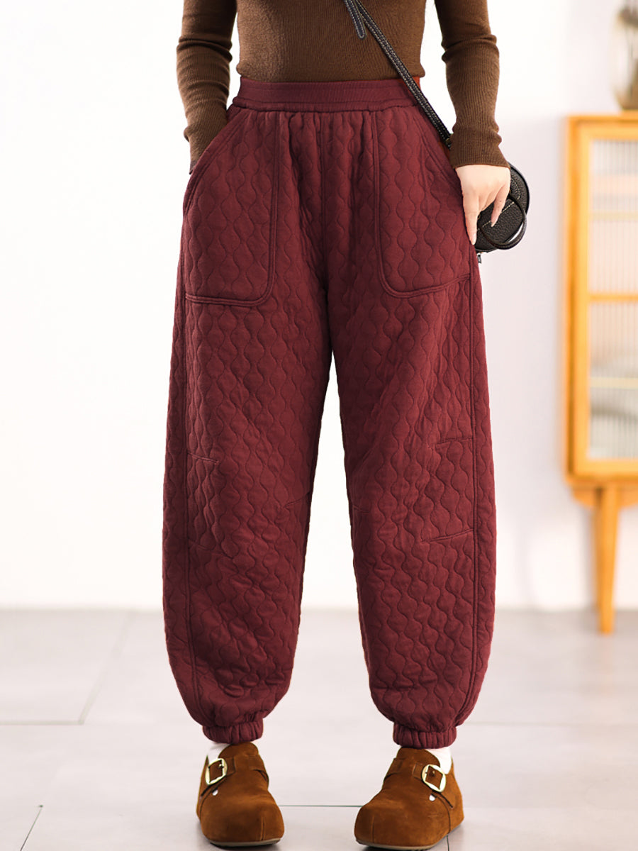 Pantalones harén acolchados de color puro informales de invierno para mujer