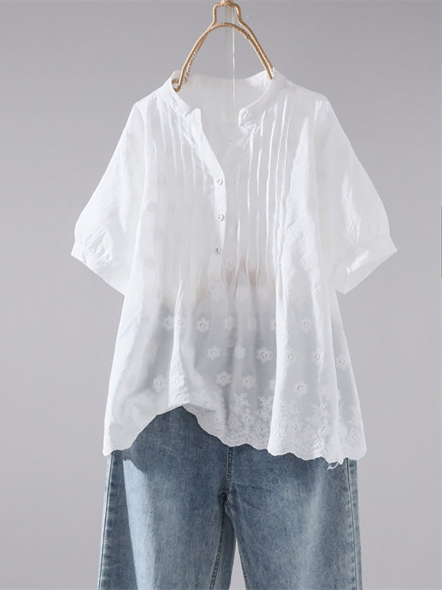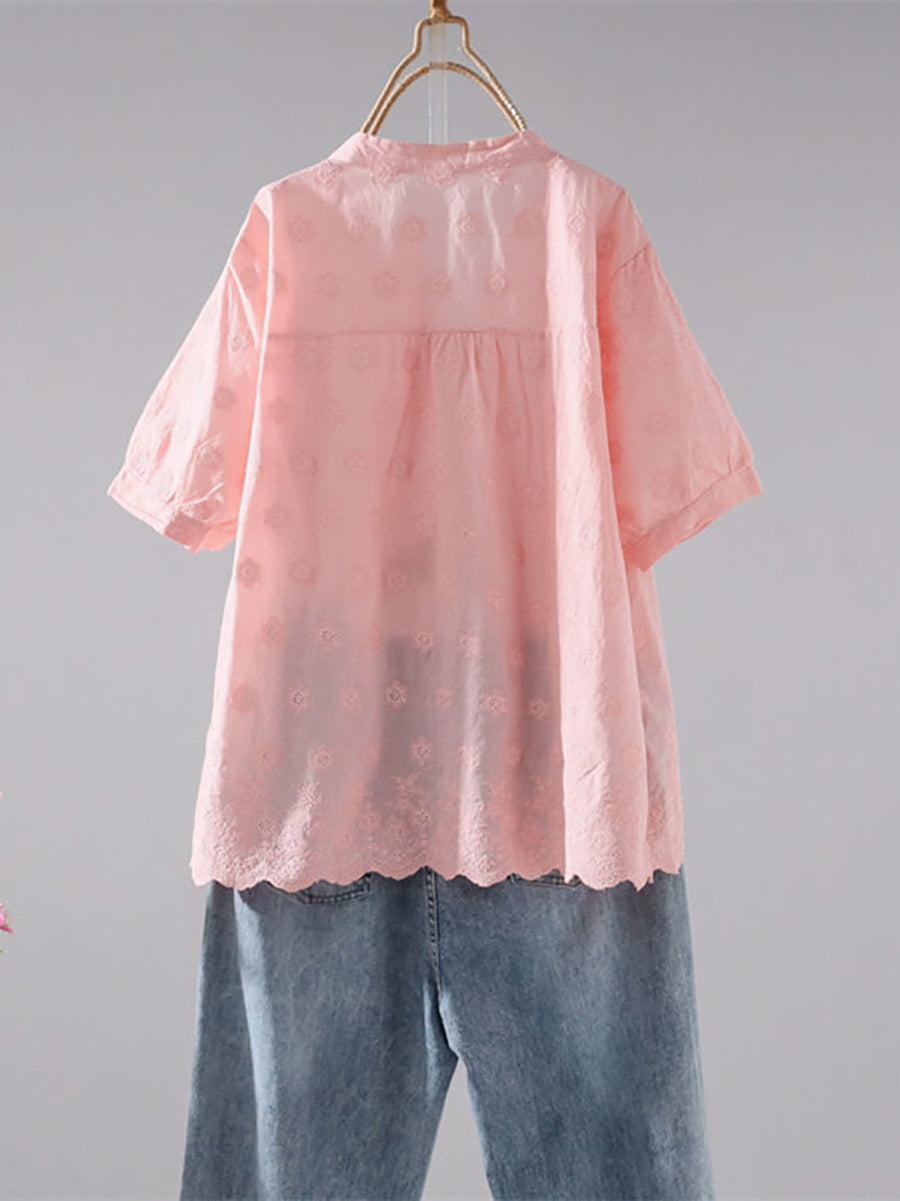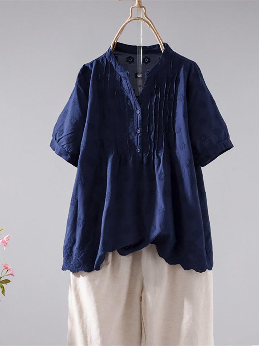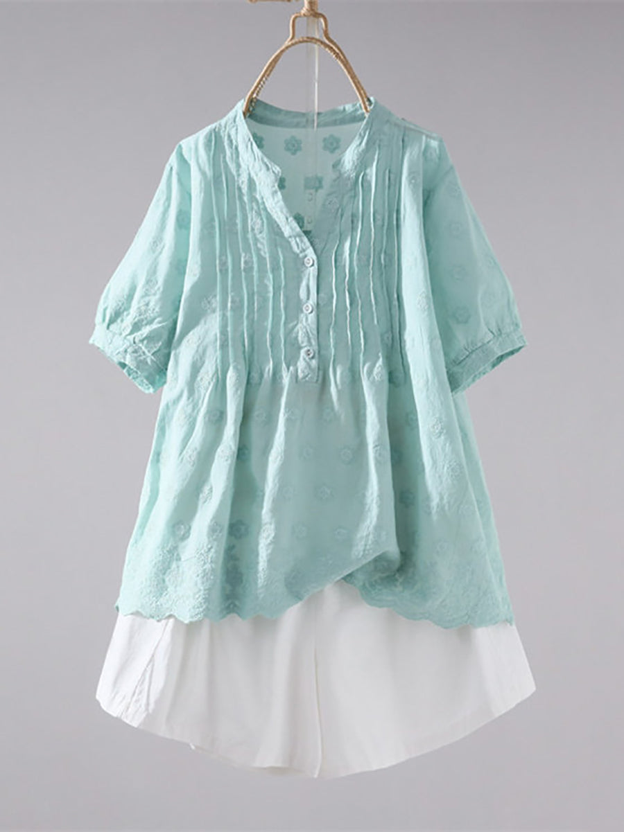 Camisa de verano para mujer con estampado artístico jacquard 100% algodón.