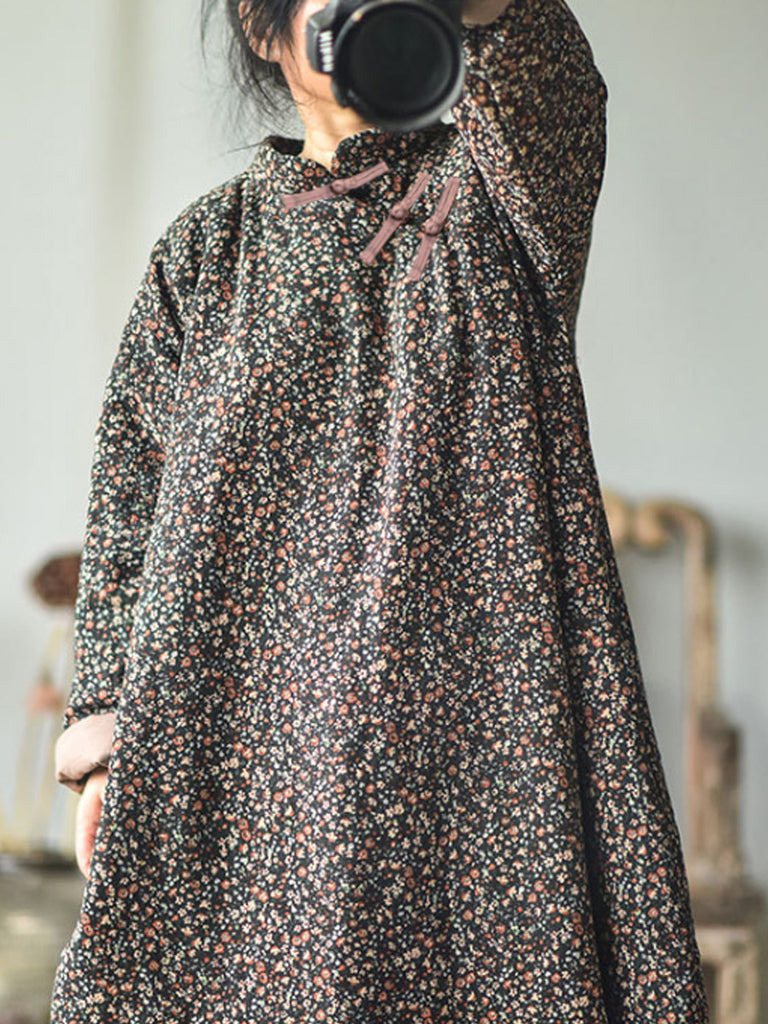 Tallas grandes - Vestido de algodón floral suelto para mujer de otoño