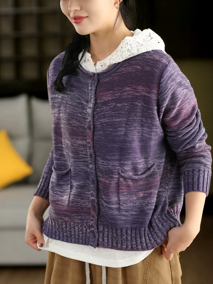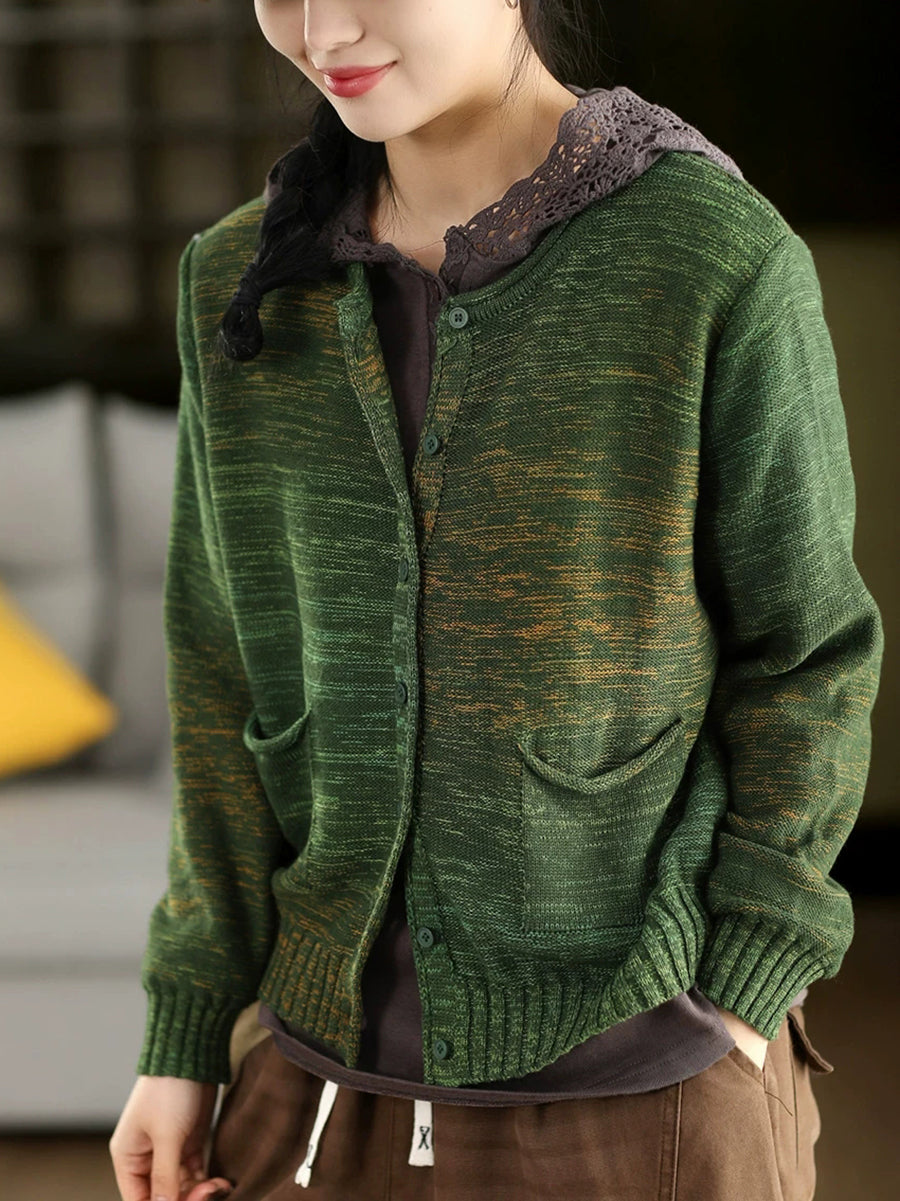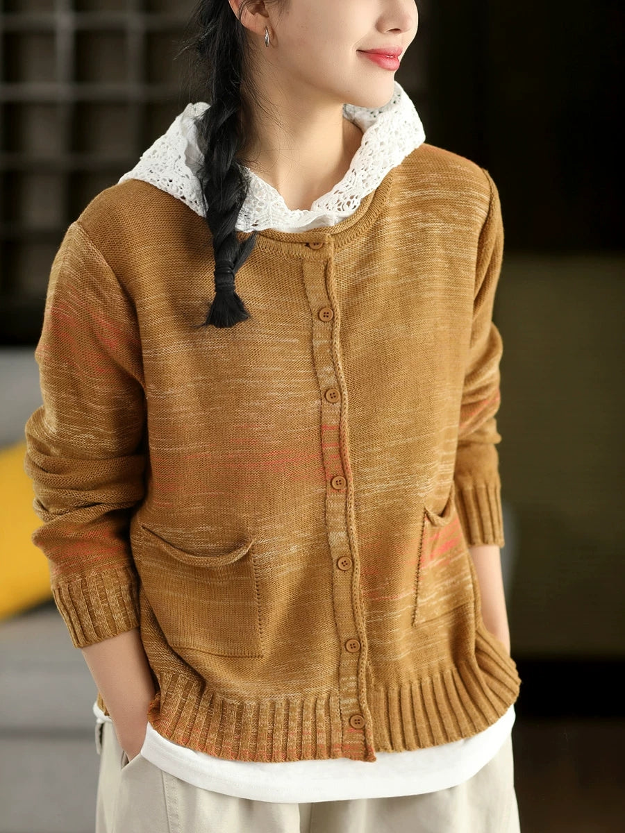 Suéter tipo cárdigan de primavera con cuello redondo y estilo artístico para mujer