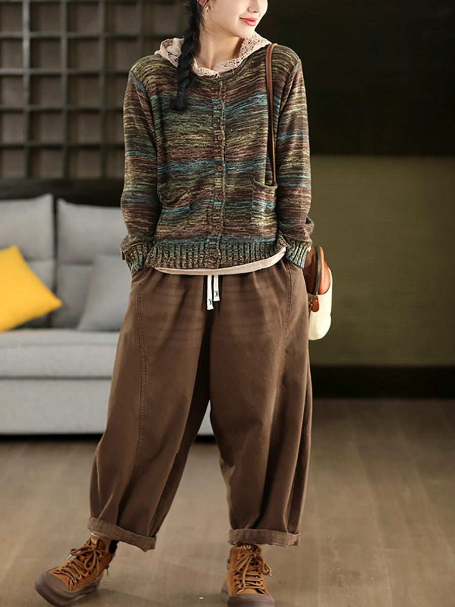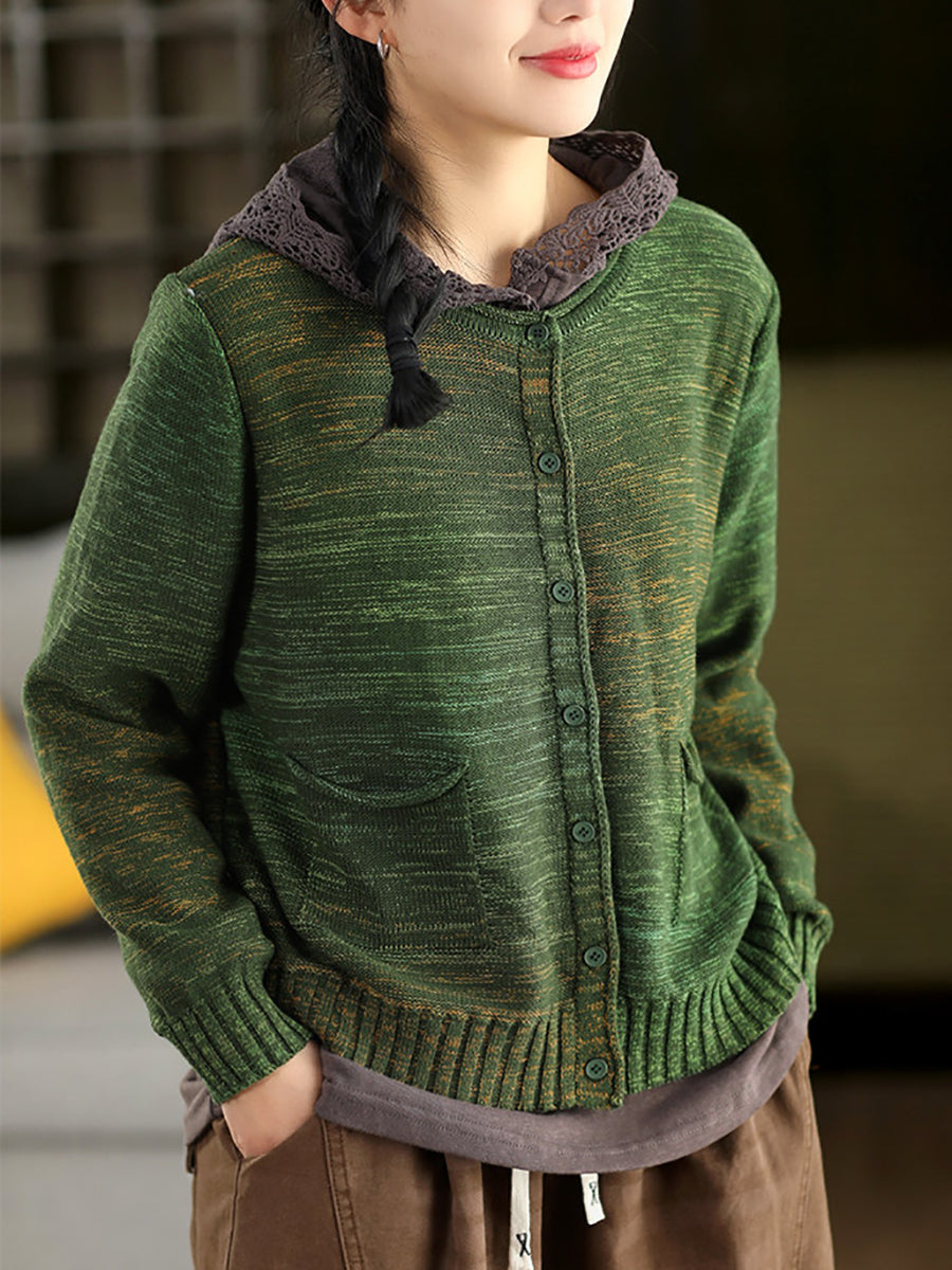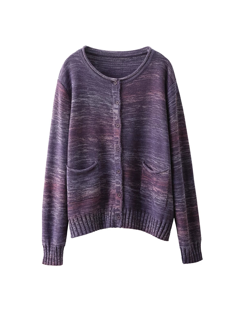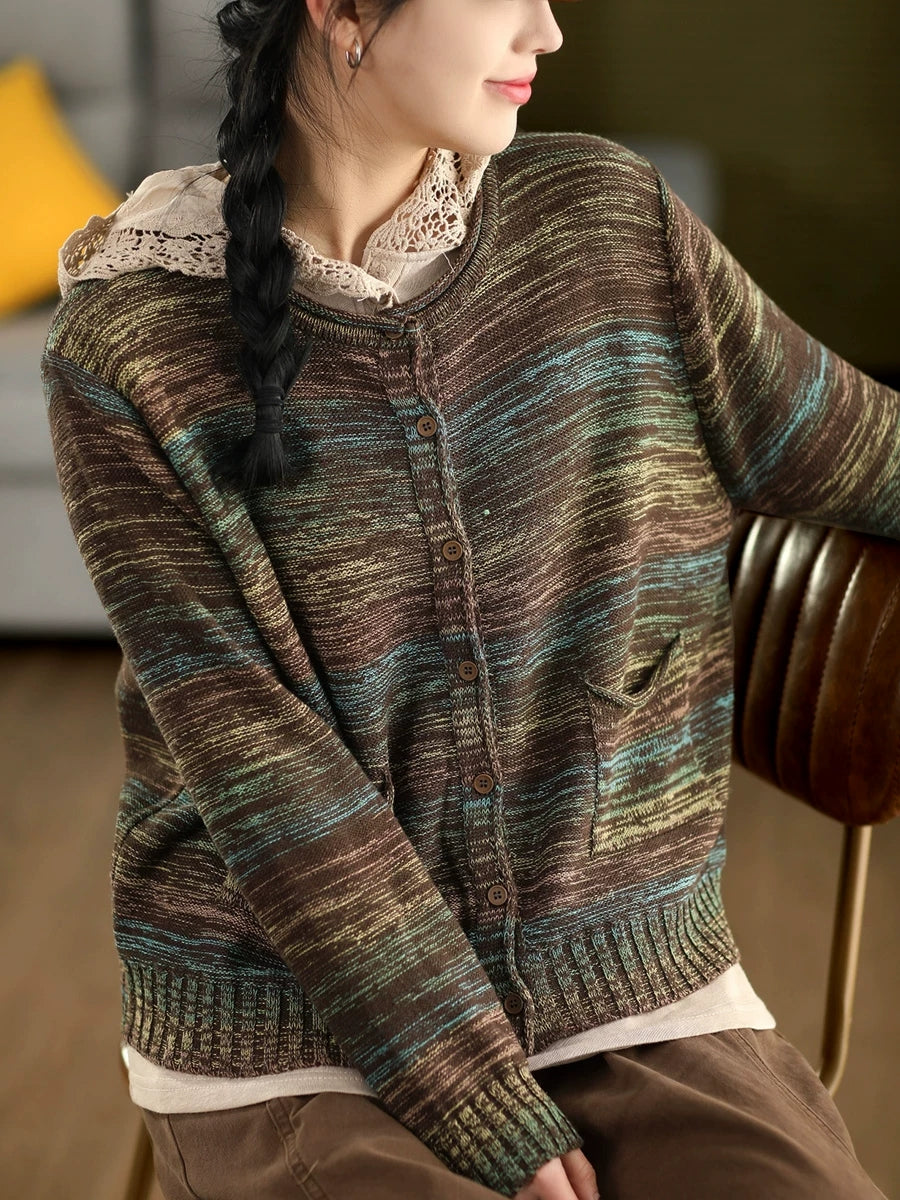 Suéter tipo cárdigan de primavera con cuello redondo y estilo artístico para mujer