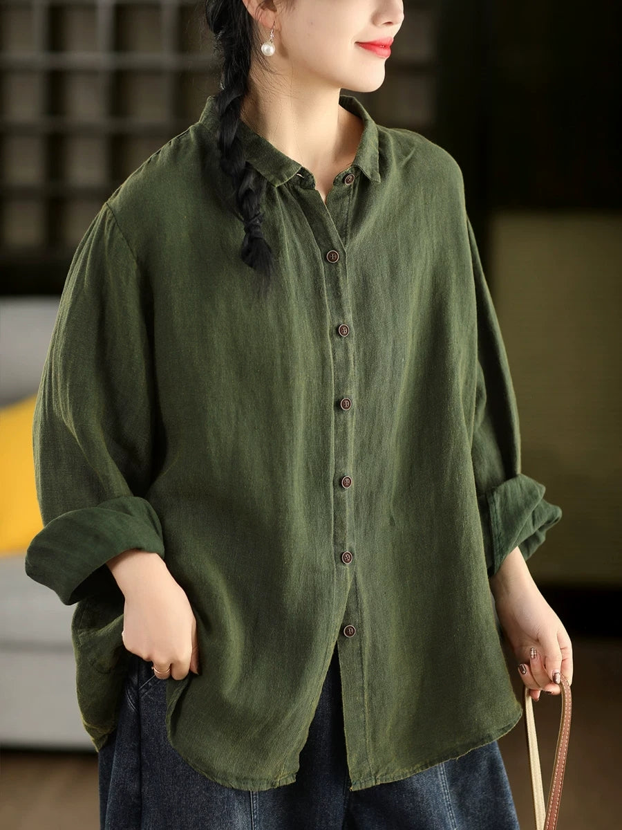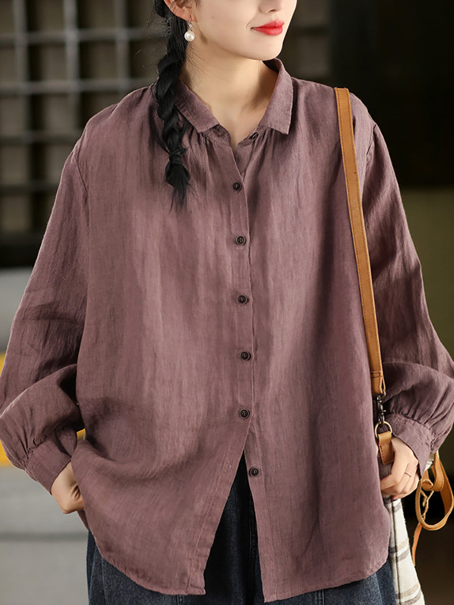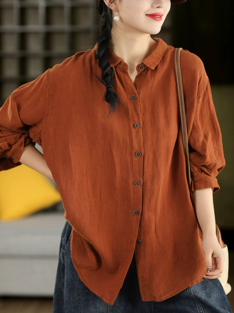 Camisa de cuello vuelto 100 % algodón de color puro y estilo artístico para mujer, primavera