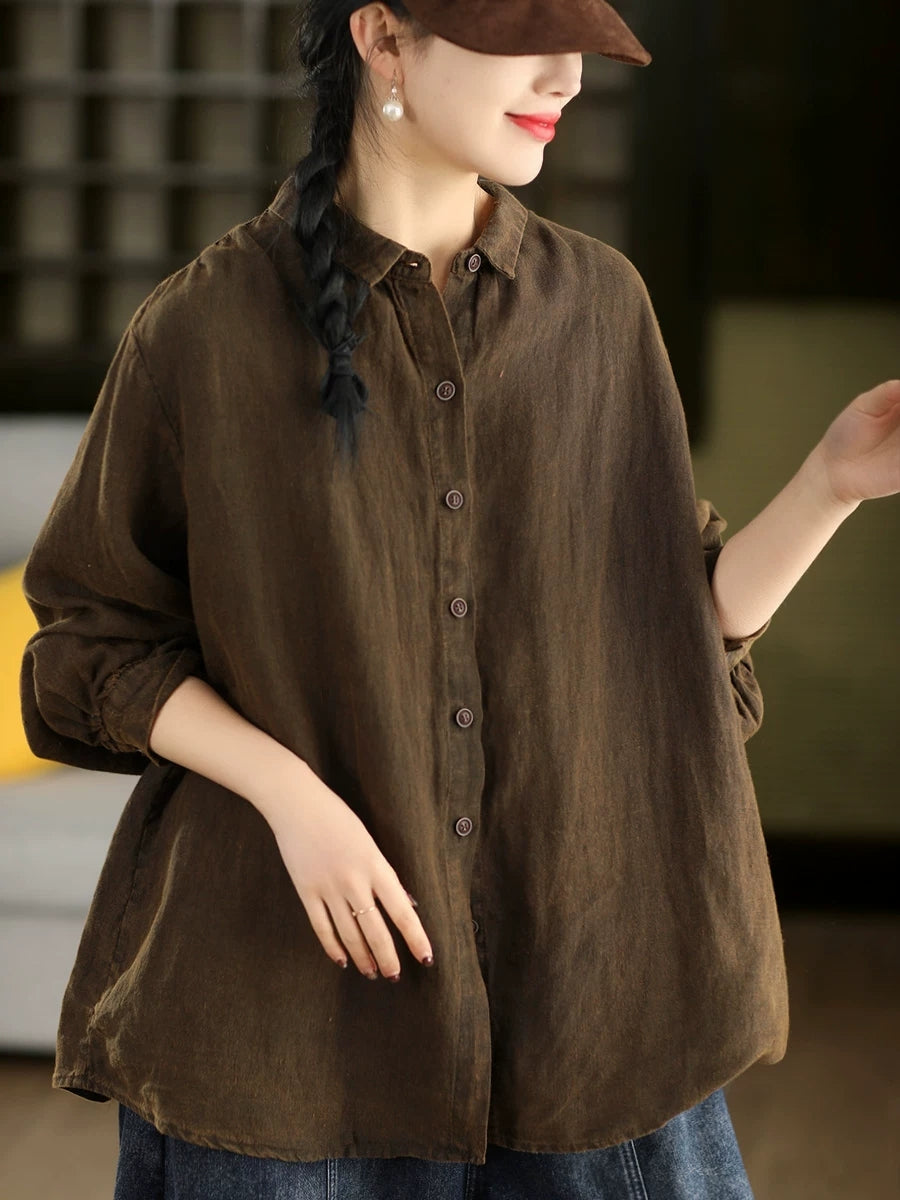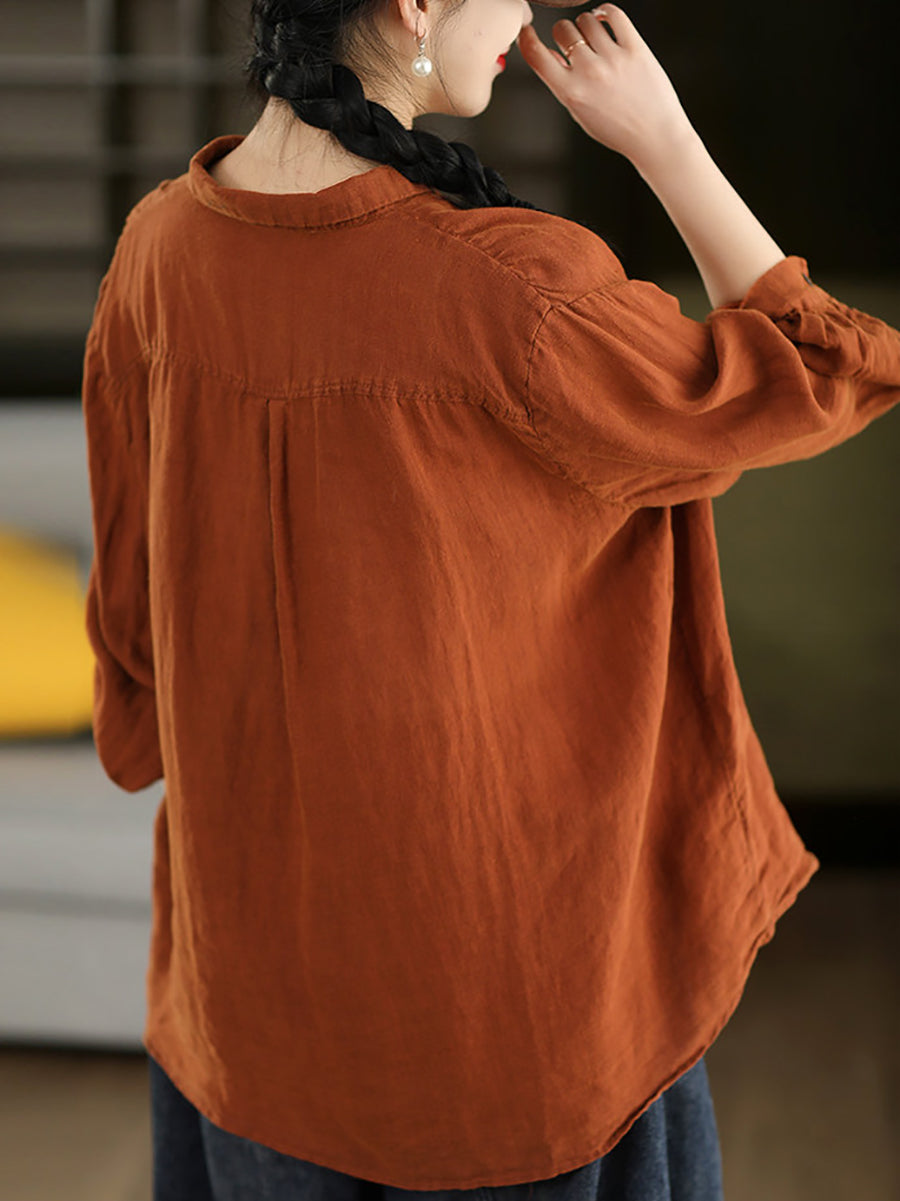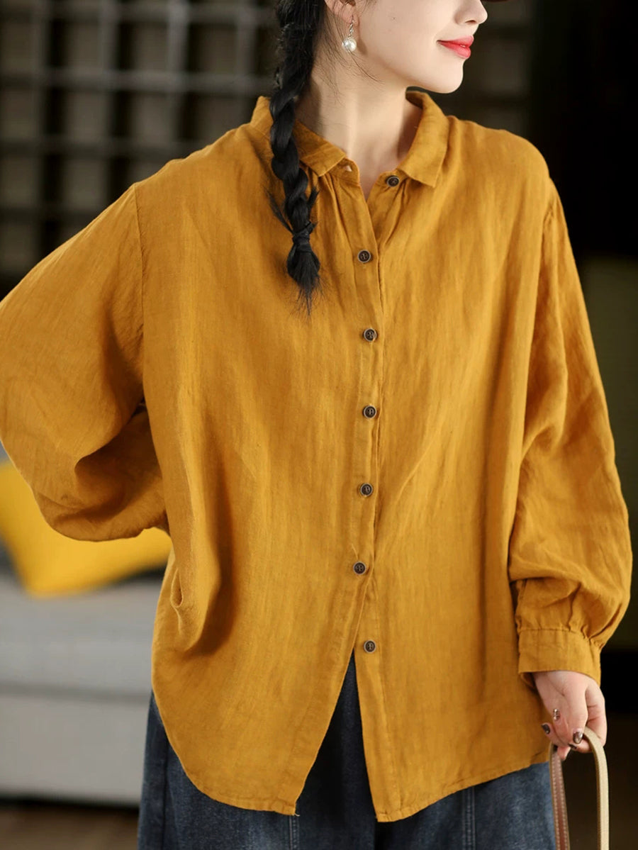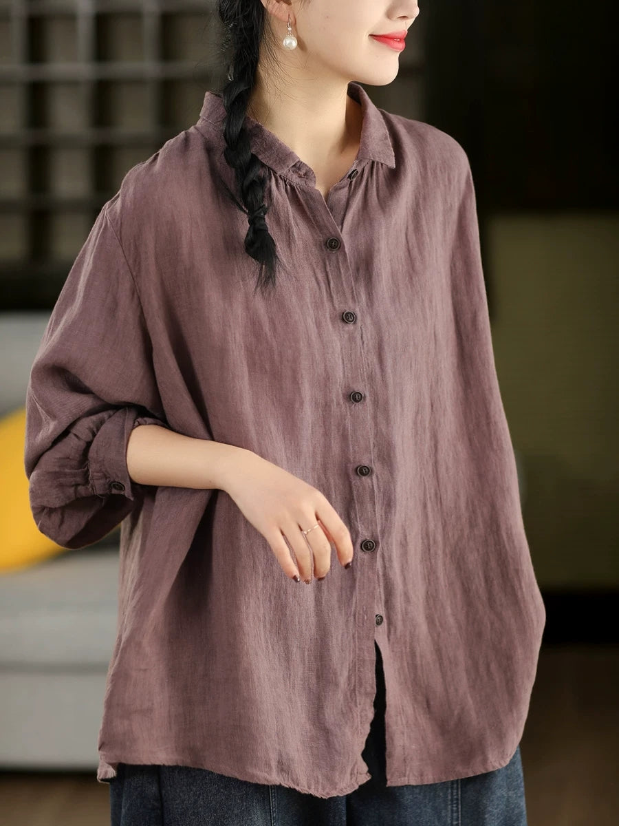 Camisa de cuello vuelto 100 % algodón de color puro y estilo artístico para mujer, primavera