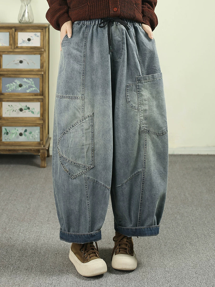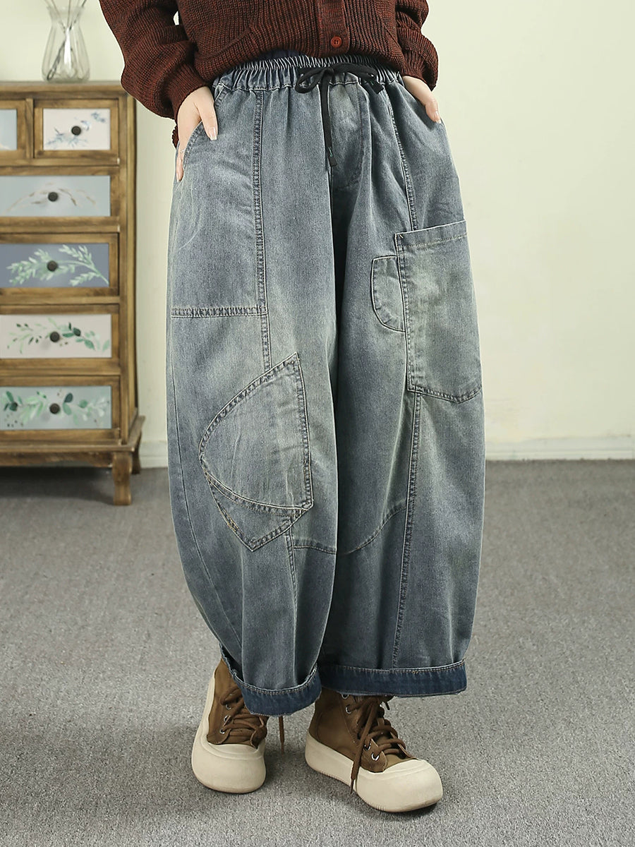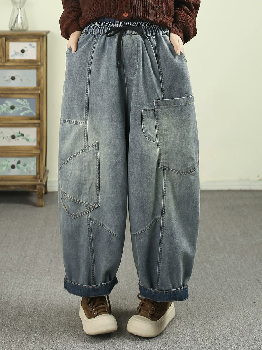 Pantalones harén de mezclilla vintage empalmados para mujer de primavera