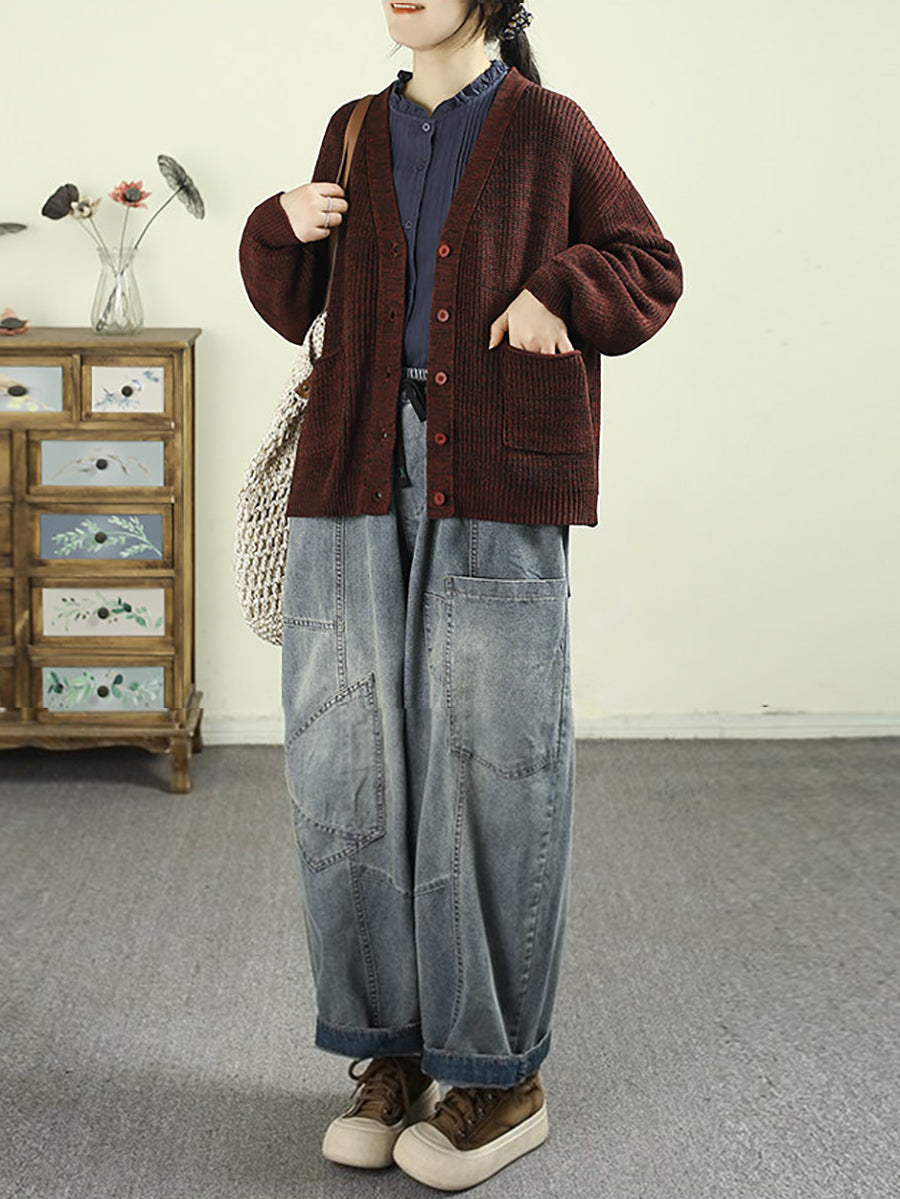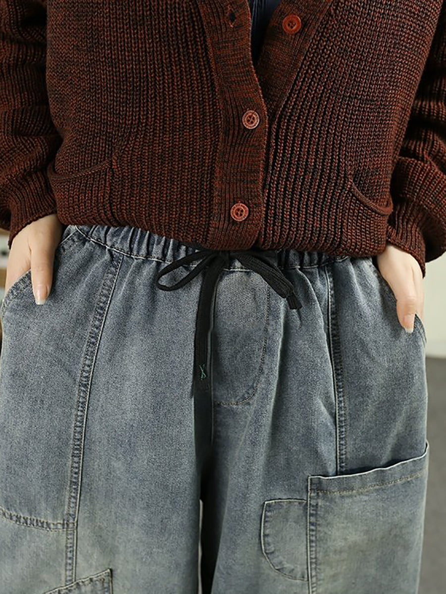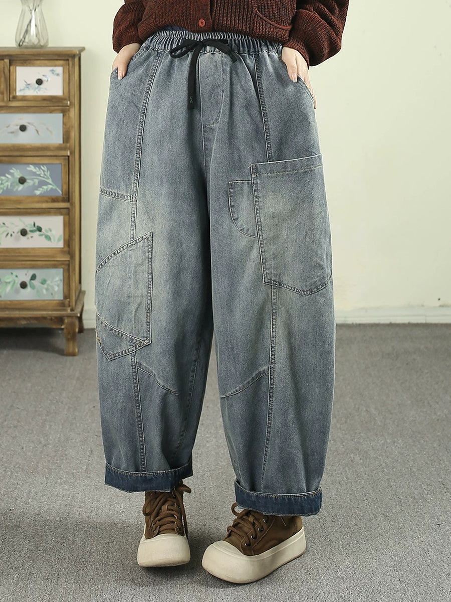 Pantalones harén de mezclilla vintage empalmados para mujer de primavera