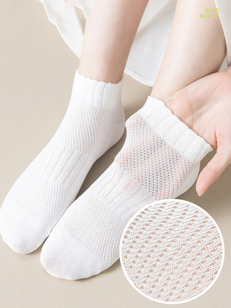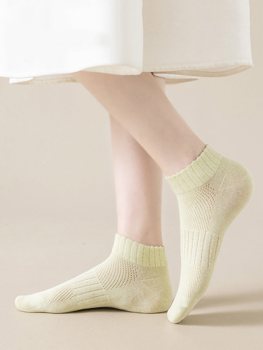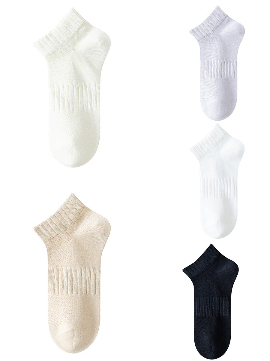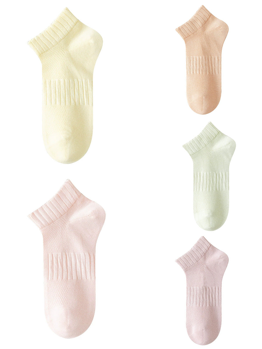 5 pares de calcetines cortos de verano para mujer de color puro