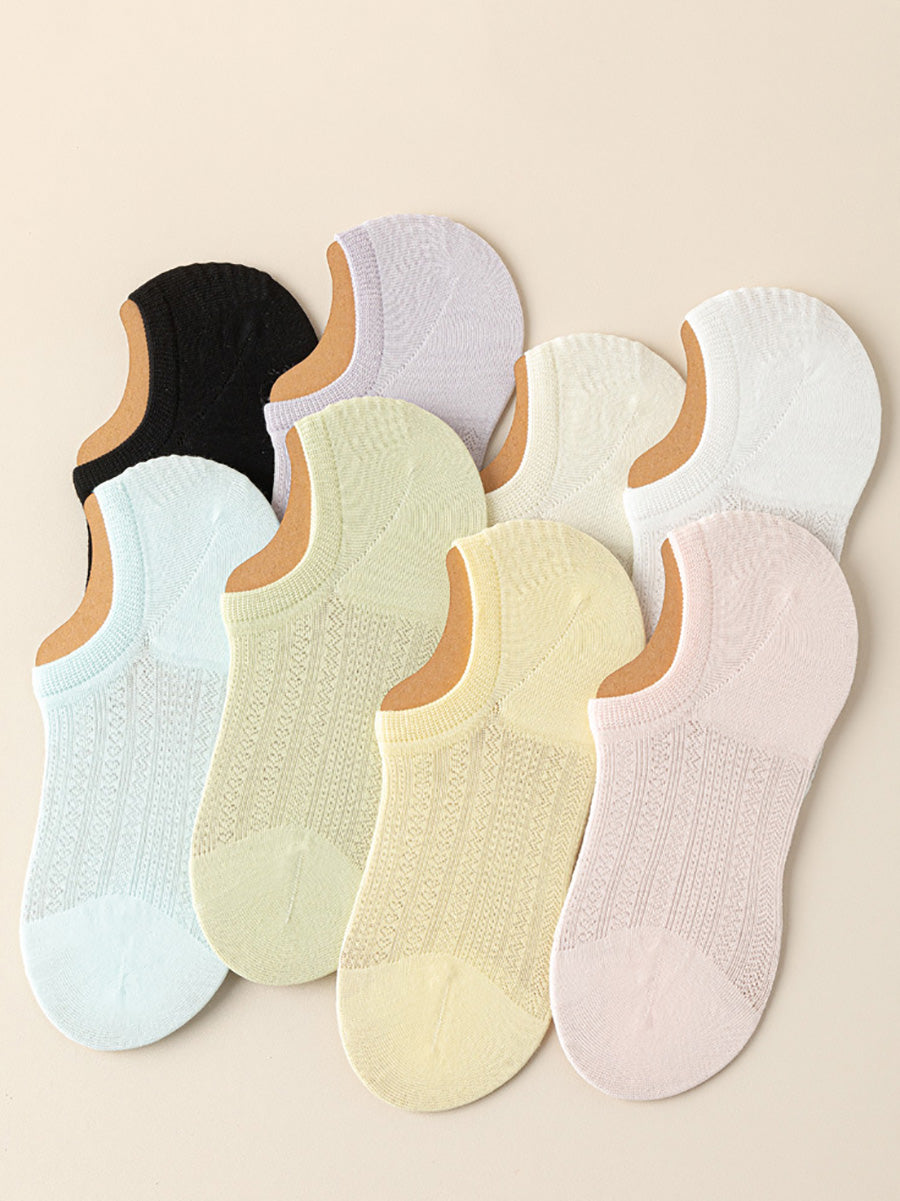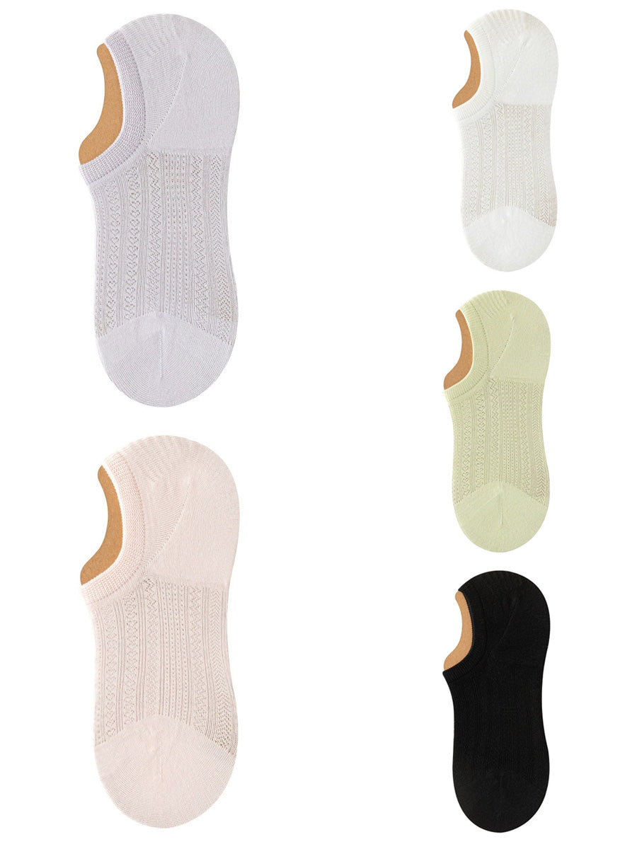 5 pares de calcetines cortos de verano para mujer de color puro