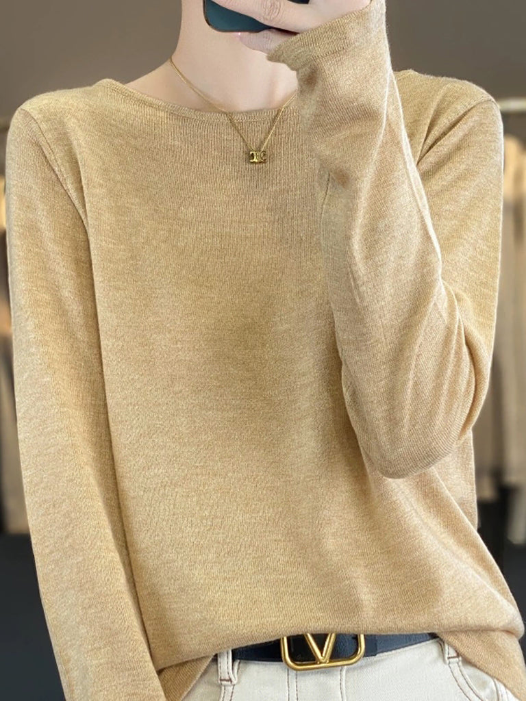 Suéter de punto con cuello redondo y color puro informal de otoño para mujer