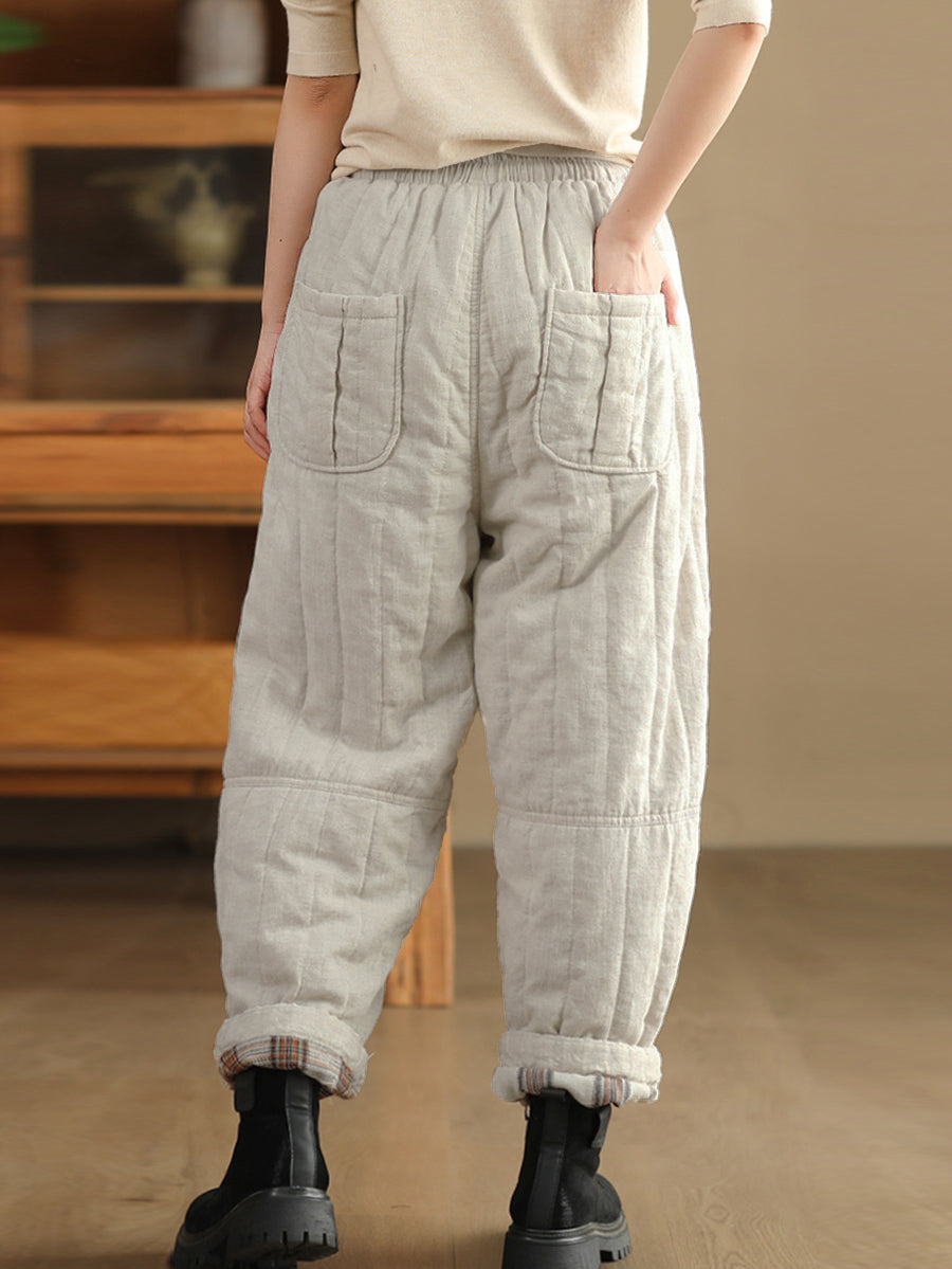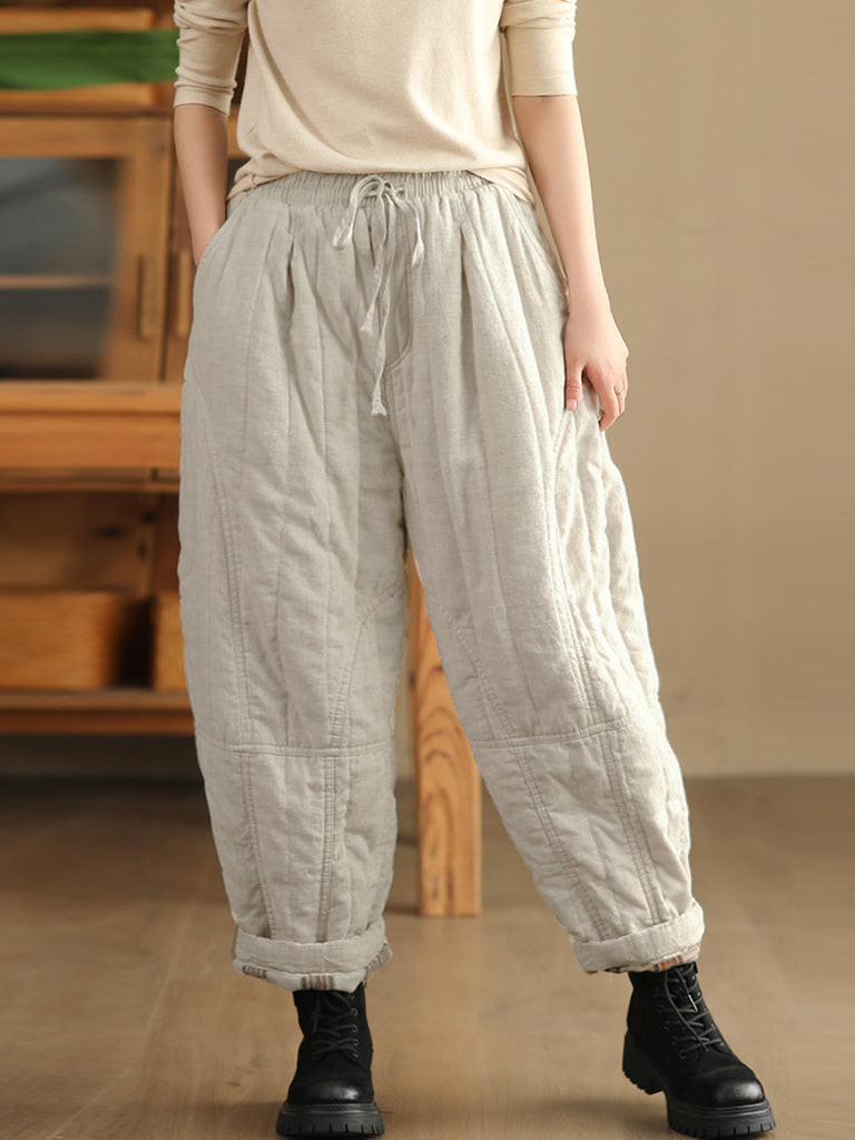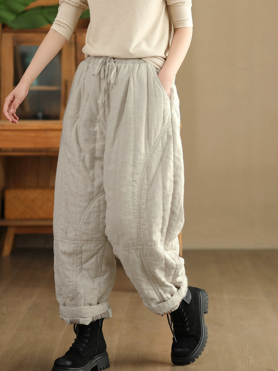 Pantalones Harem Acolchados de Lino 100% de Color Puro para Mujer de Otoño
