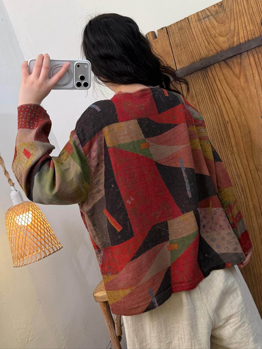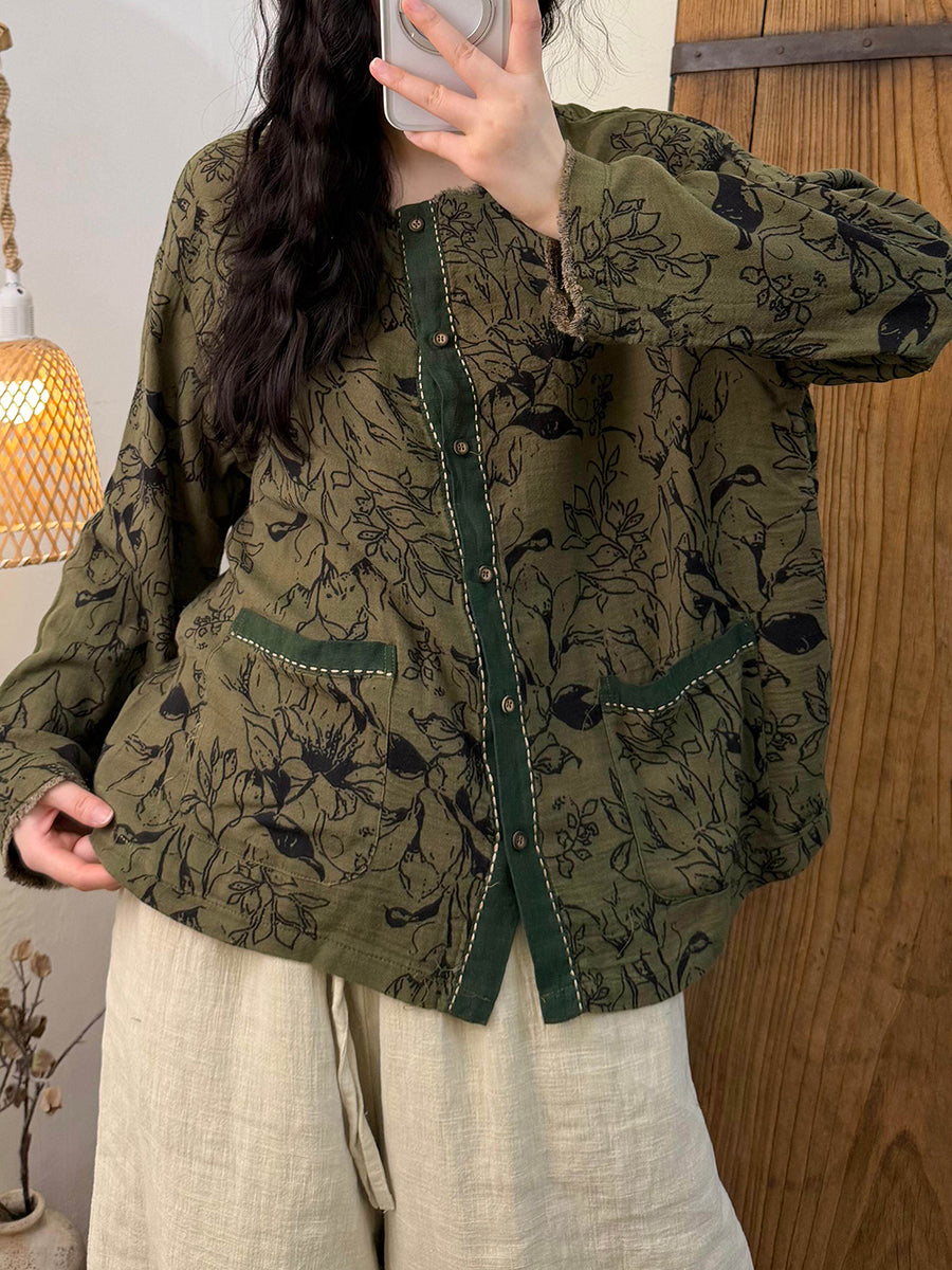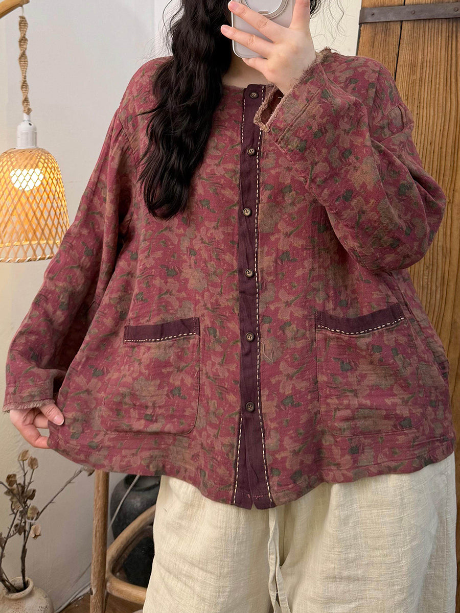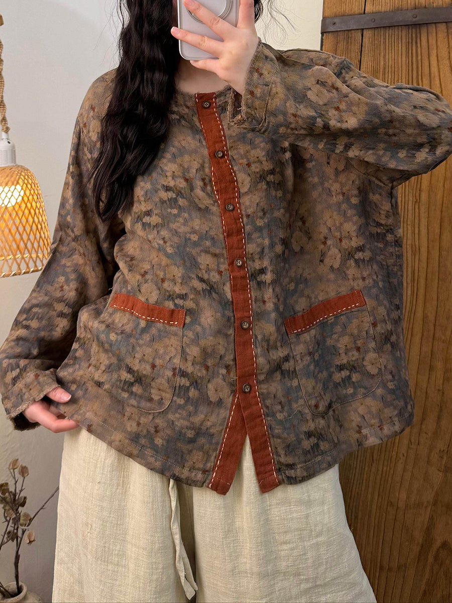 Camisa vintage de cuello redondo con flores de primavera para mujer
