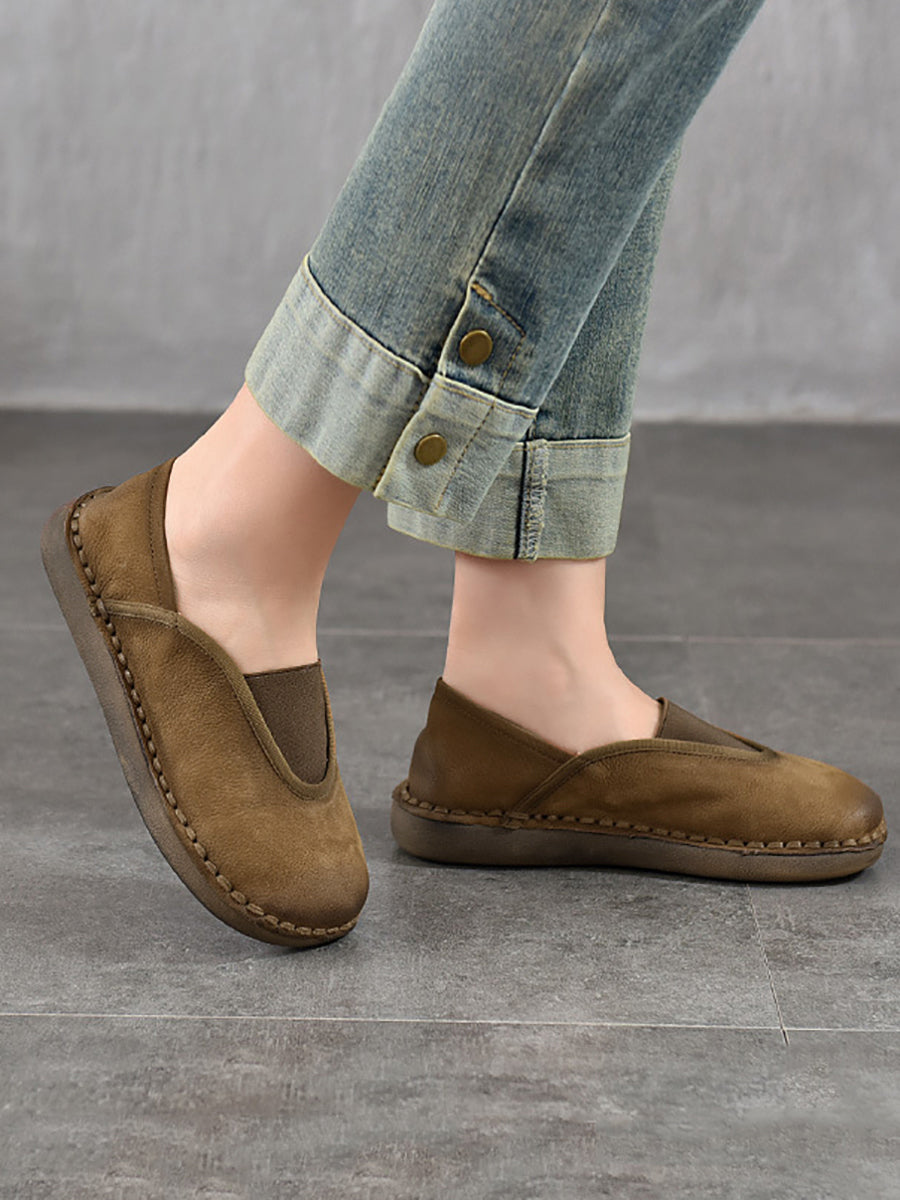Zapatos planos vintage de piel auténtica con empalmes para mujer