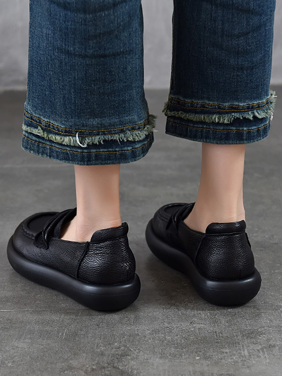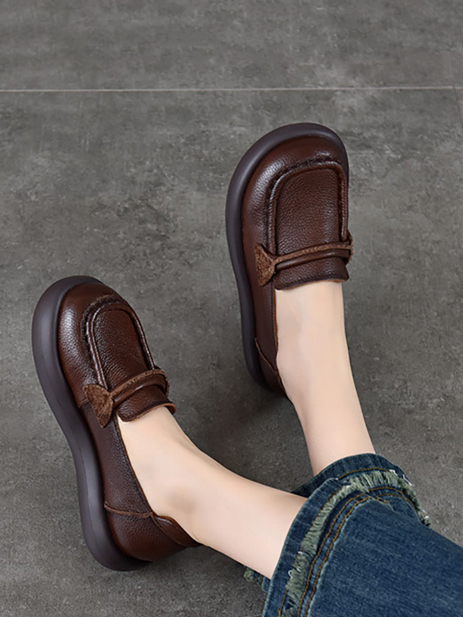 Zapatos planos casuales de piel auténtica para mujer, de primavera