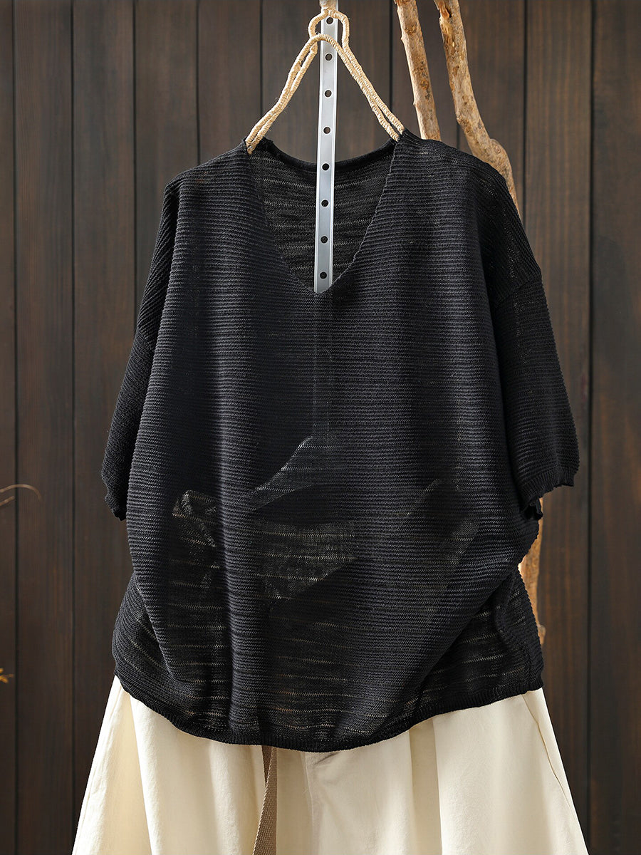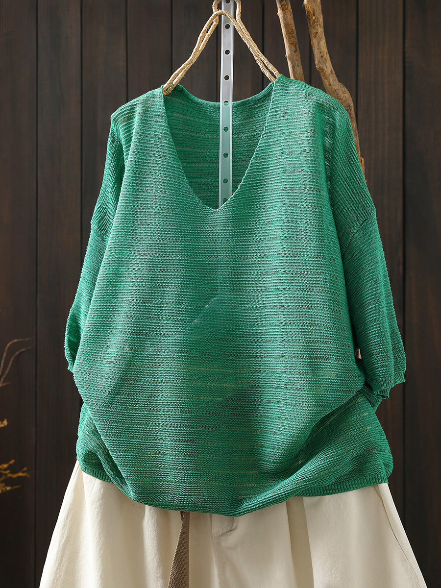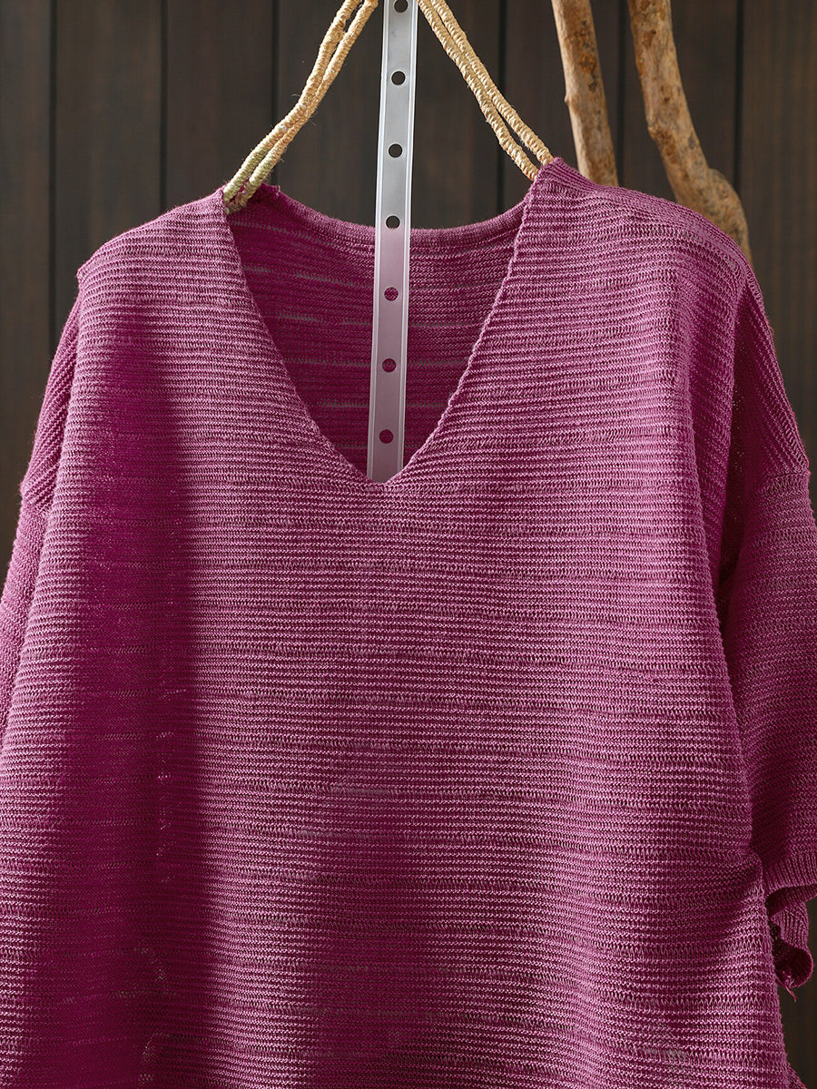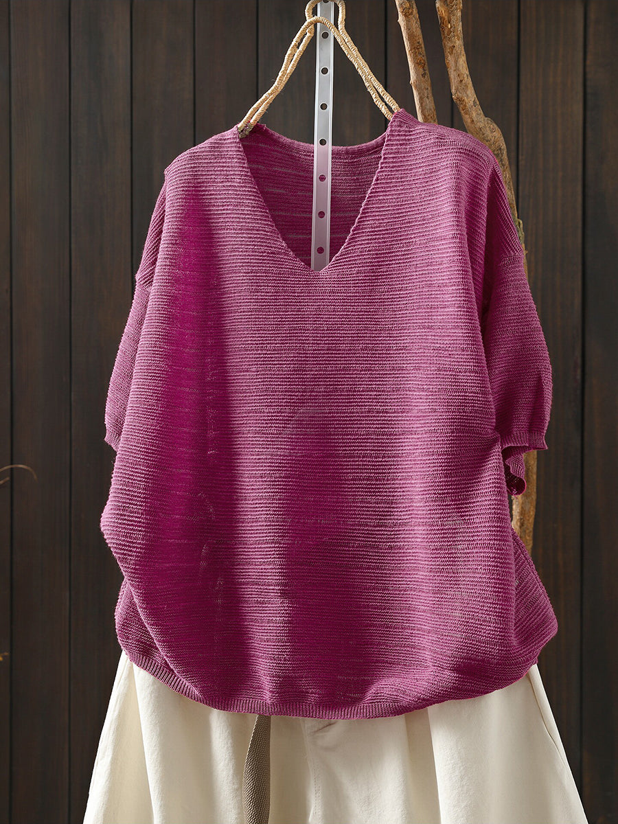 Camiseta de mujer informal de verano de algodón de color liso con cuello en V