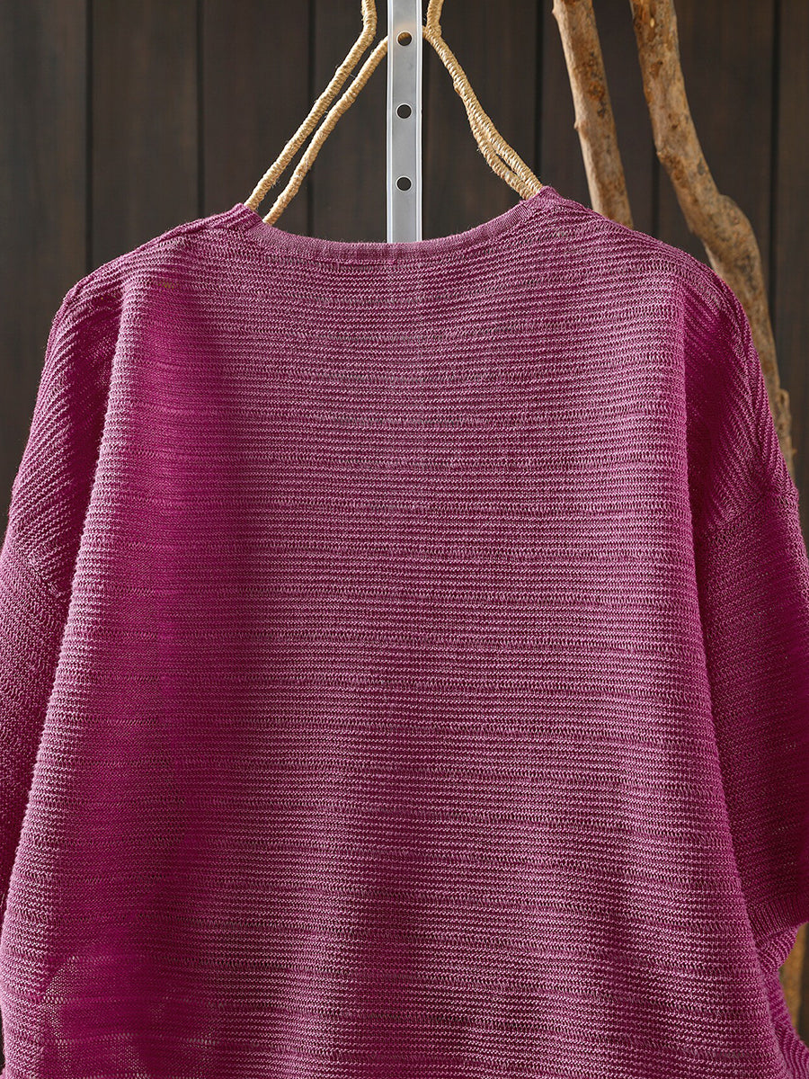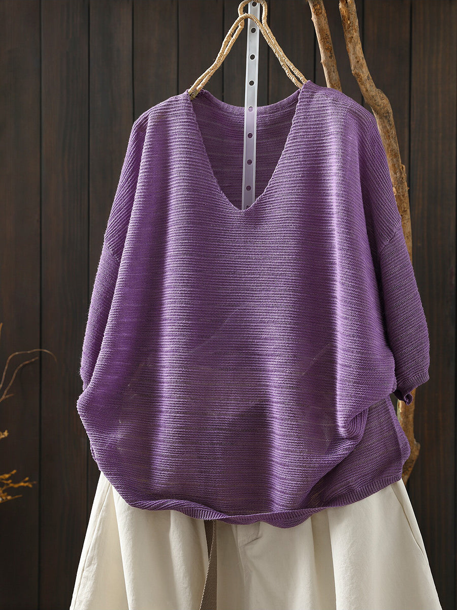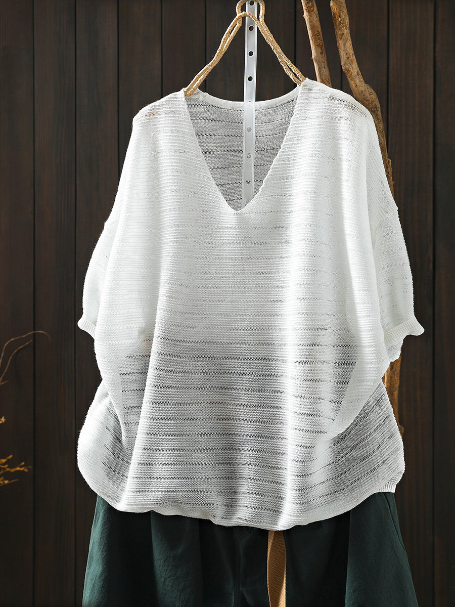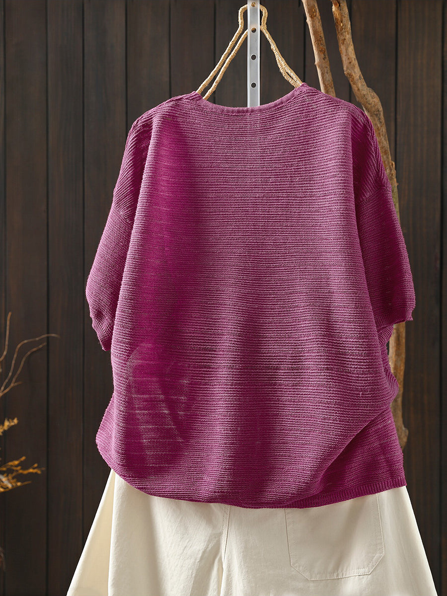 Camiseta de mujer informal de verano de algodón de color liso con cuello en V