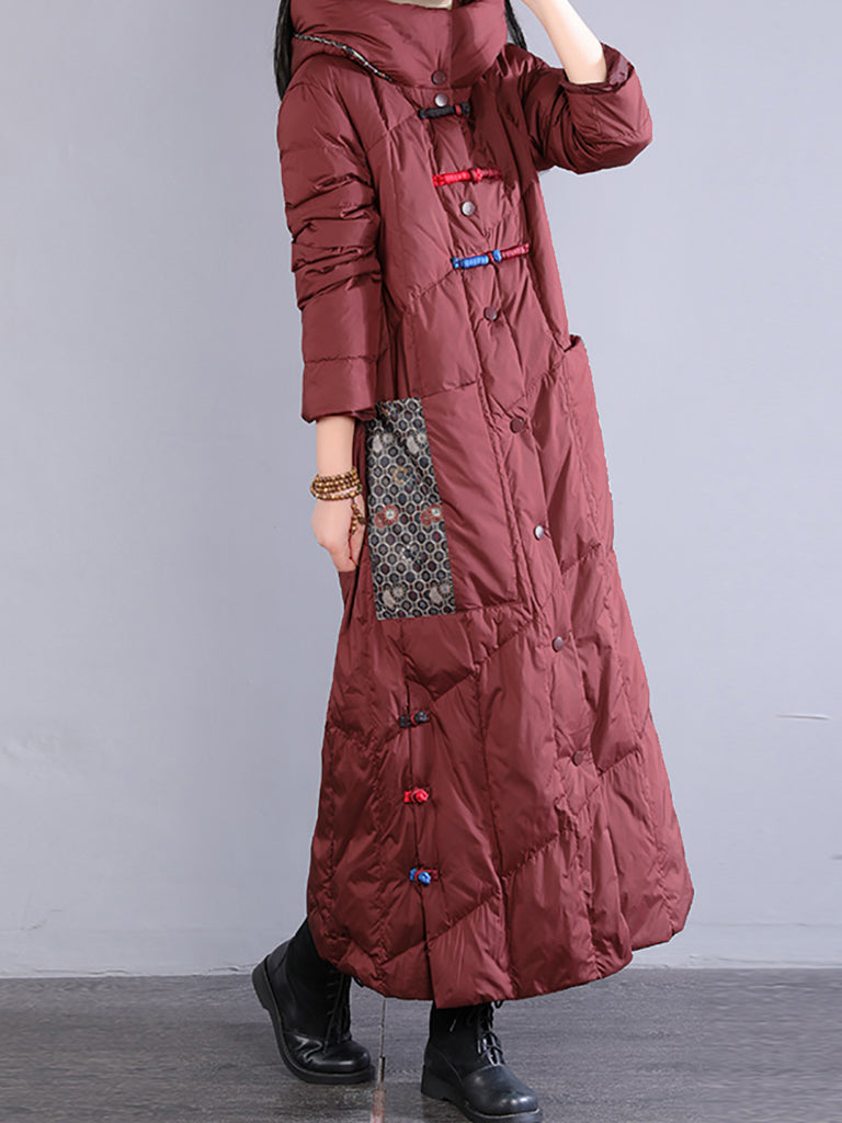 Abrigo largo acolchado de invierno retro bordado para mujer