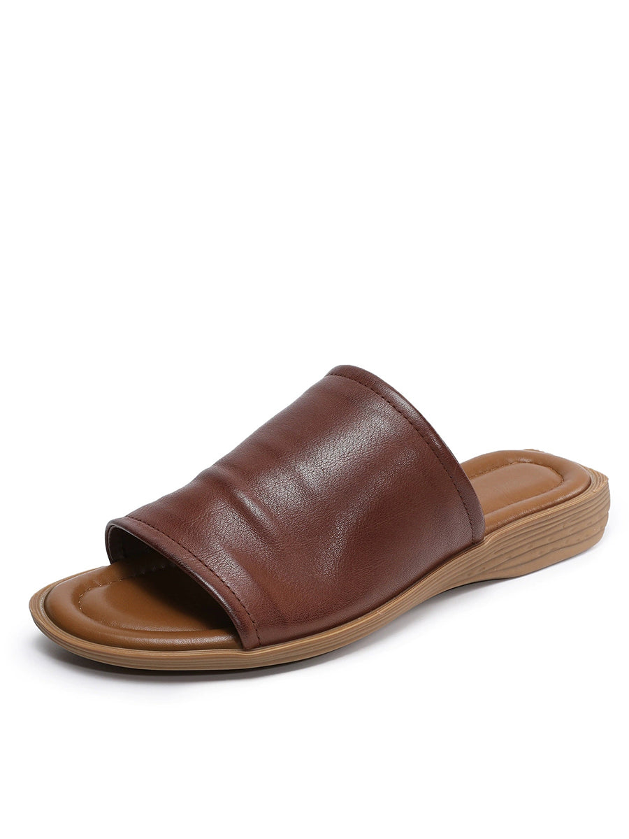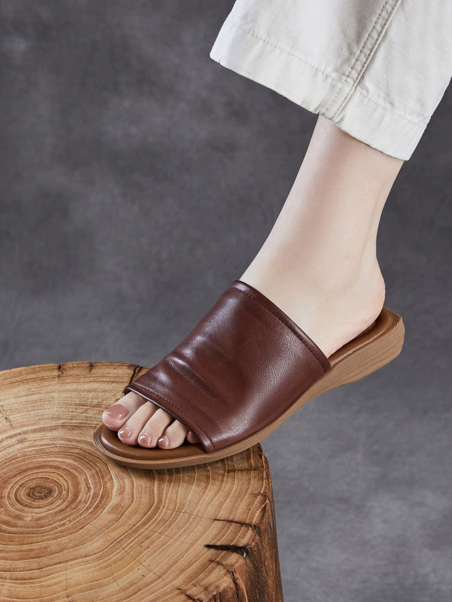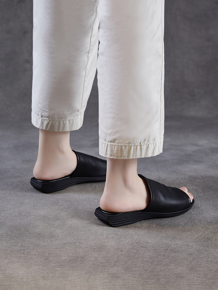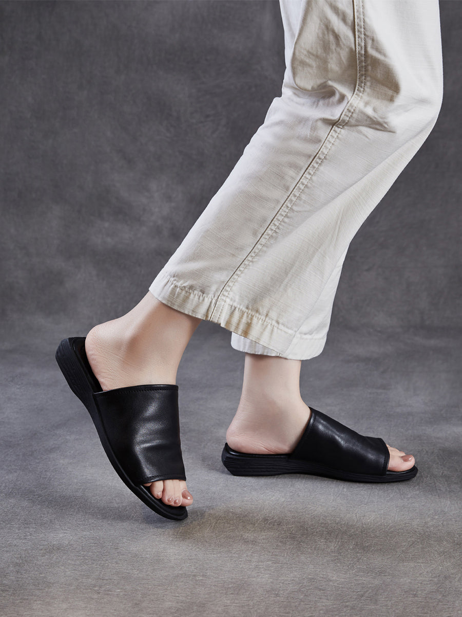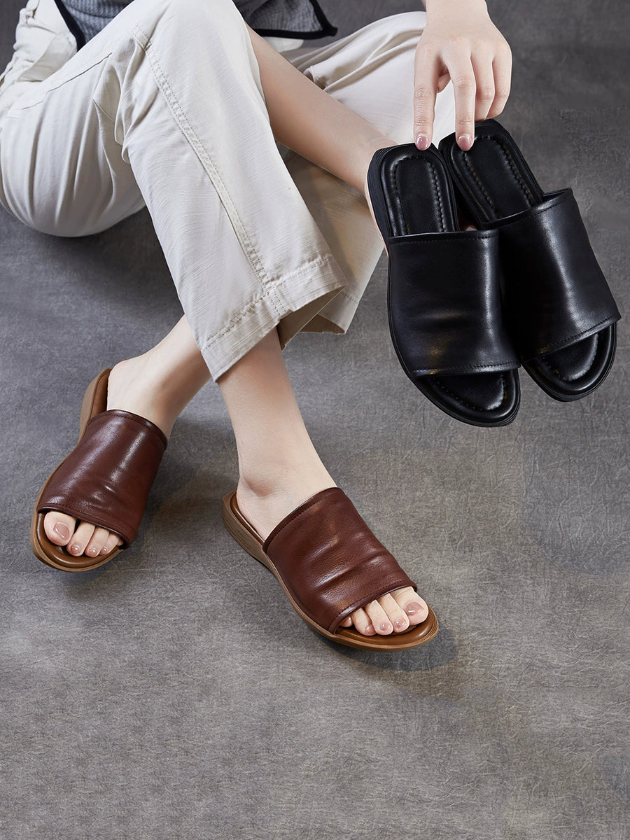 Pantuflas de verano para mujer de piel auténtica para exteriores.