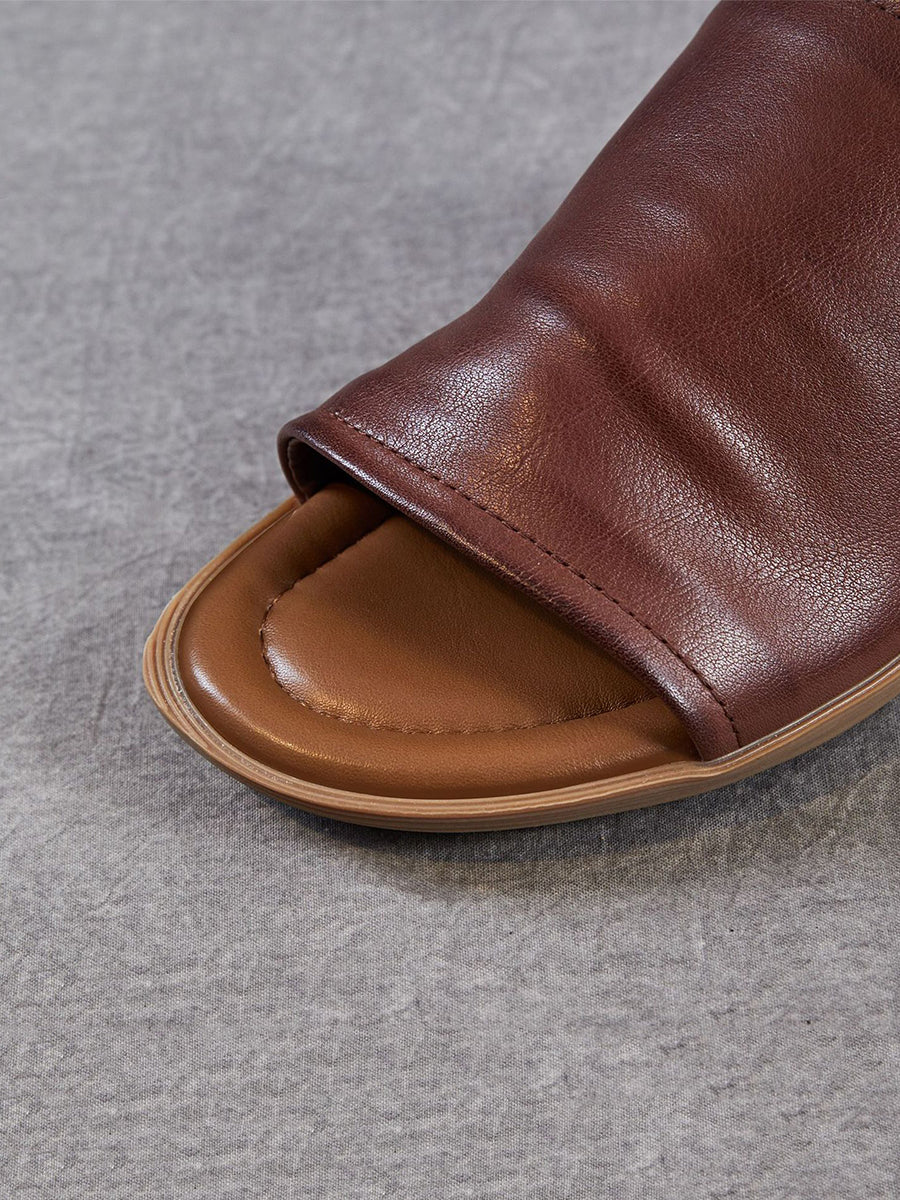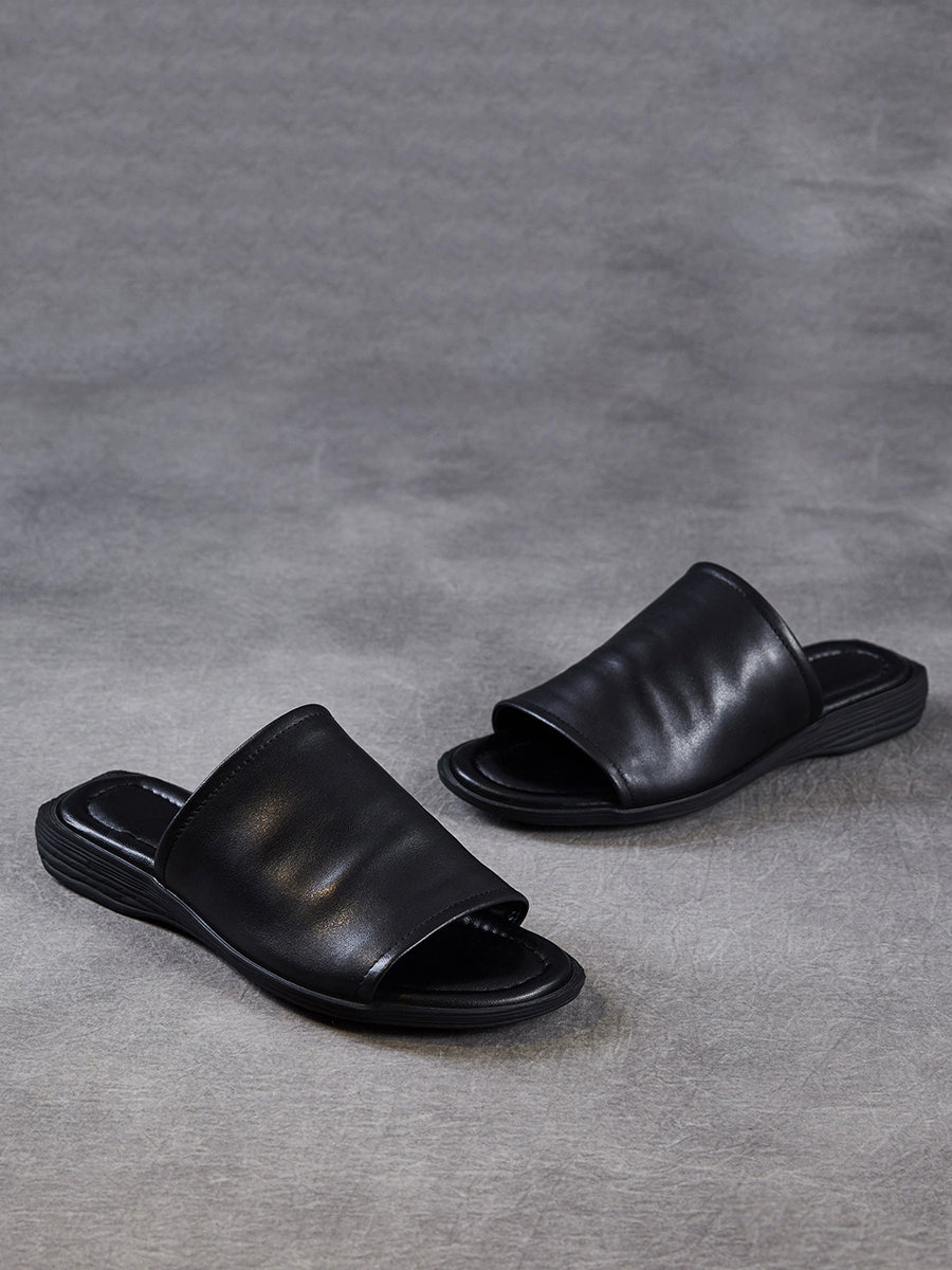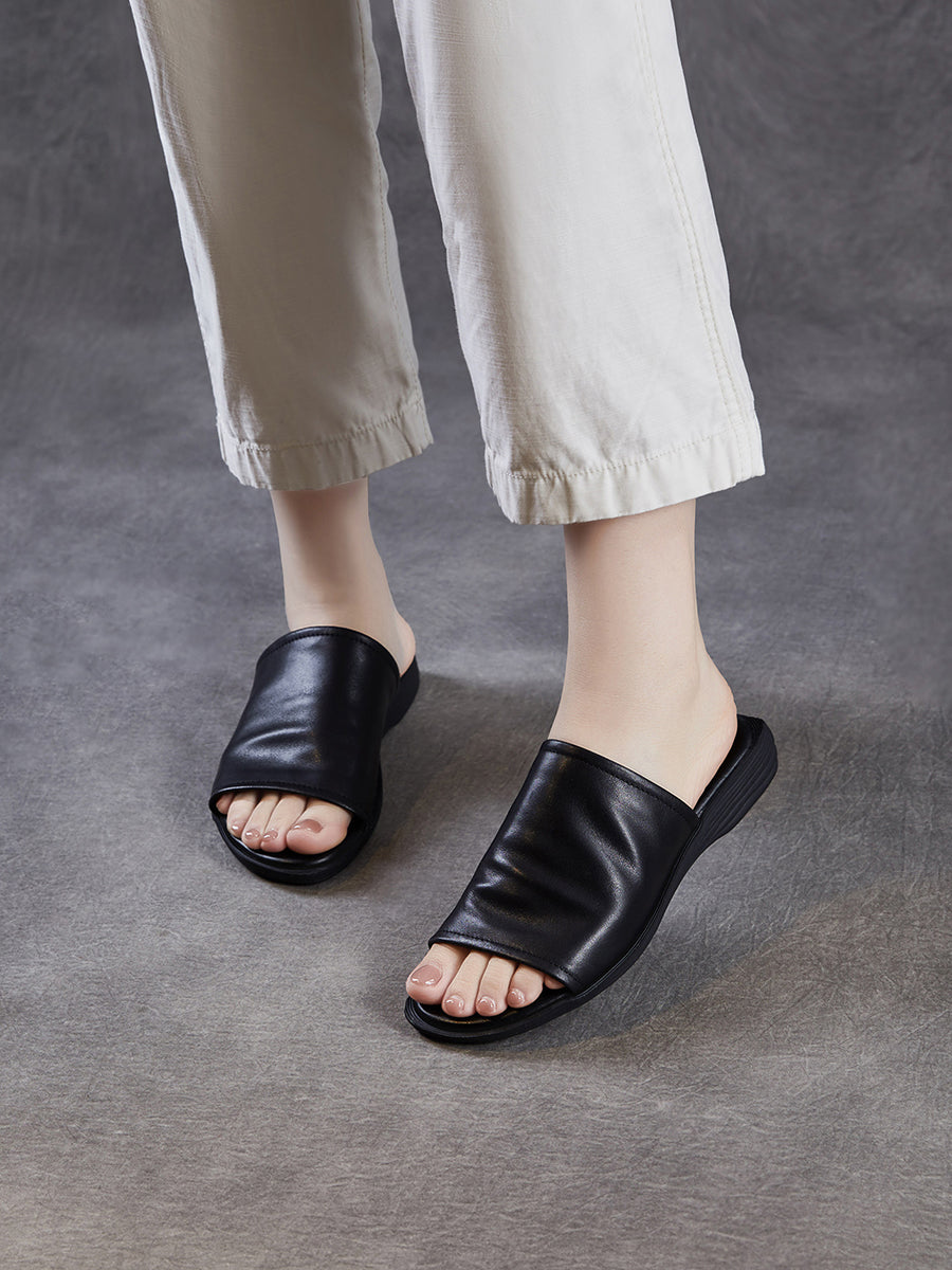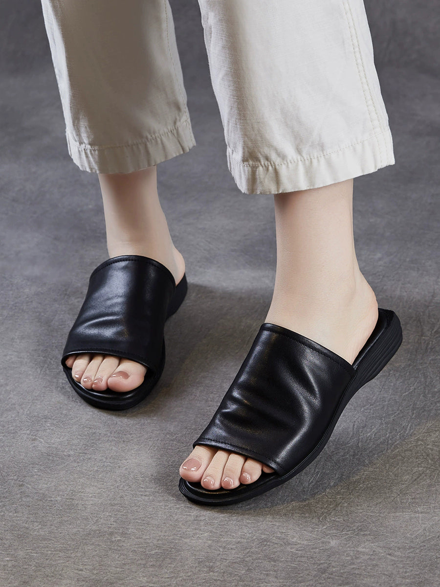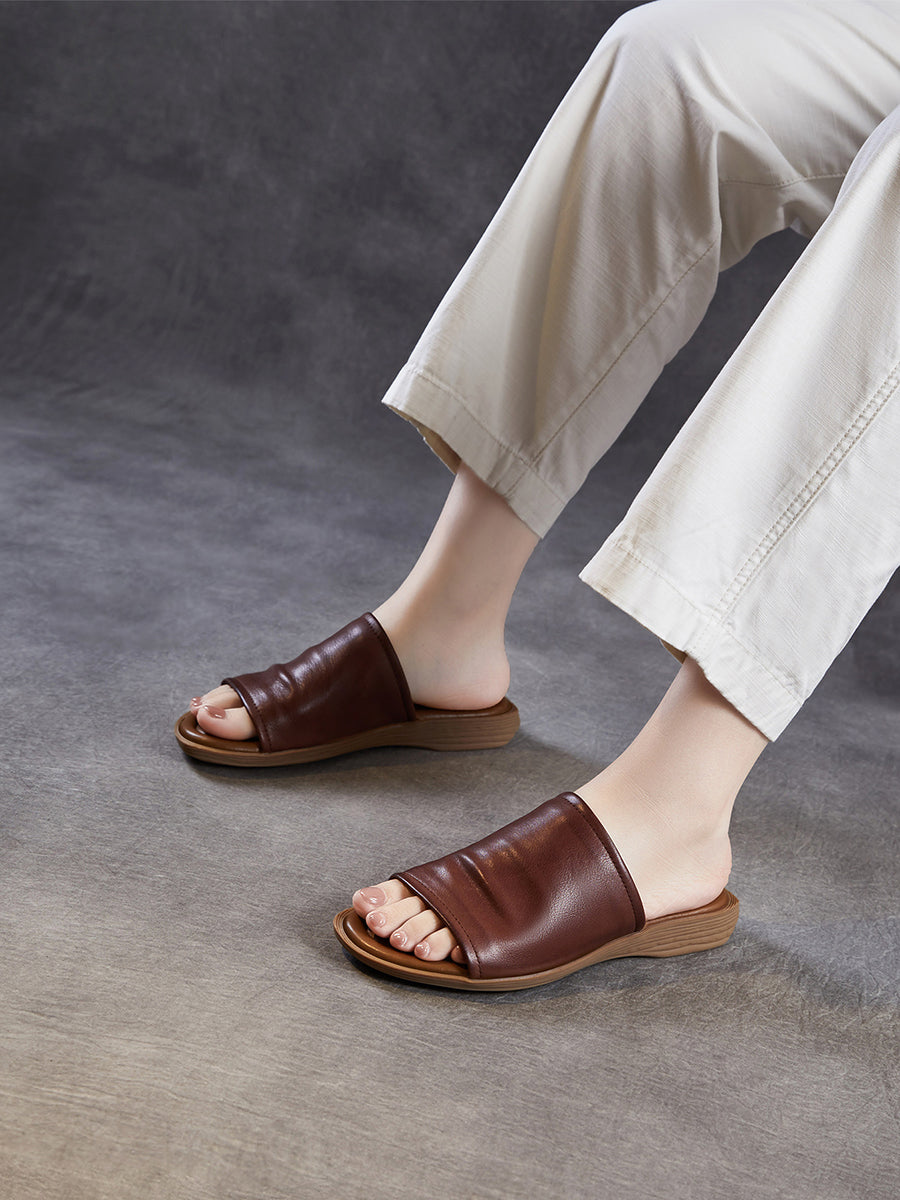 Pantuflas de verano para mujer de piel auténtica para exteriores.
