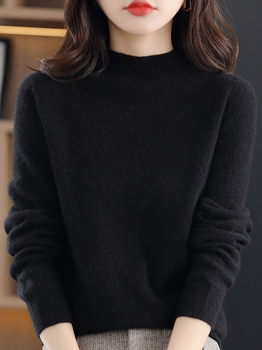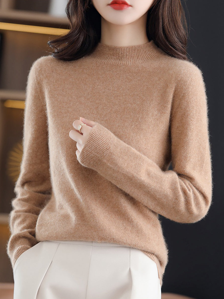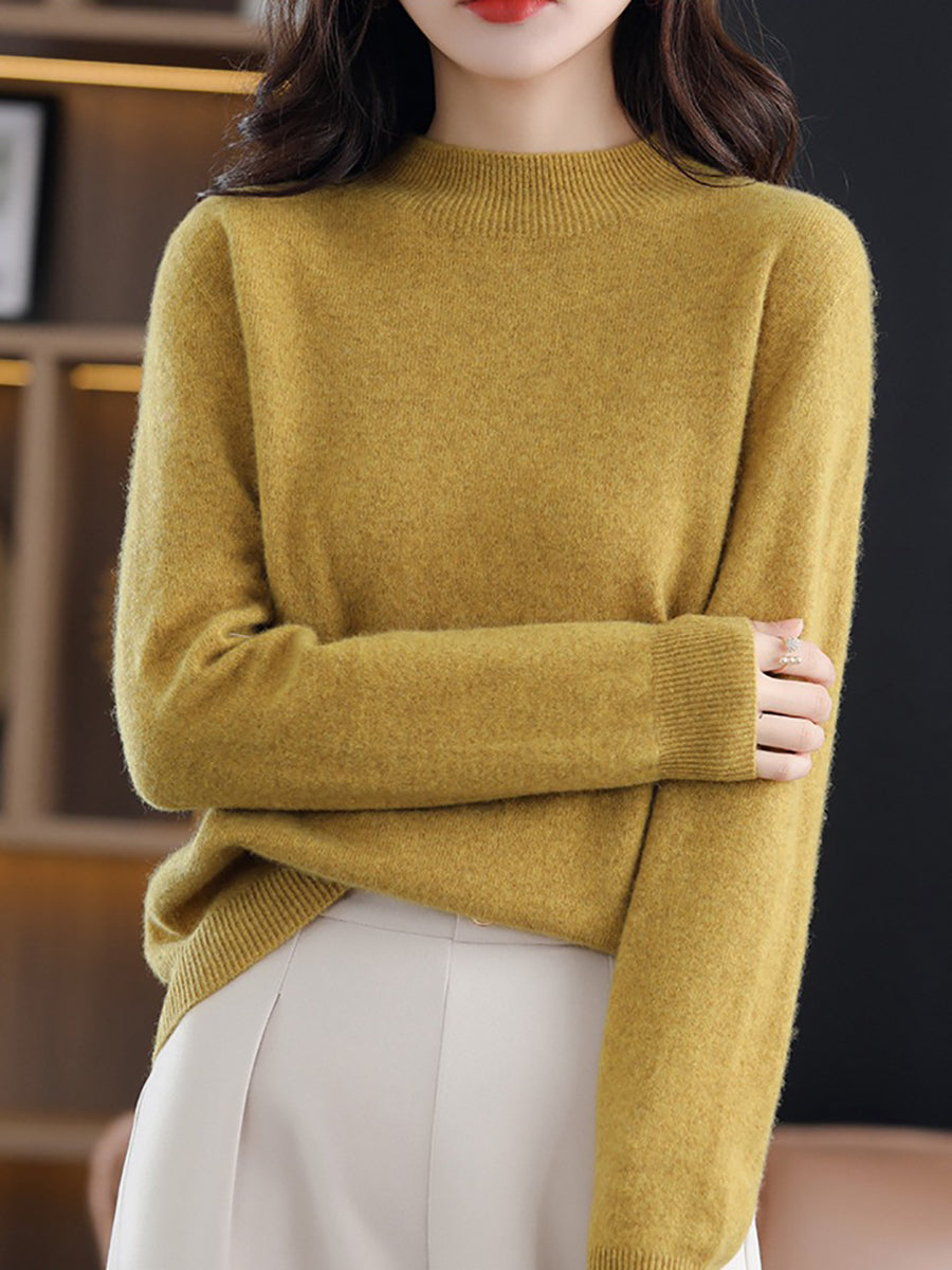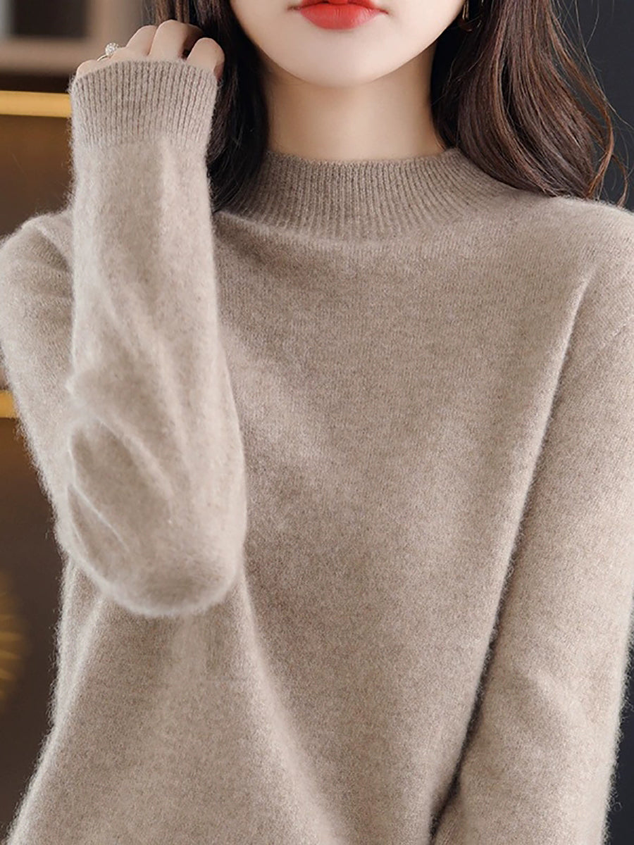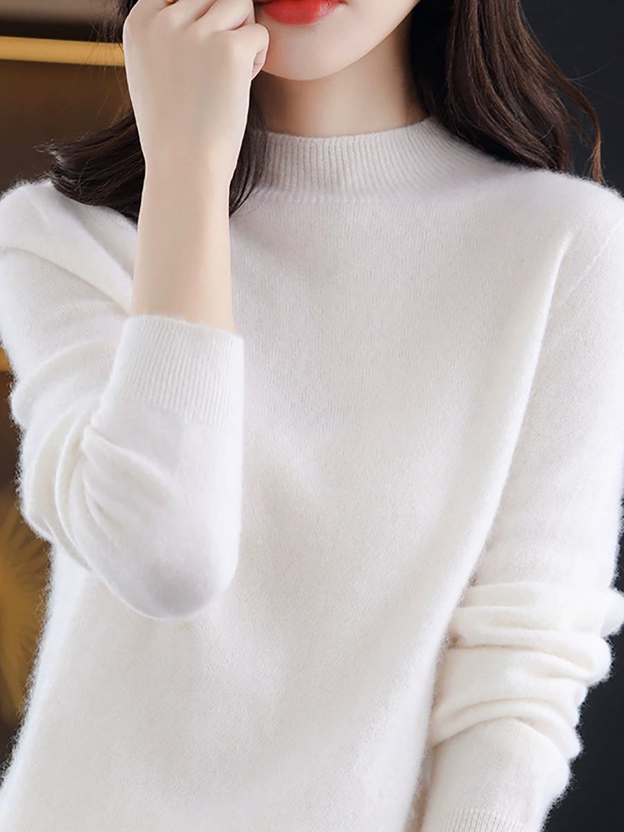 Suéter de lana de cuello alto medio de color puro para mujer de primavera