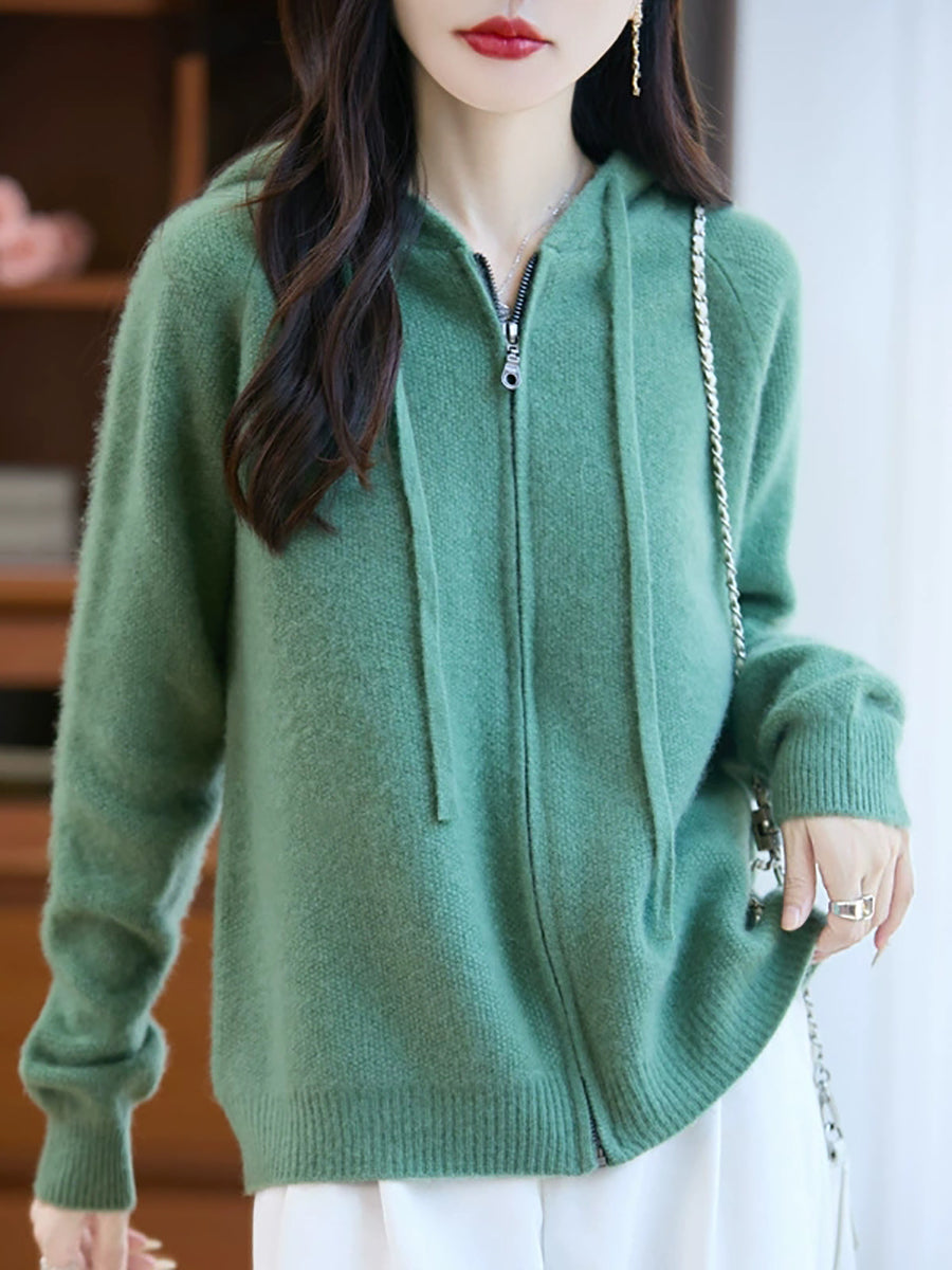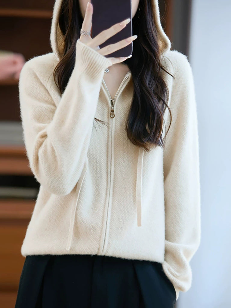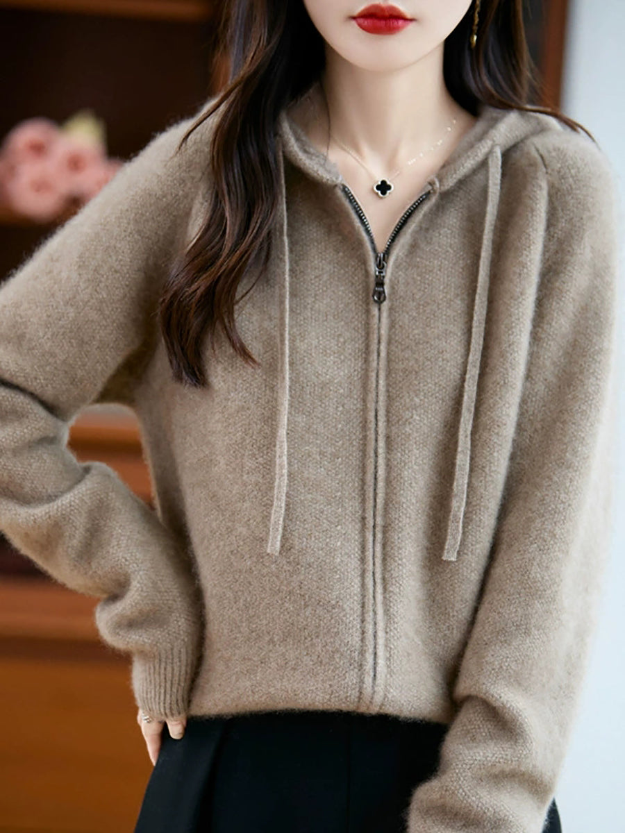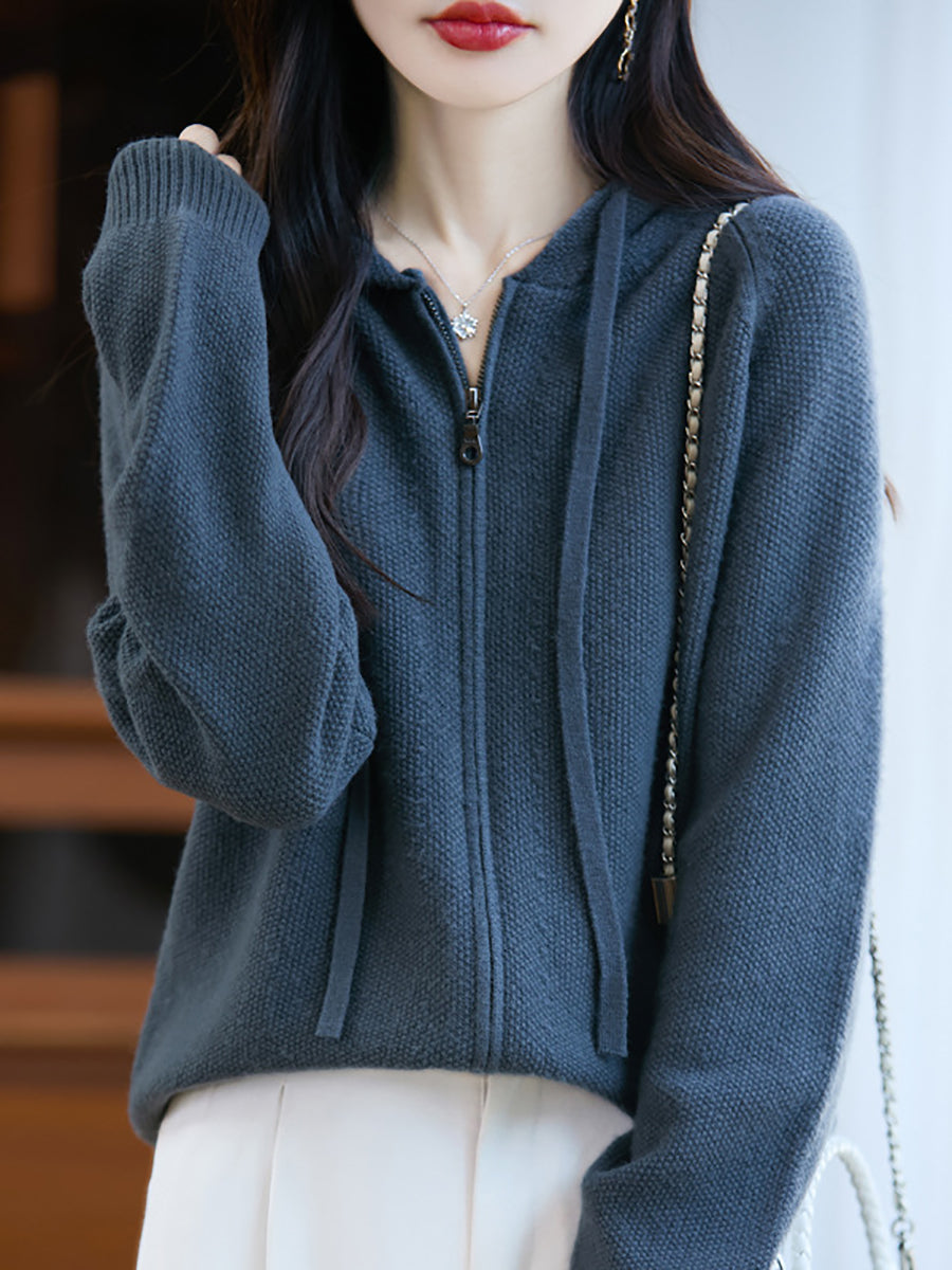 Suéter cárdigan con capucha de punto de color puro de otoño para mujer